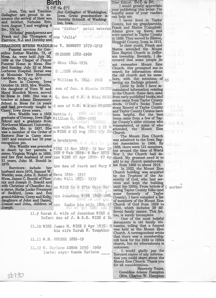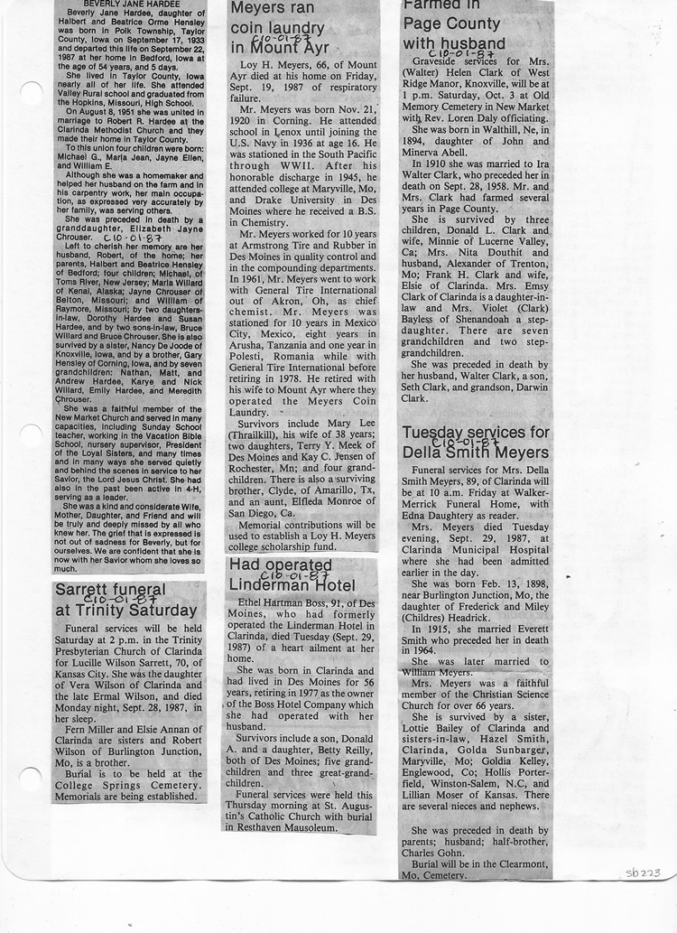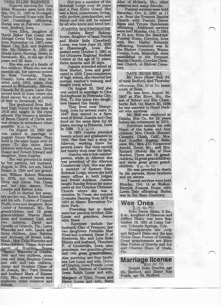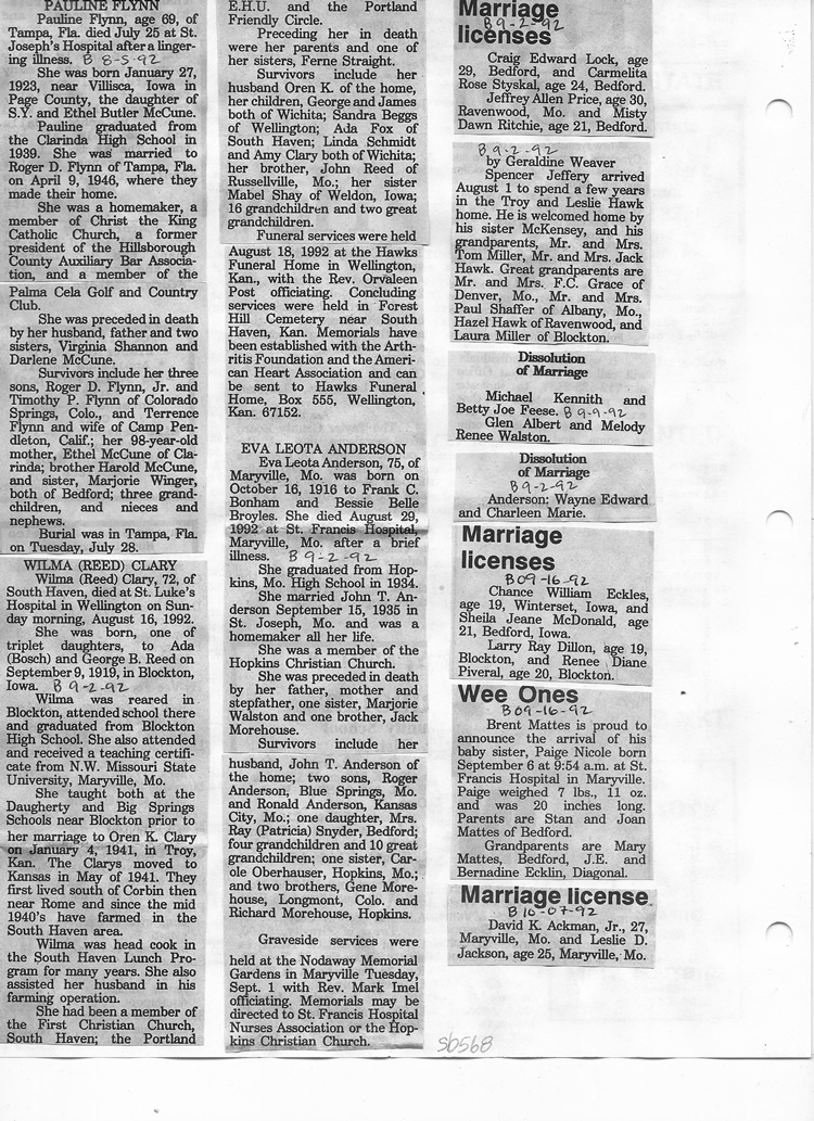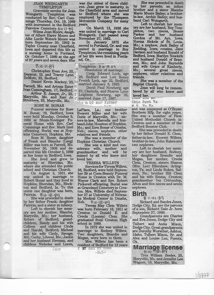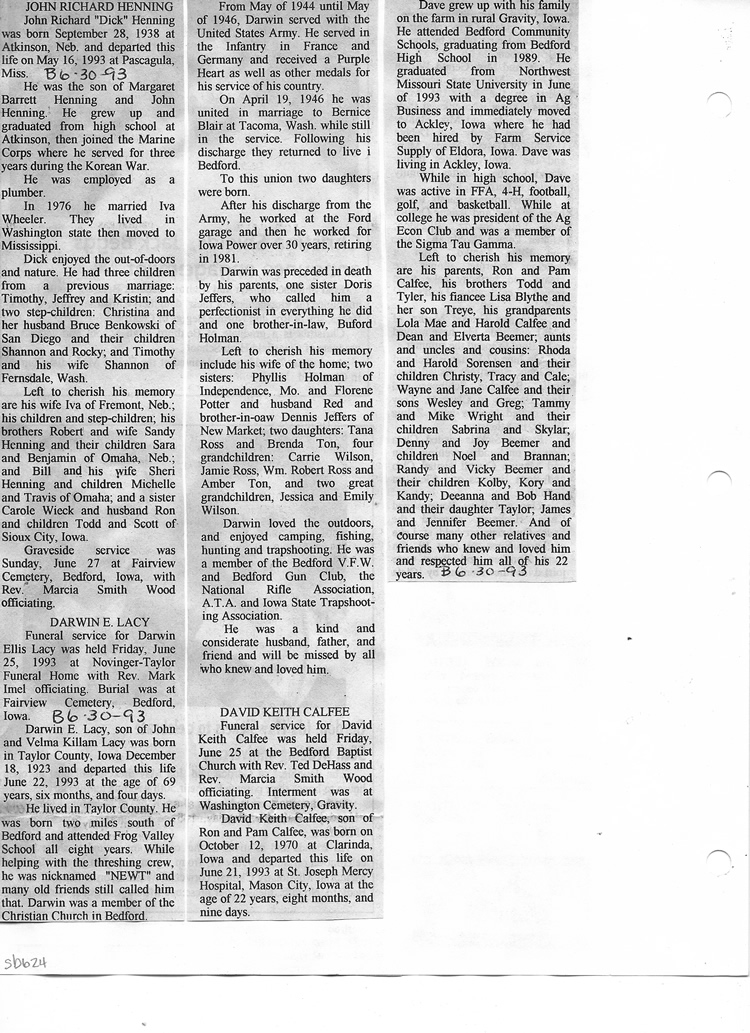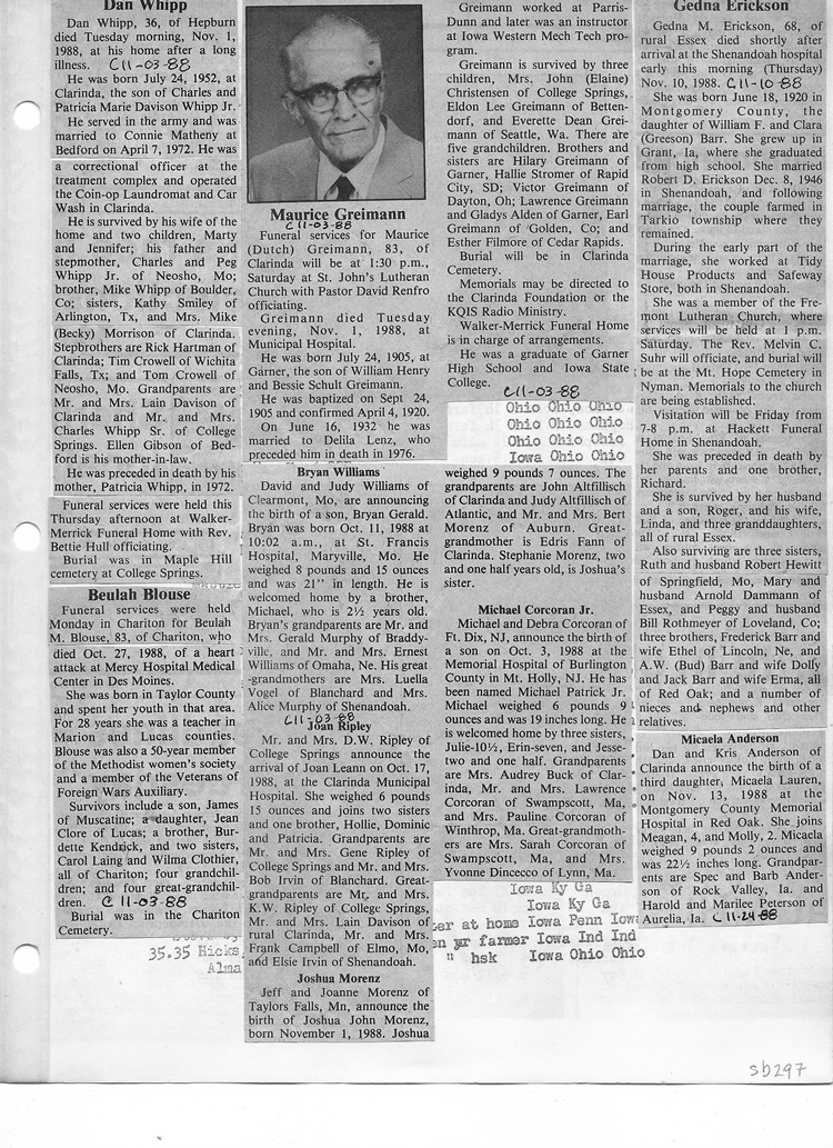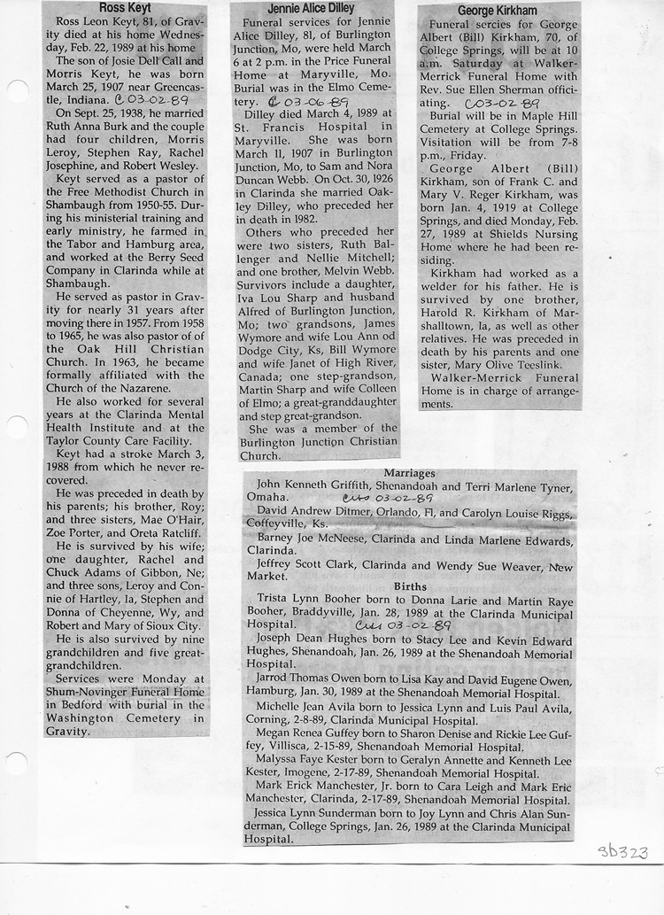 O'Dell's Abstracted Newspaper Index Clippings