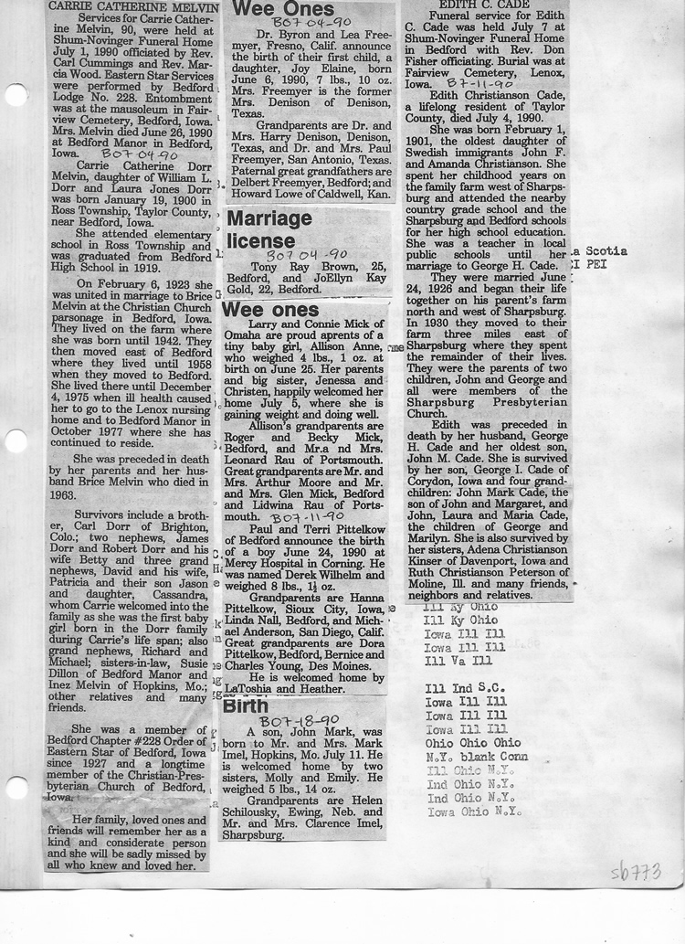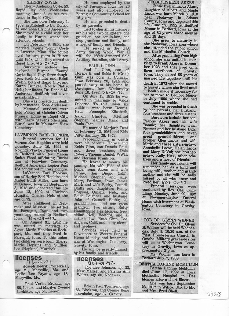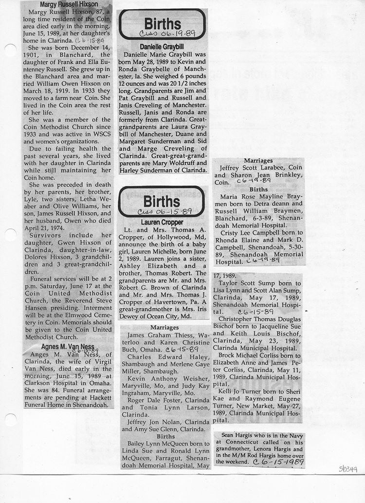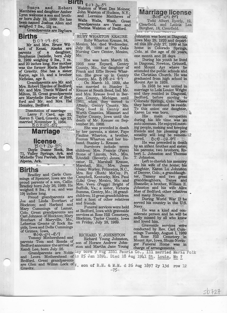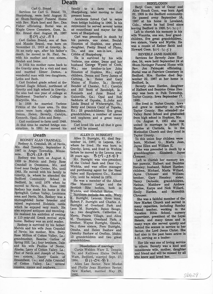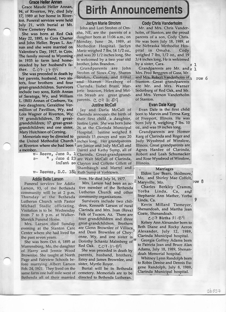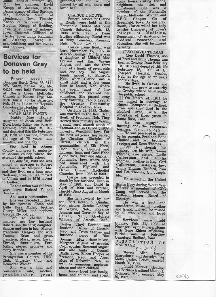 O'Dell's Abstracted Newspaper Index Clippings