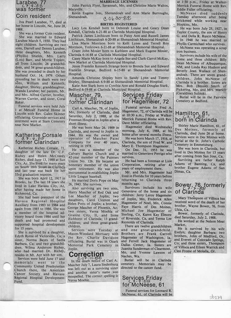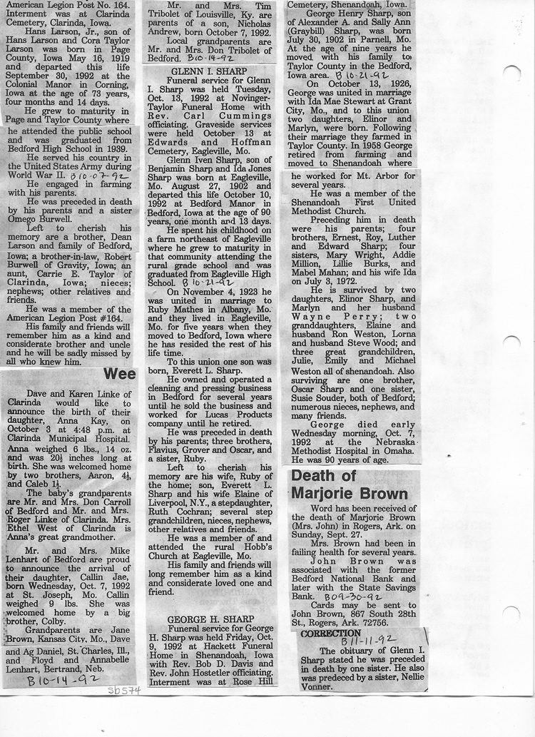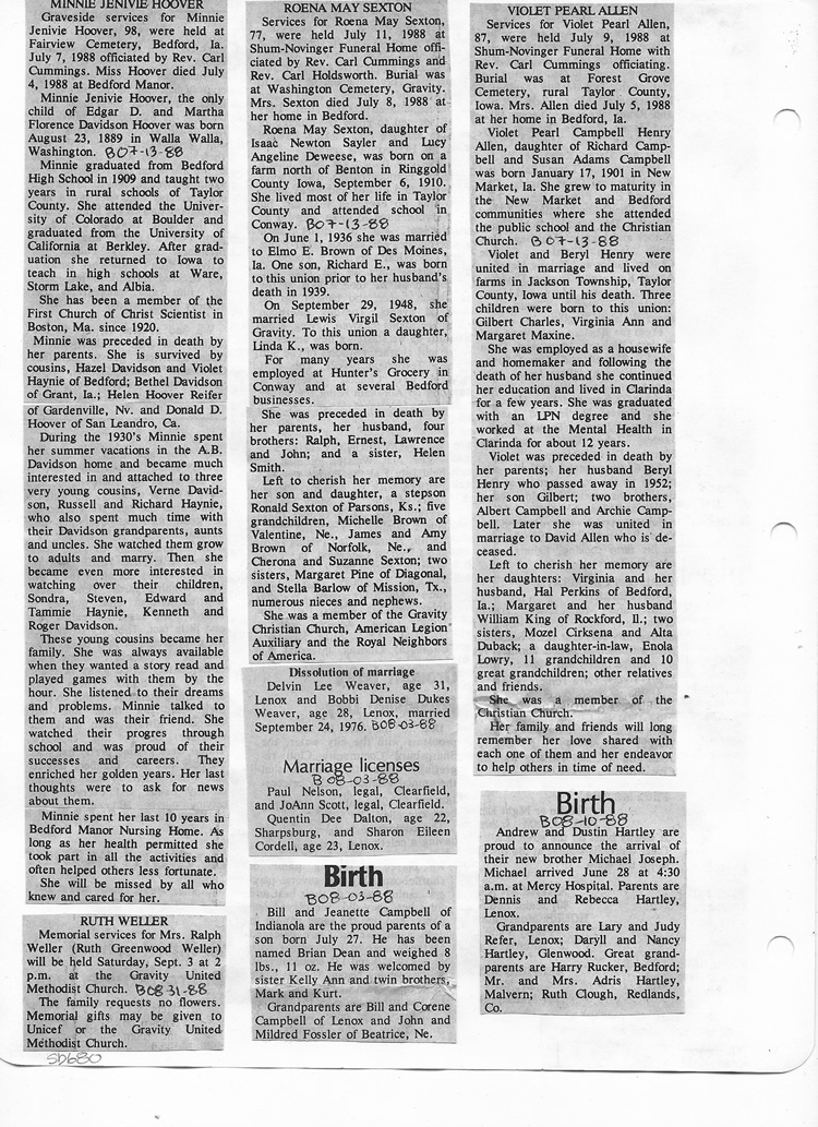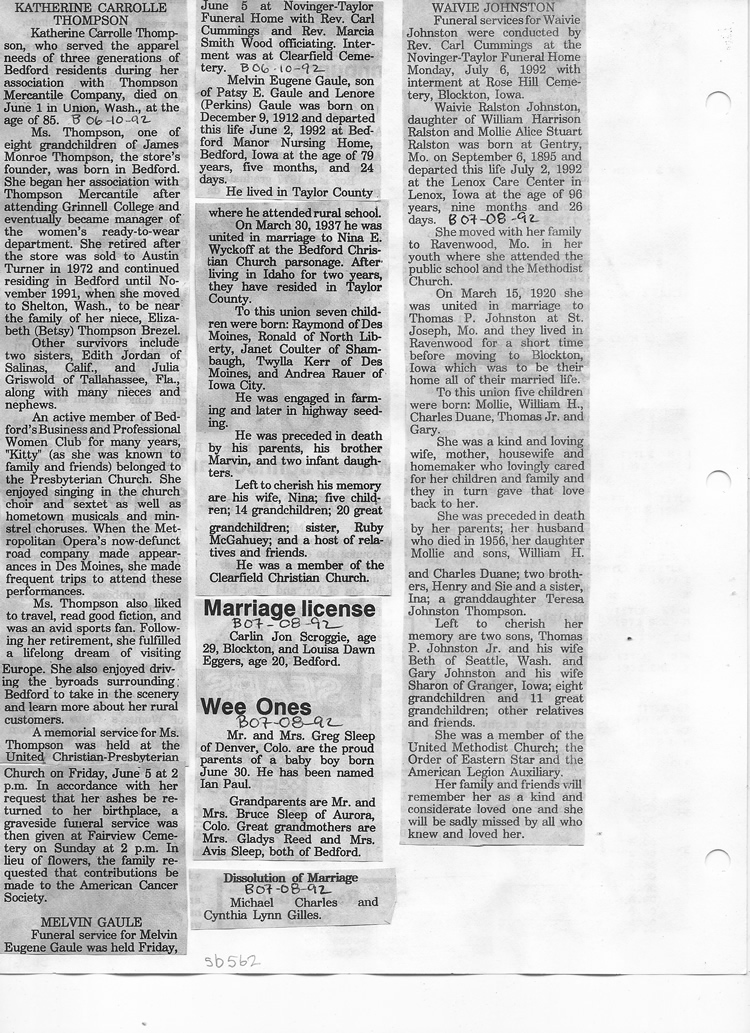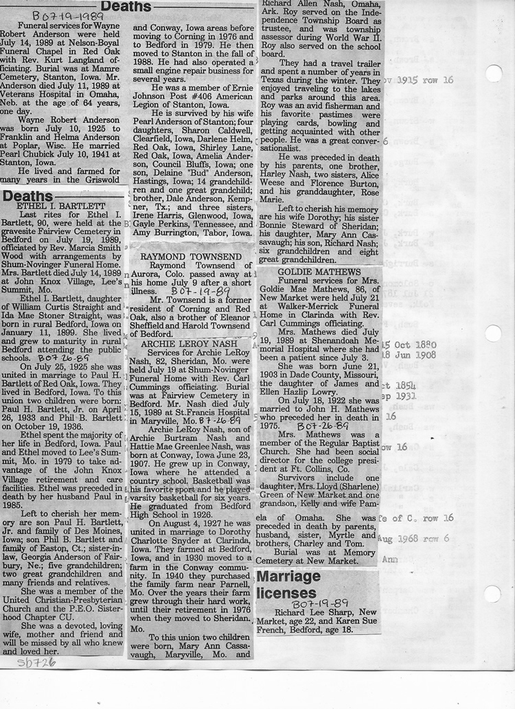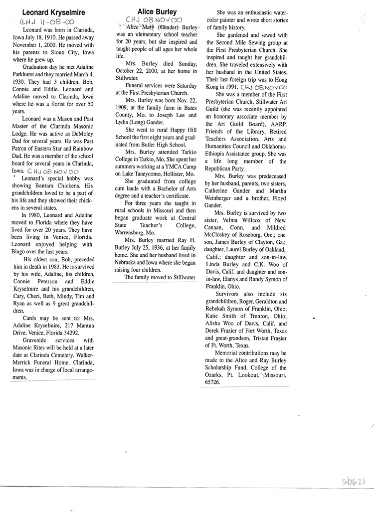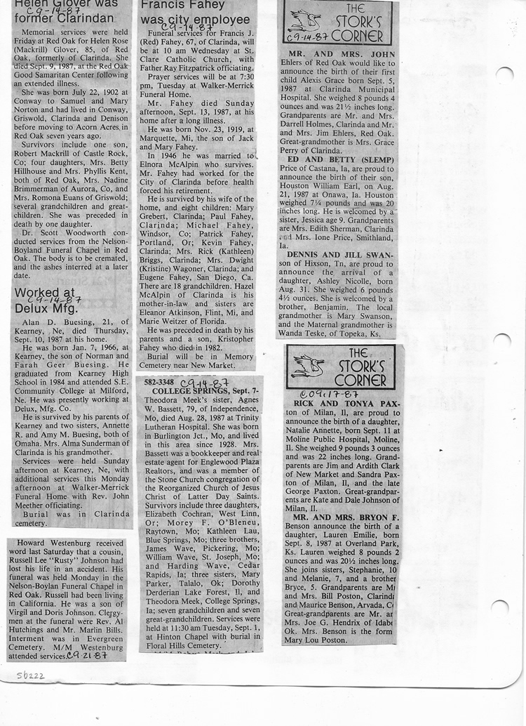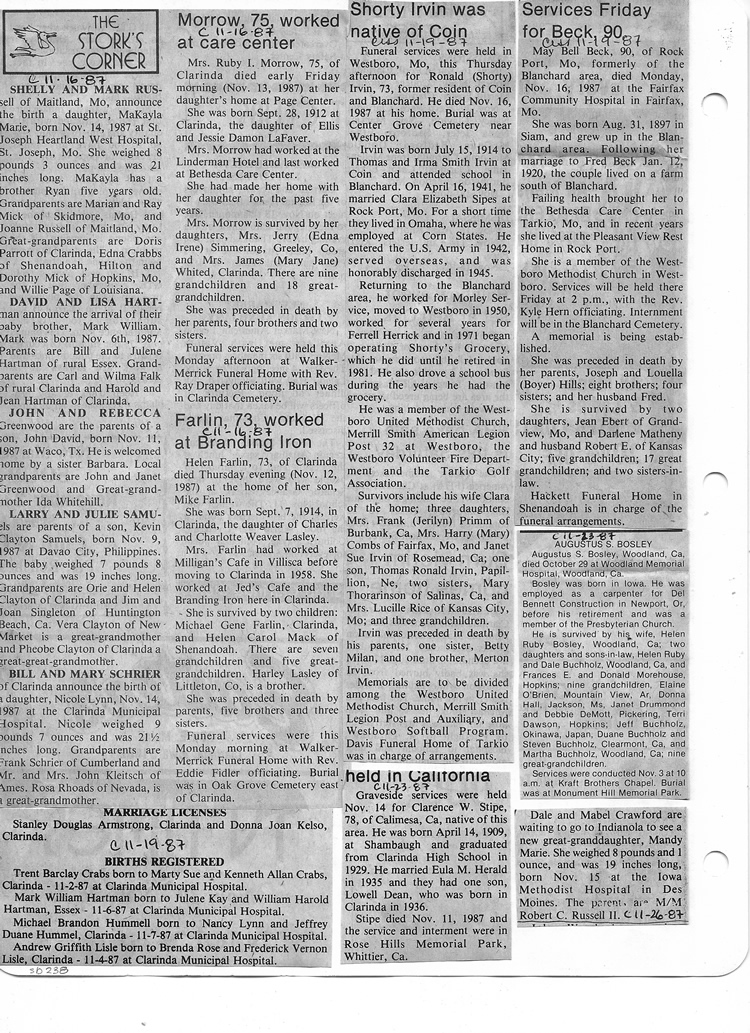 O'Dell's Abstracted Newspaper Index Clippings
