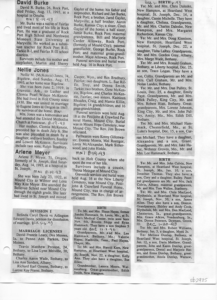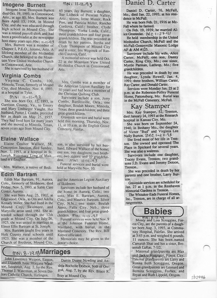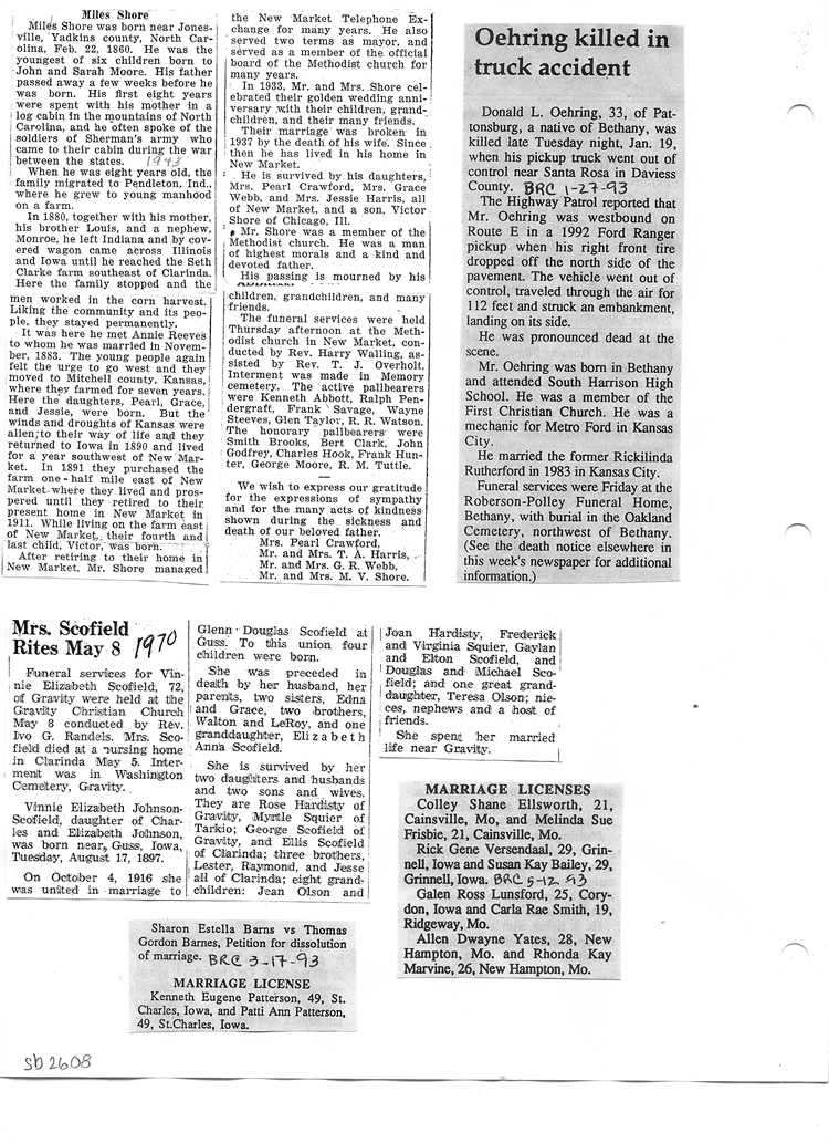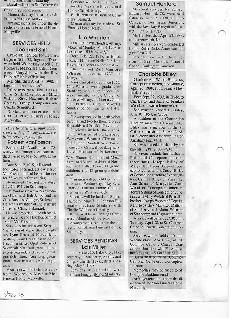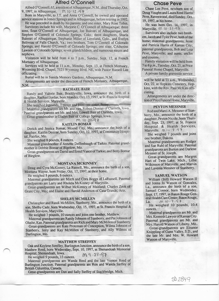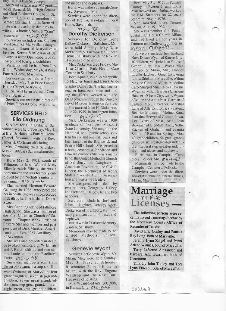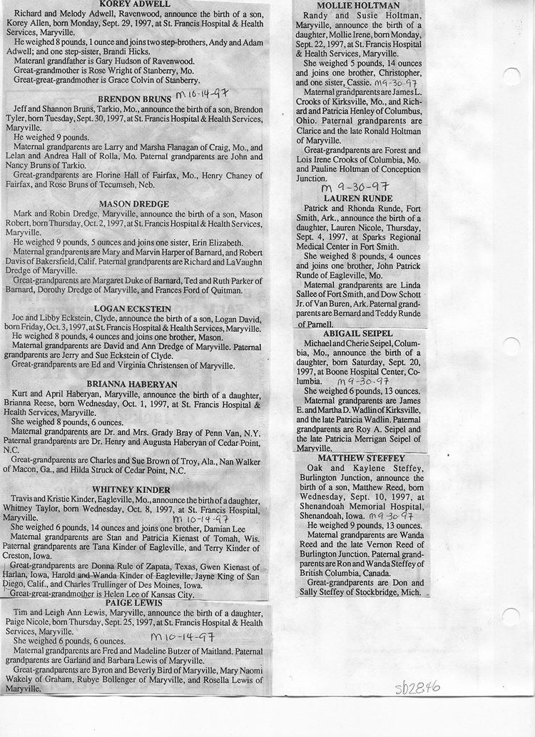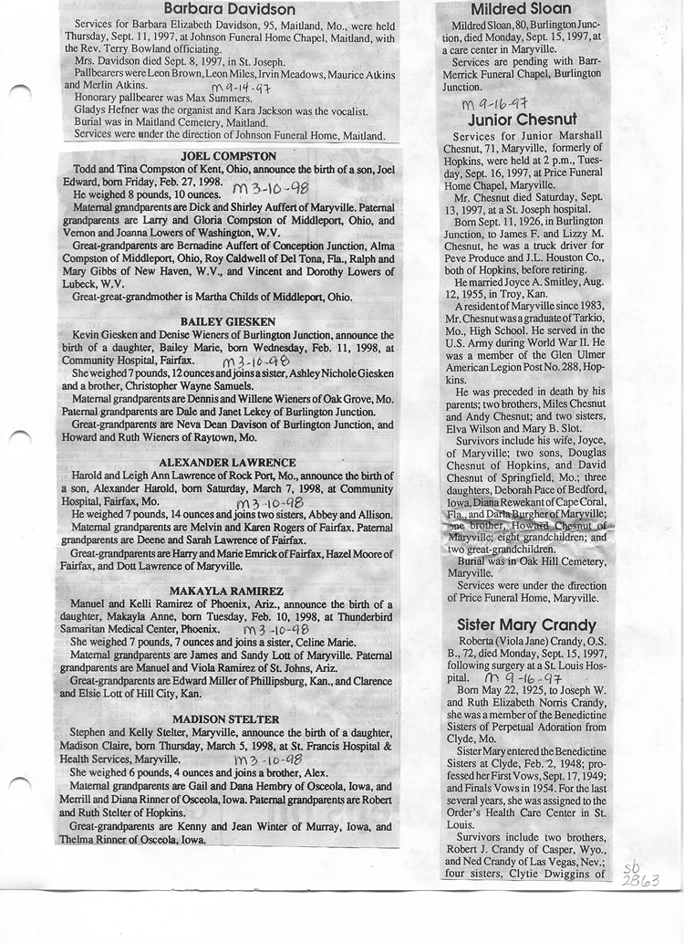 O'Dell's Abstracted Newspaper Index Clippings pages sb6000's
