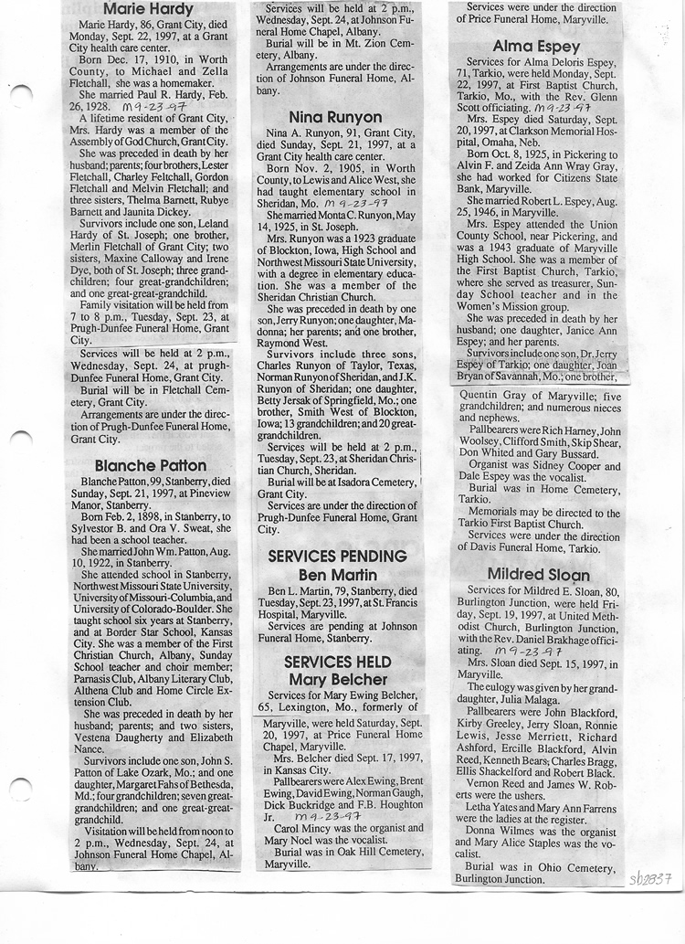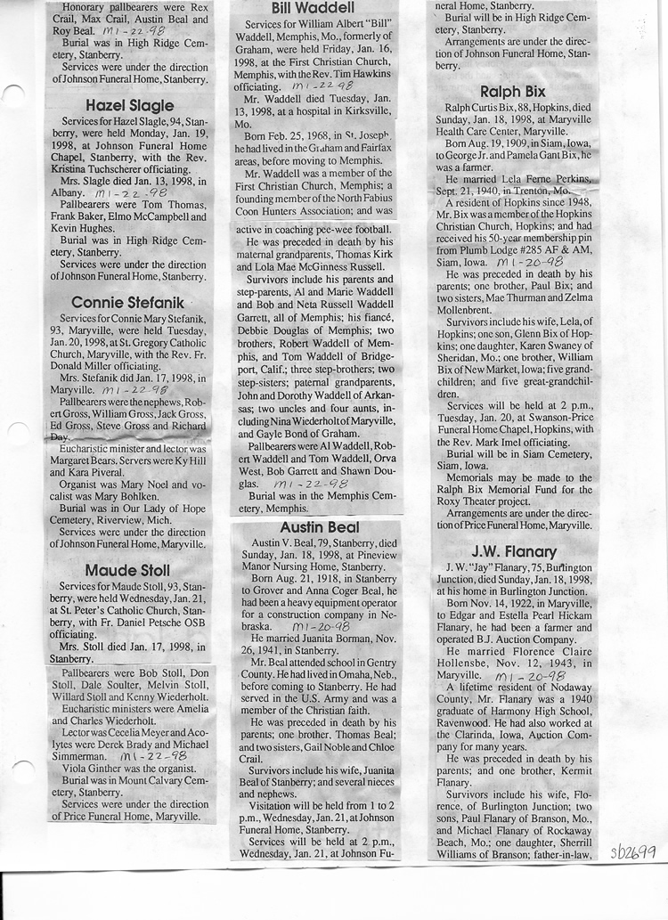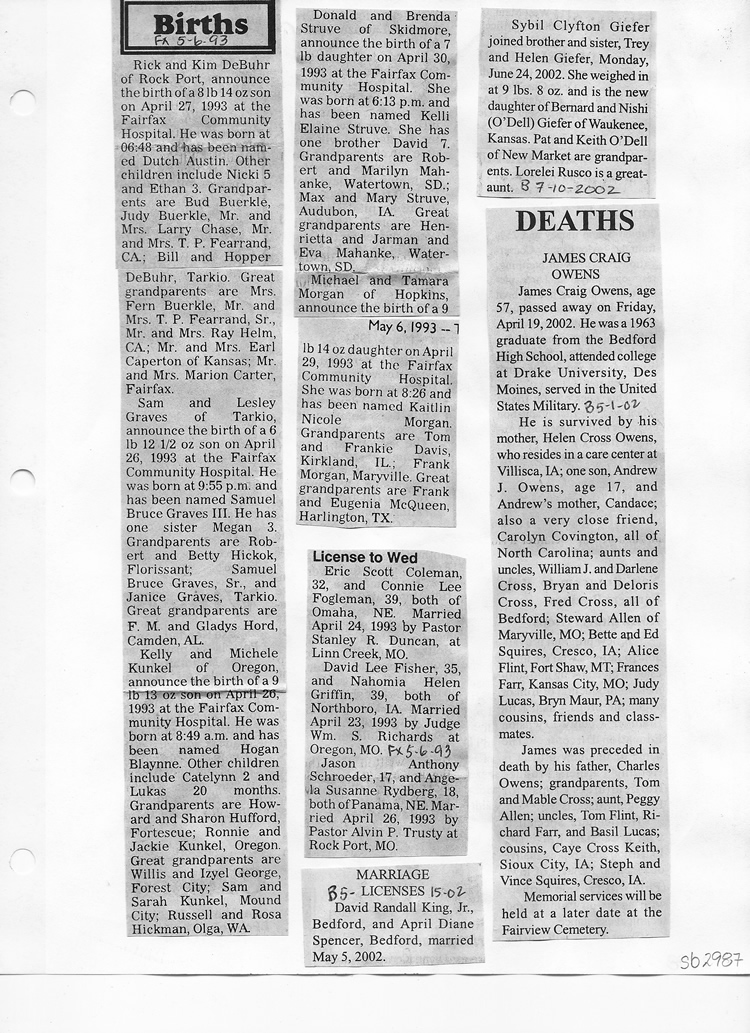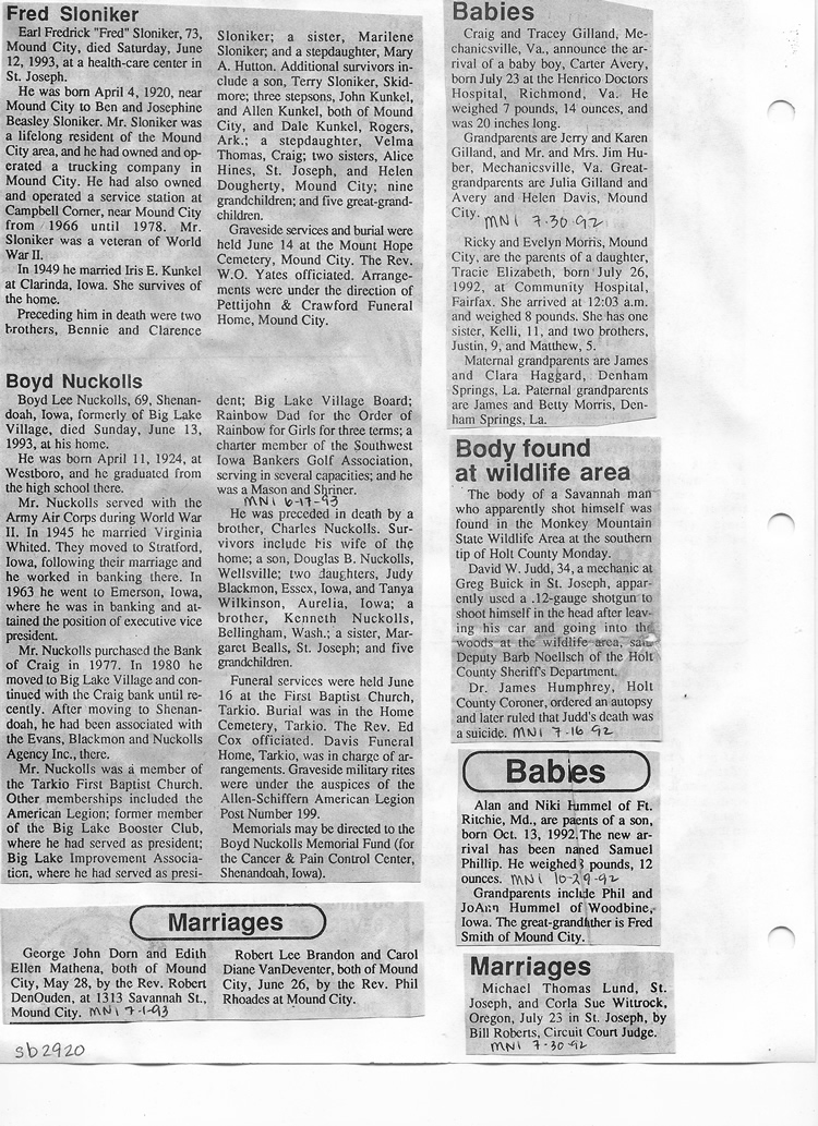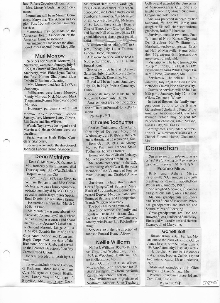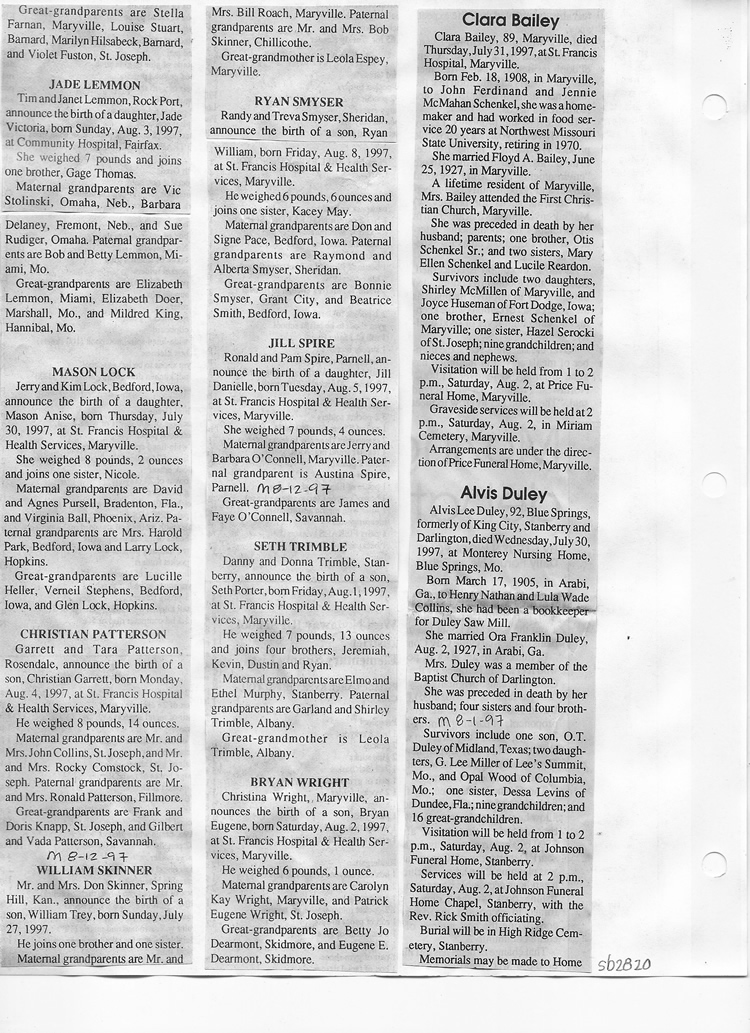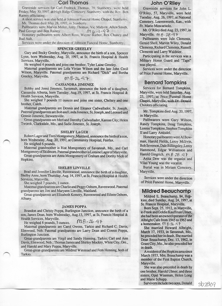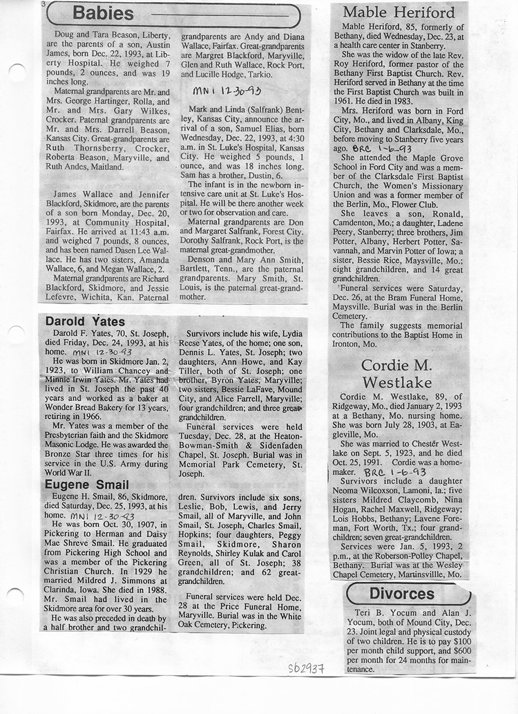 O'Dell's Abstracted Newspaper Index Clippings pages sb6000's