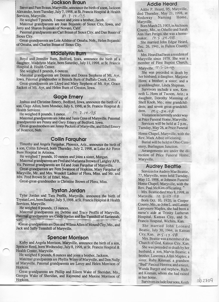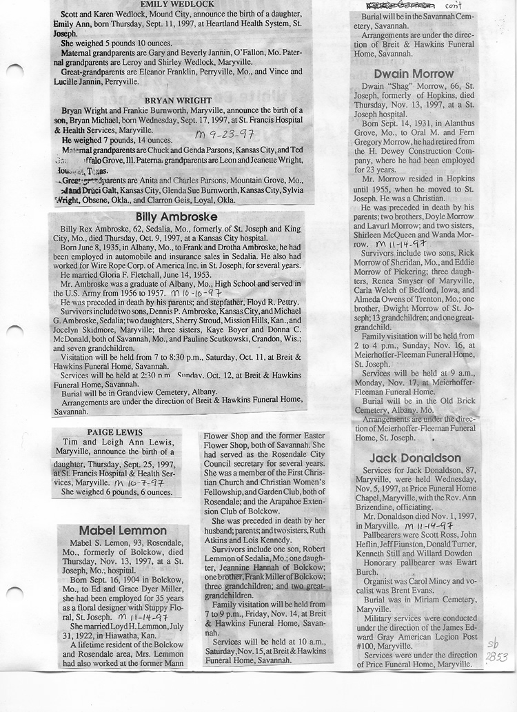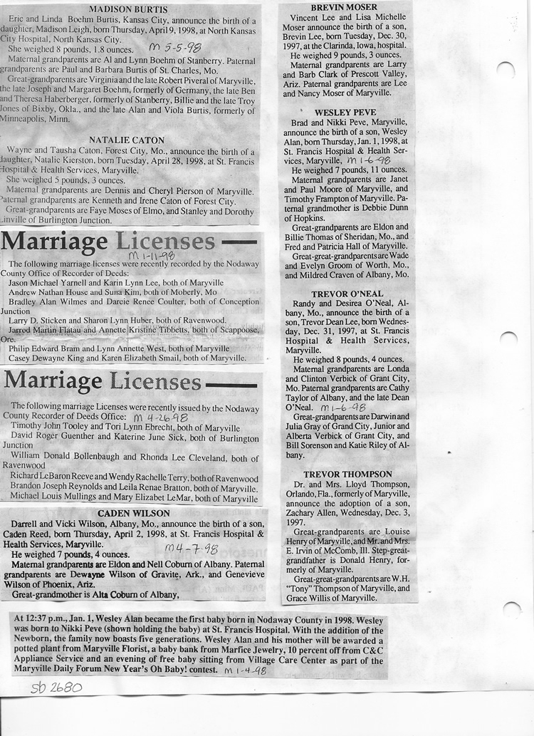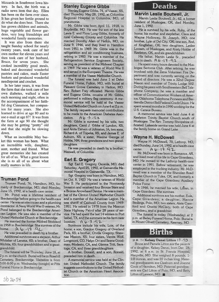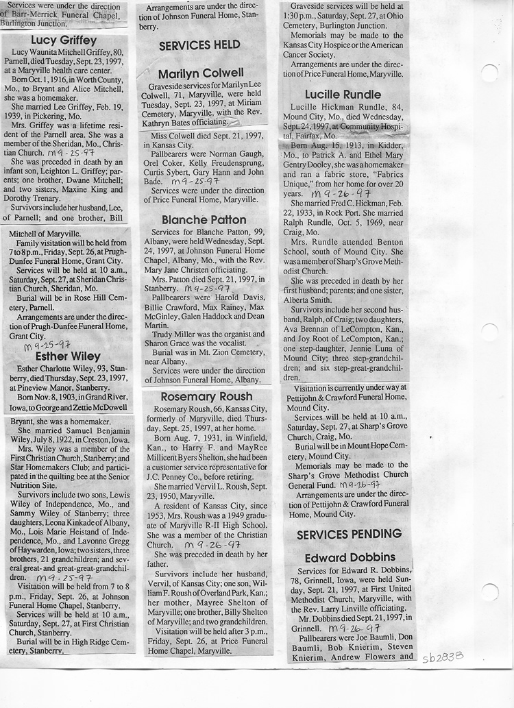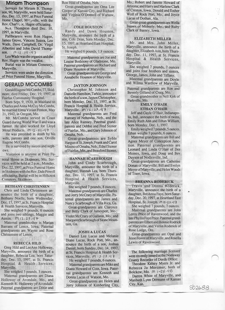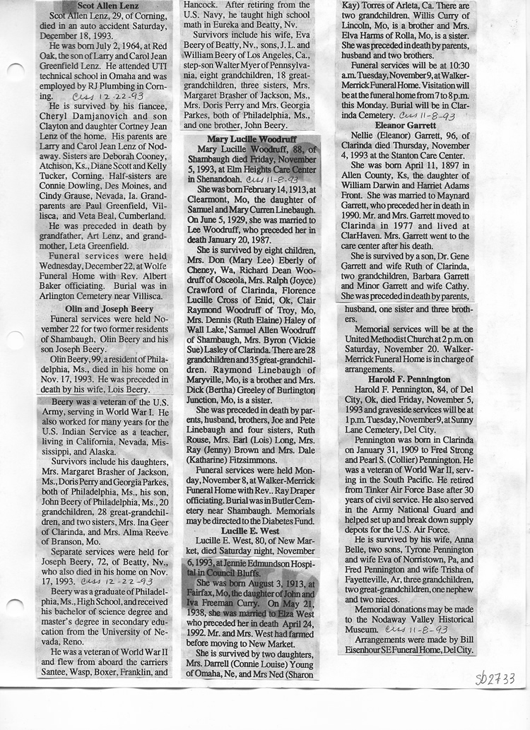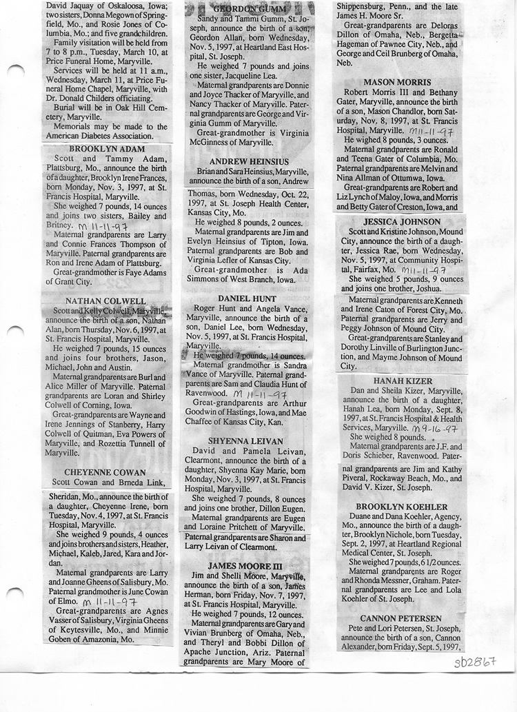 O'Dell's Abstracted Newspaper Index Clippings pages sb6000's