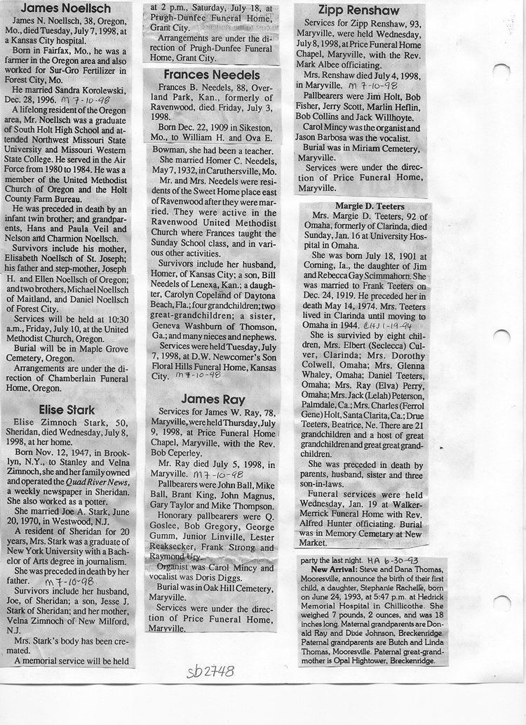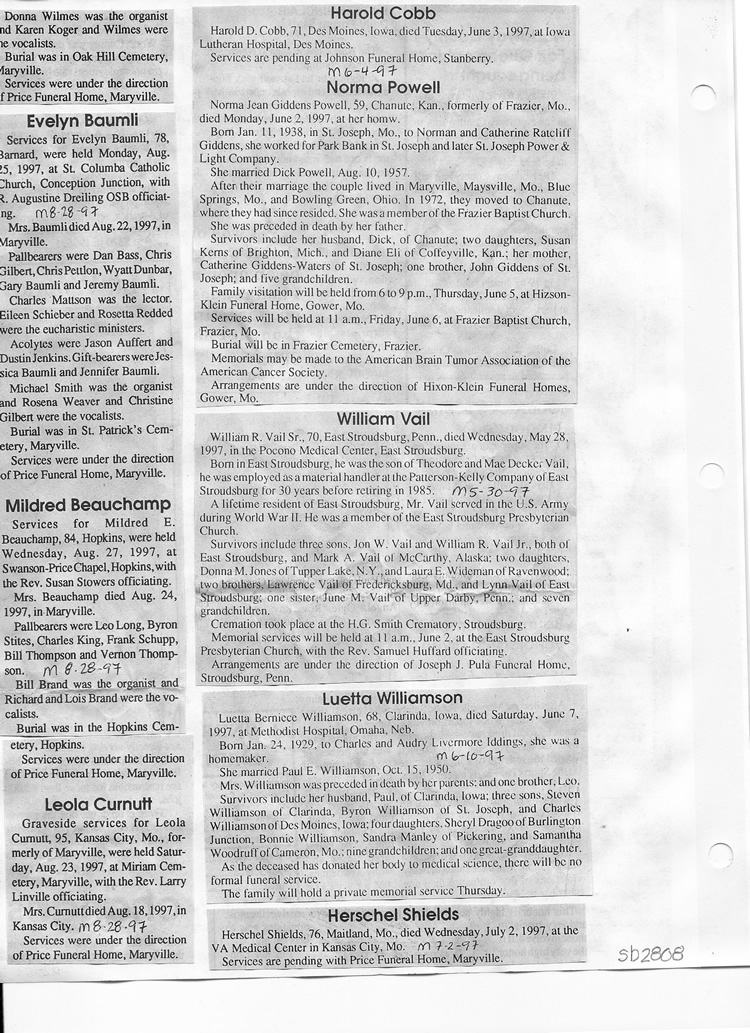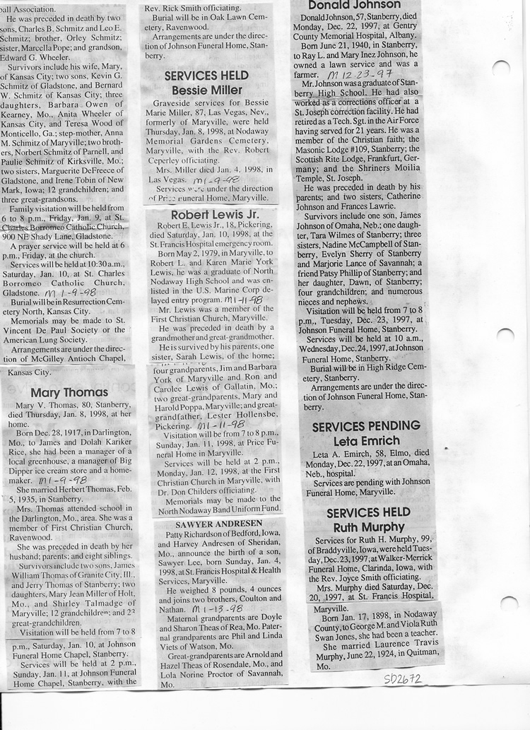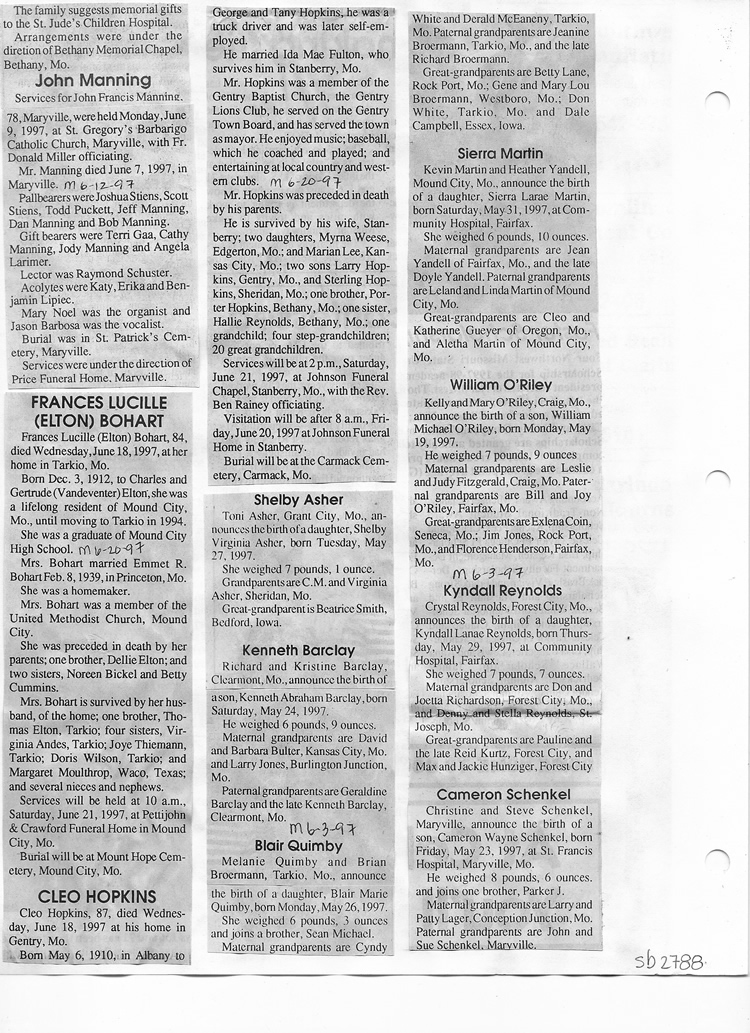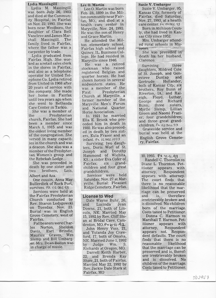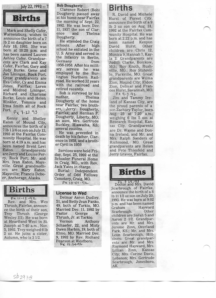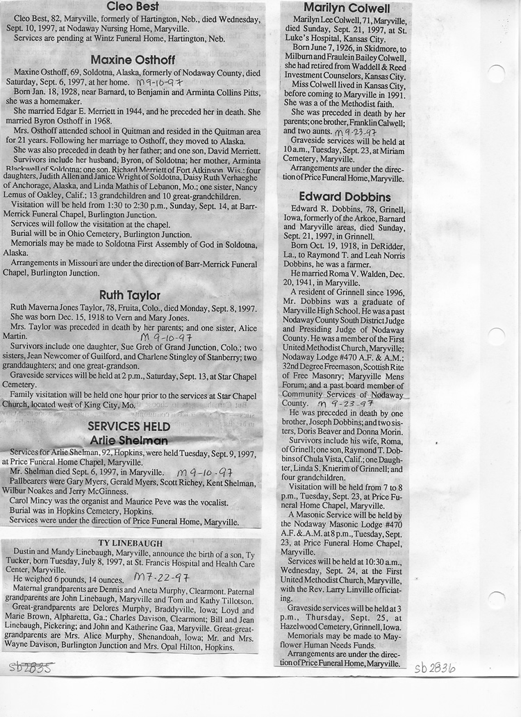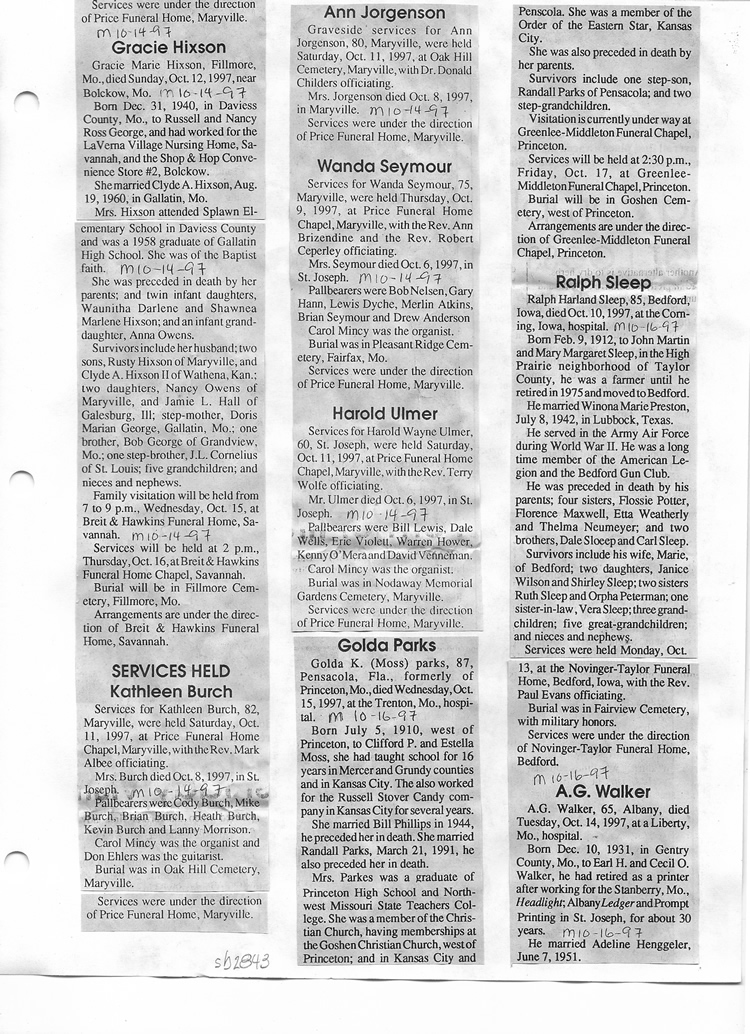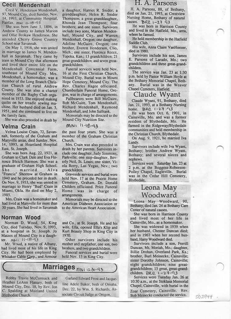 O'Dell's Abstracted Newspaper Index Clippings pages sb6000's