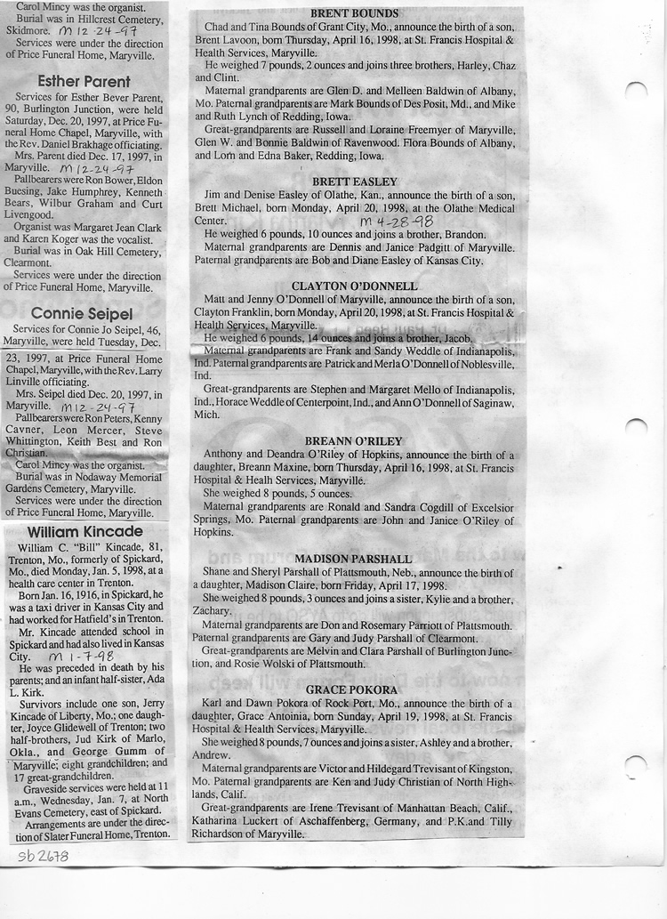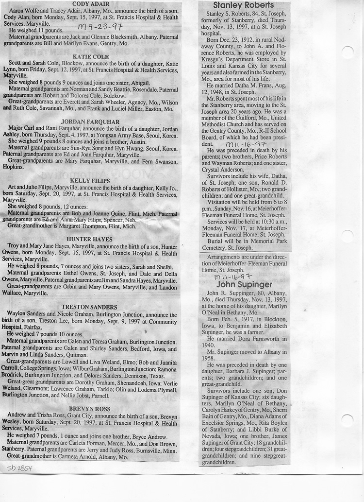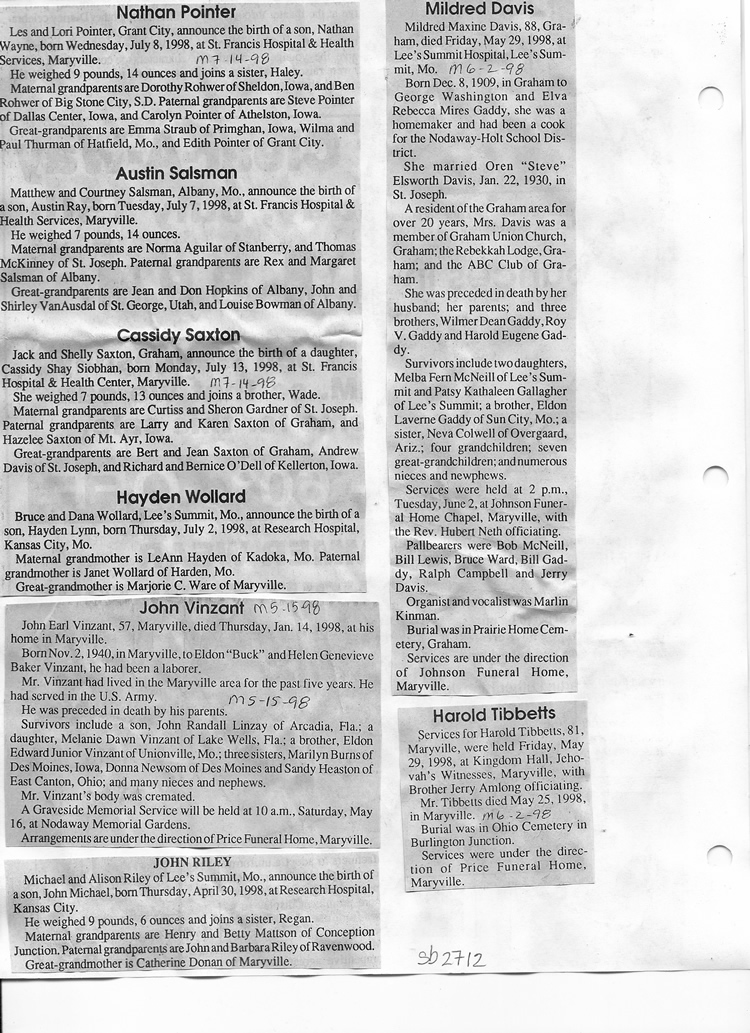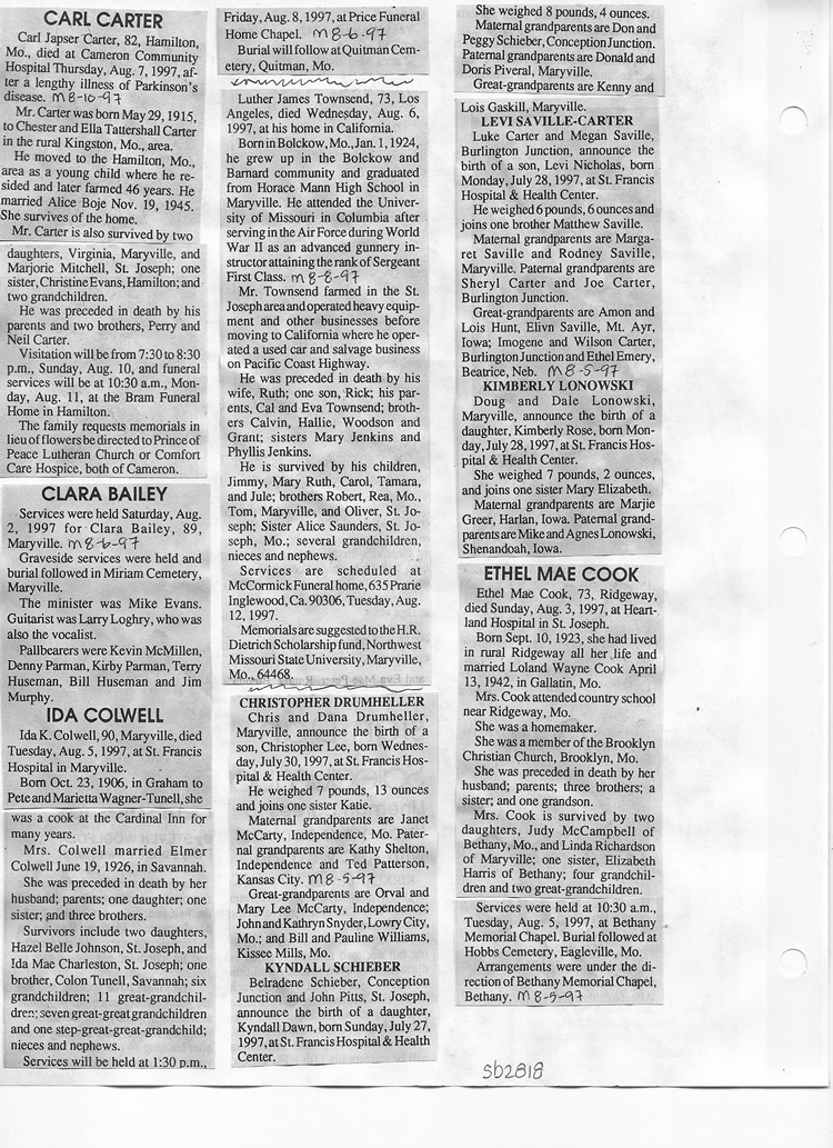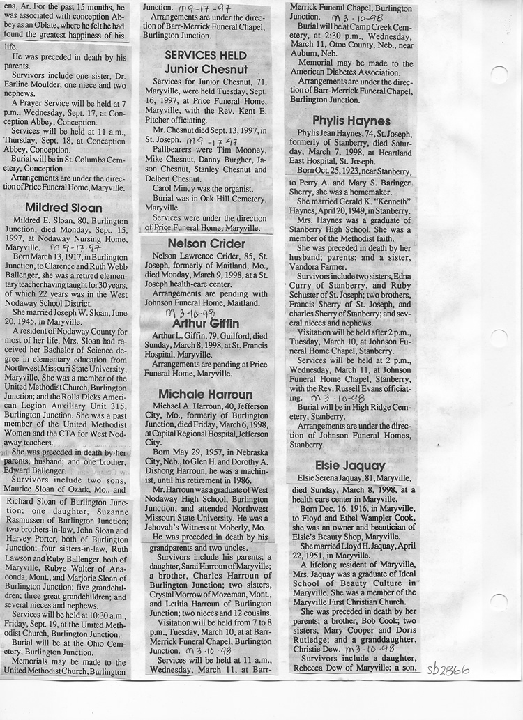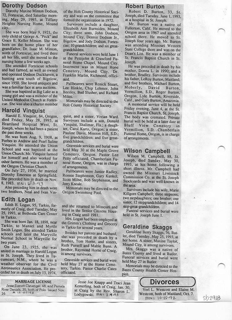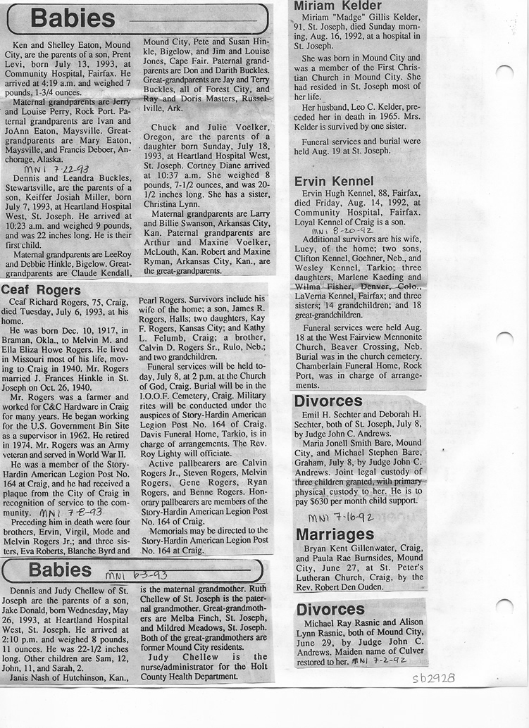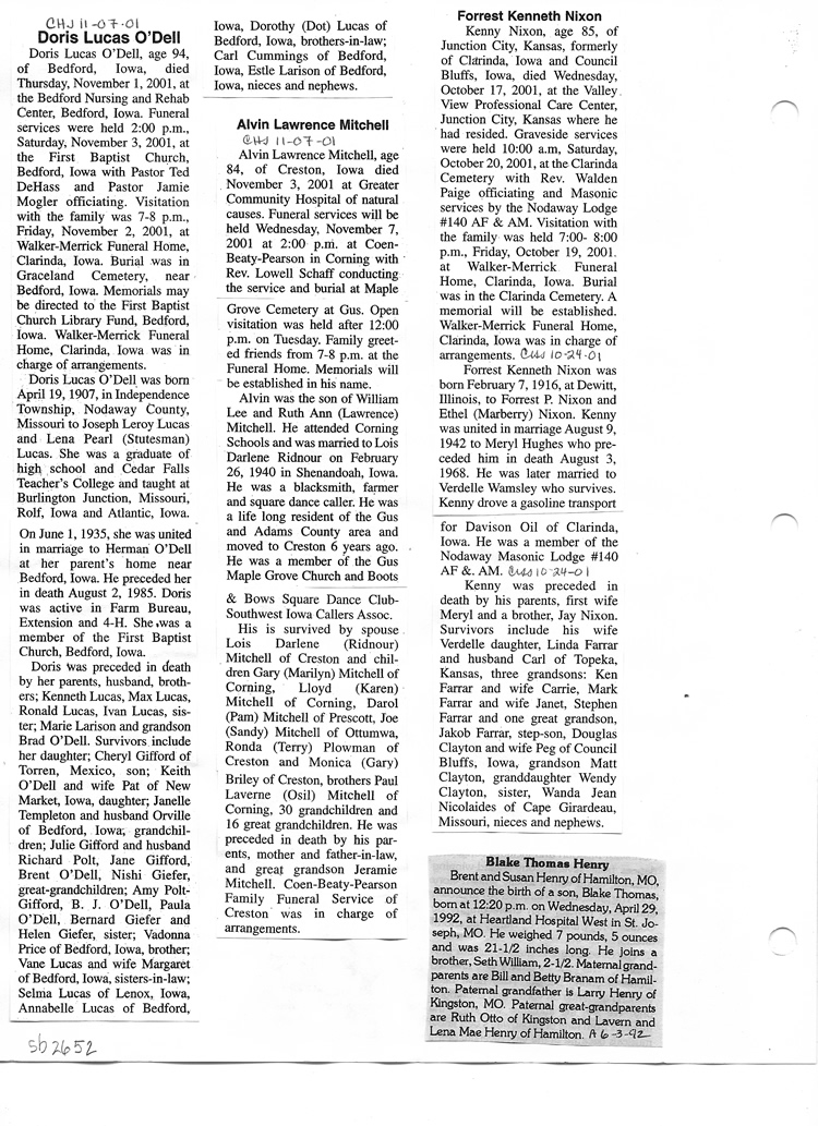 O'Dell's Abstracted Newspaper Index Clippings pages sb6000's