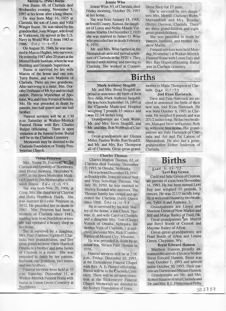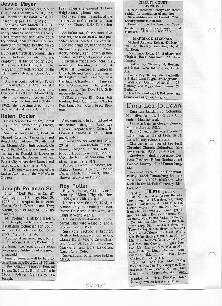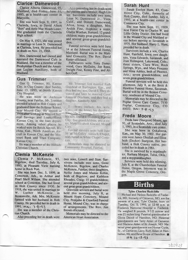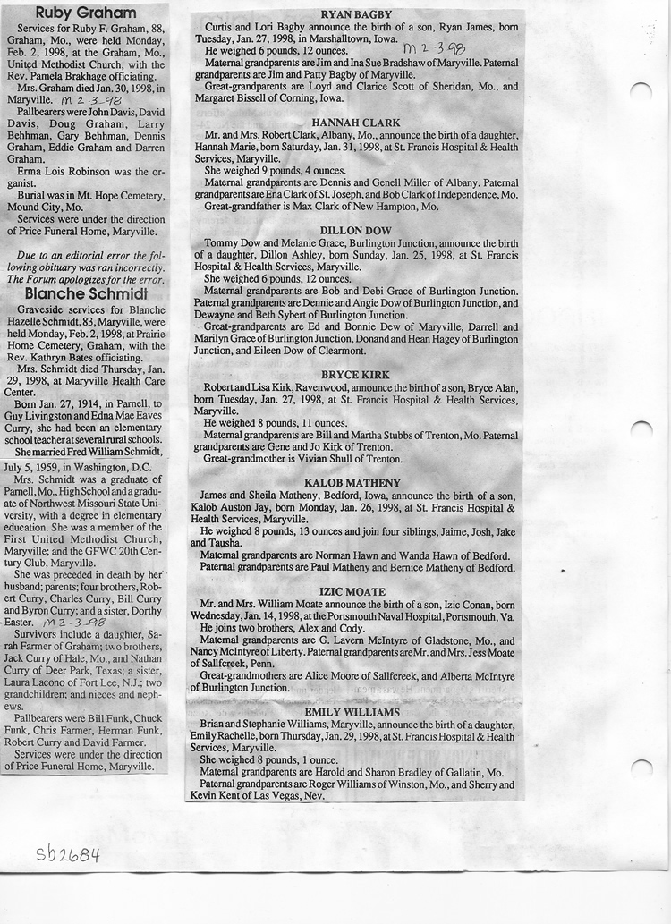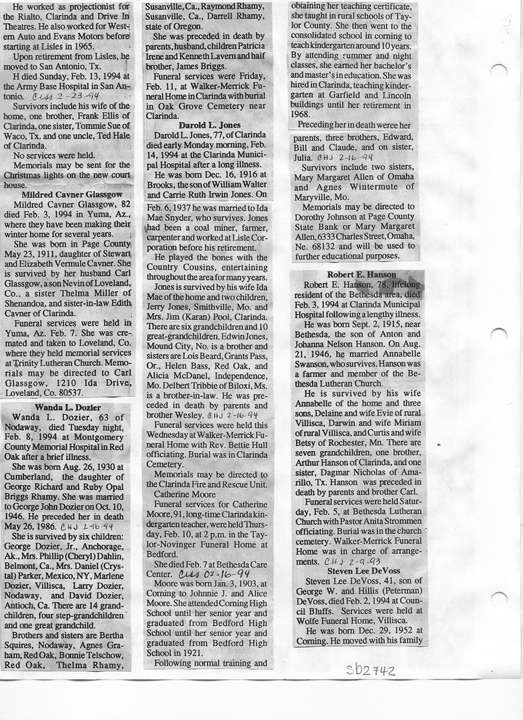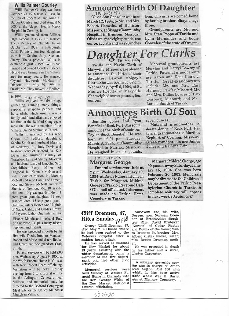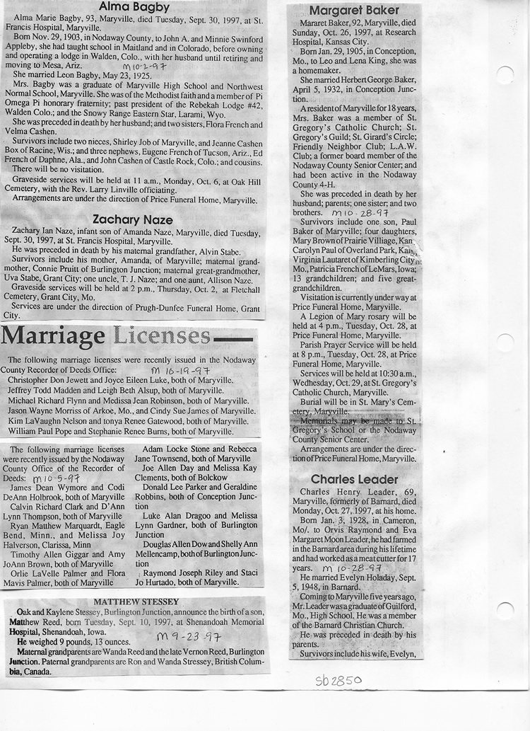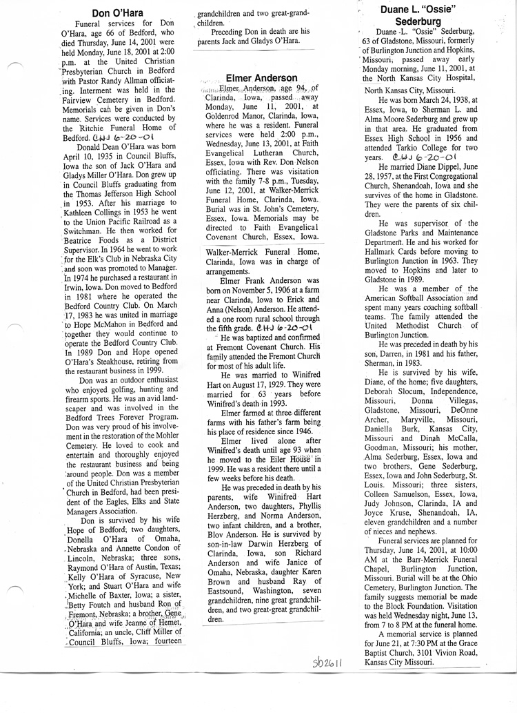O'Dell's Abstracted Newspaper Index Clippings pages sb6000's