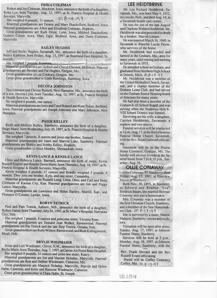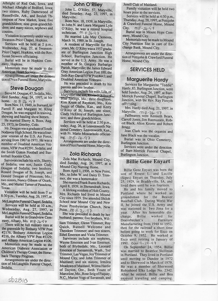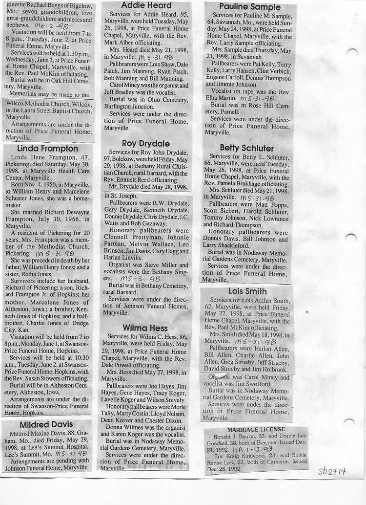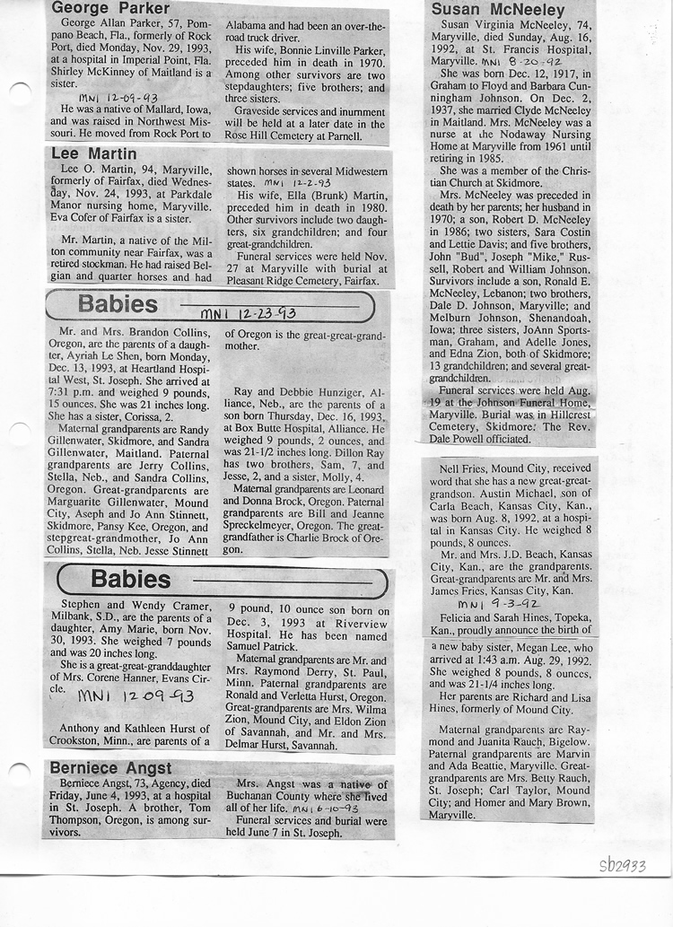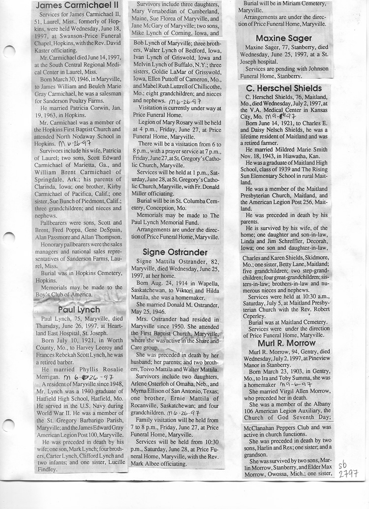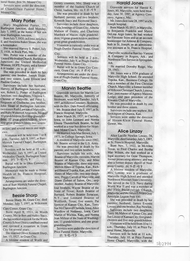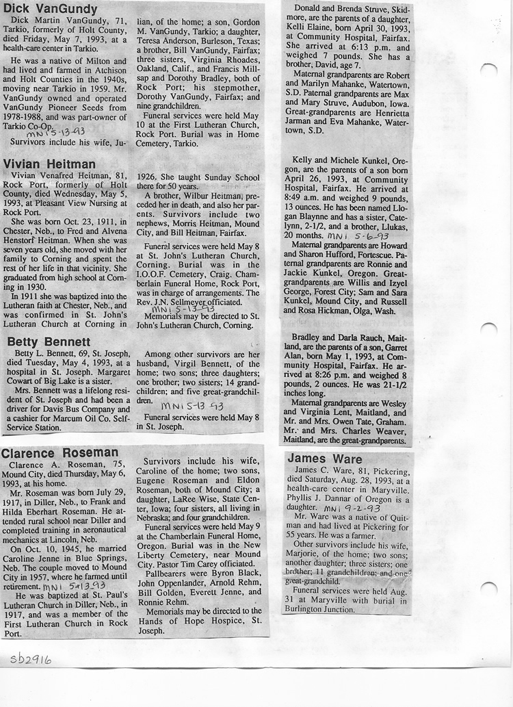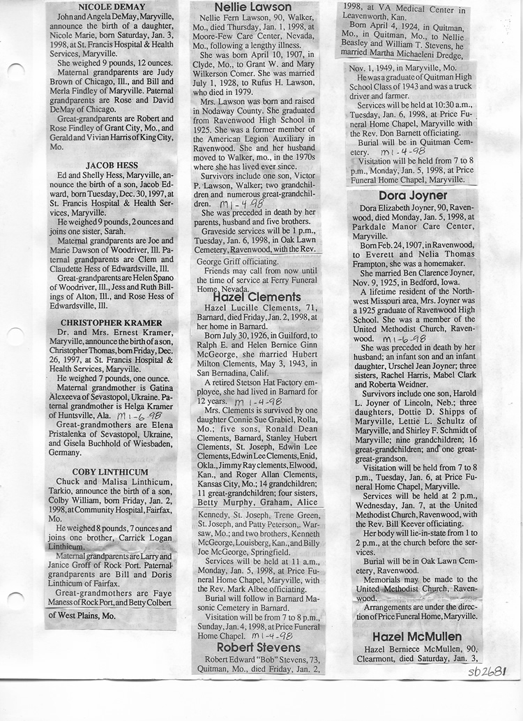 O'Dell's Abstracted Newspaper Index Clippings pages sb6000's