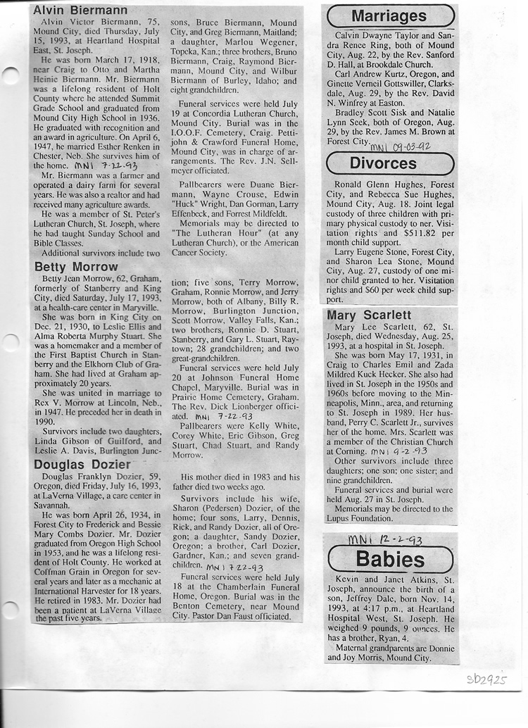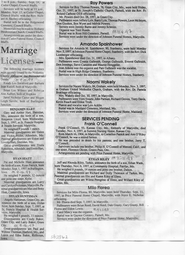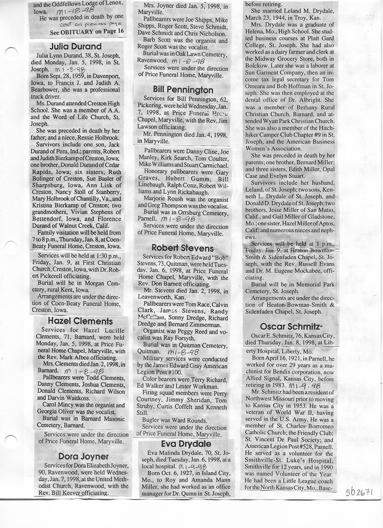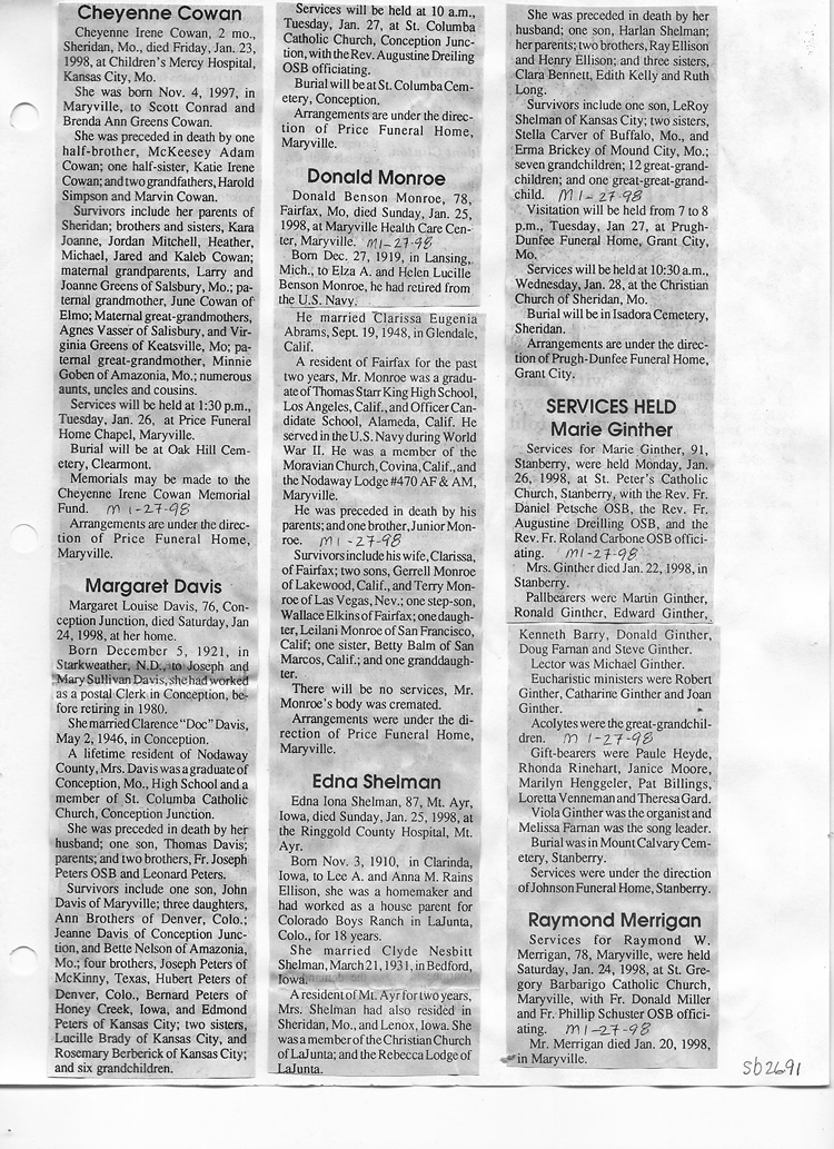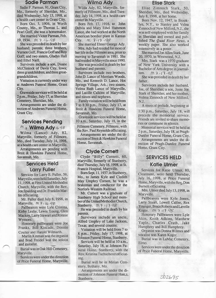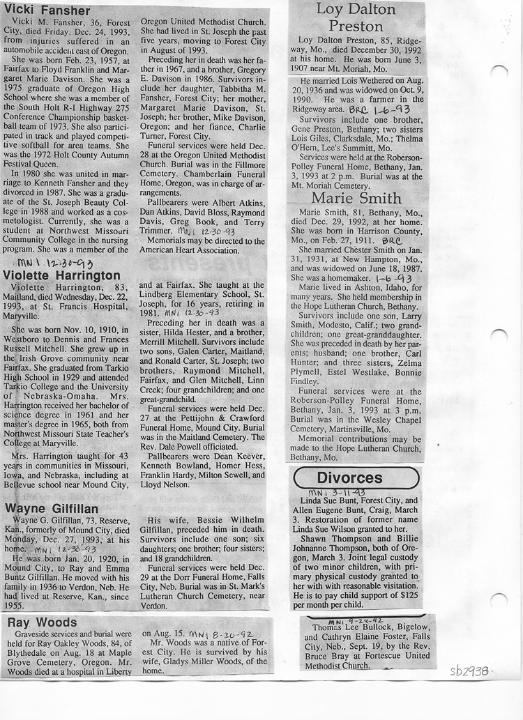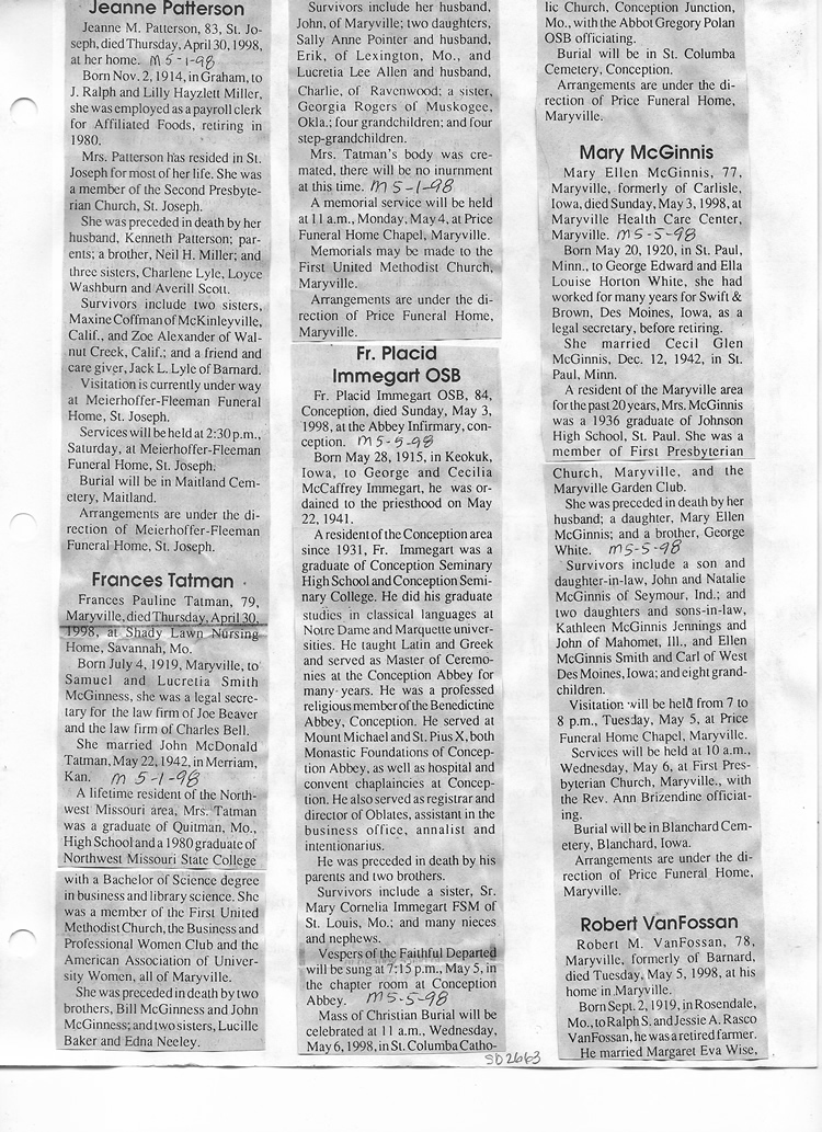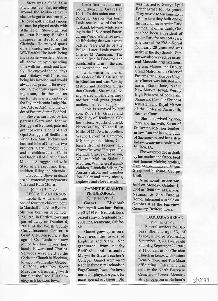 O'Dell's Abstracted Newspaper Index Clippings pages sb6000's