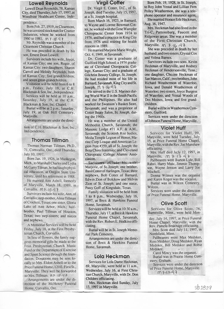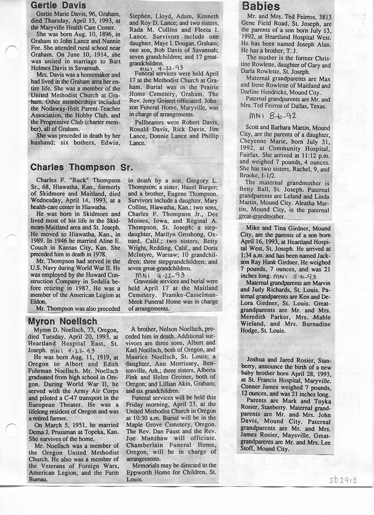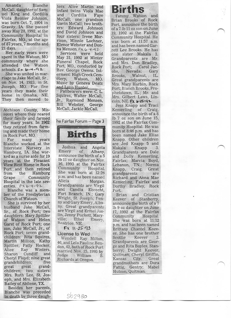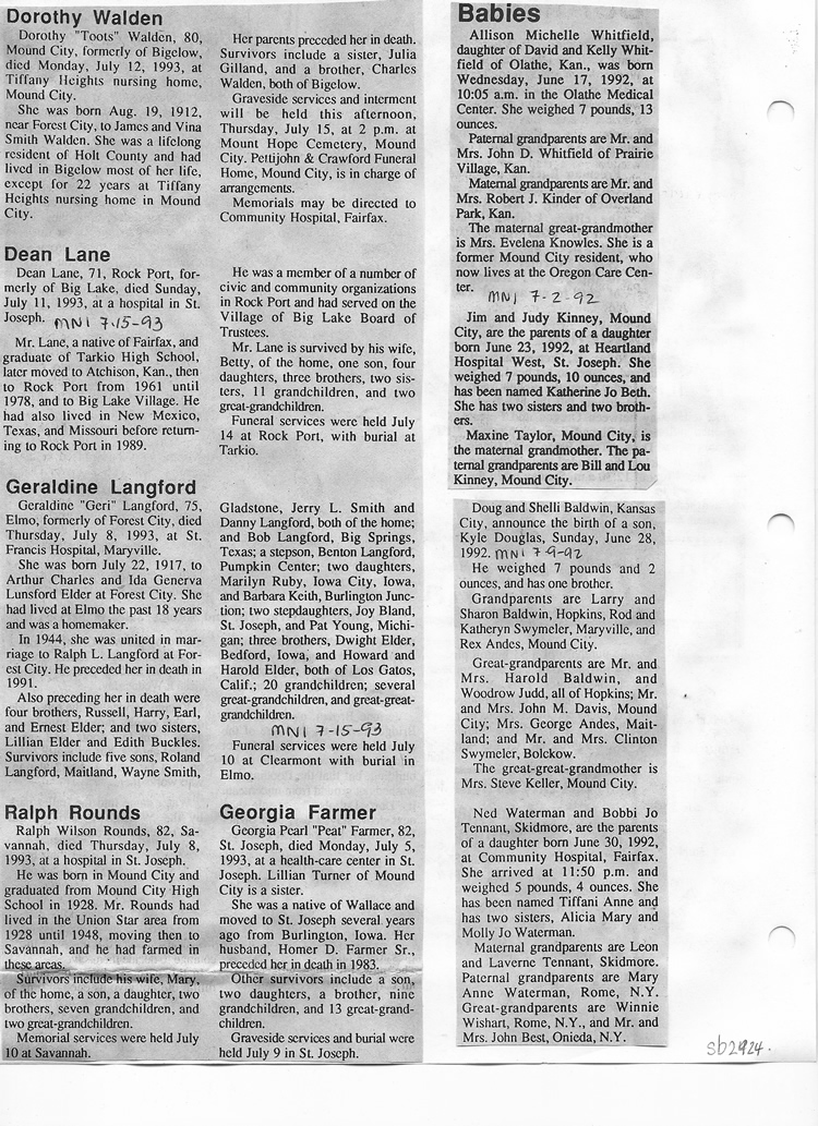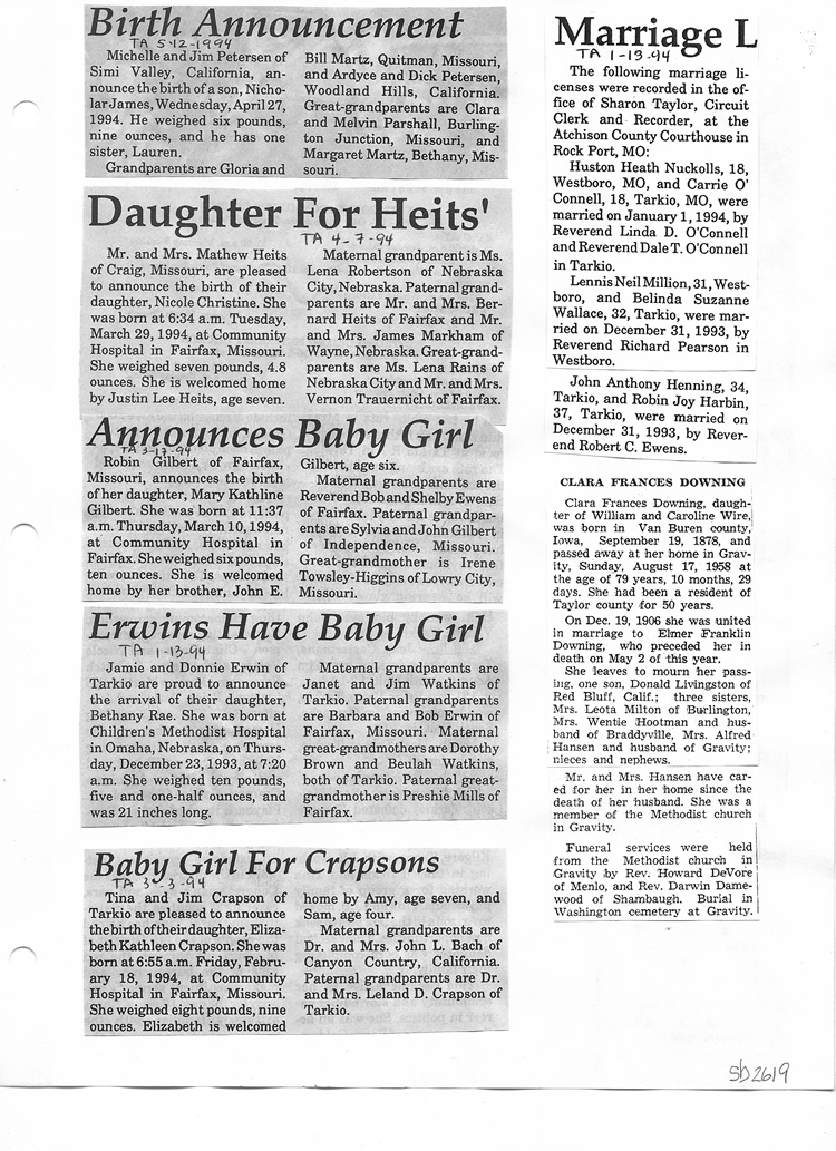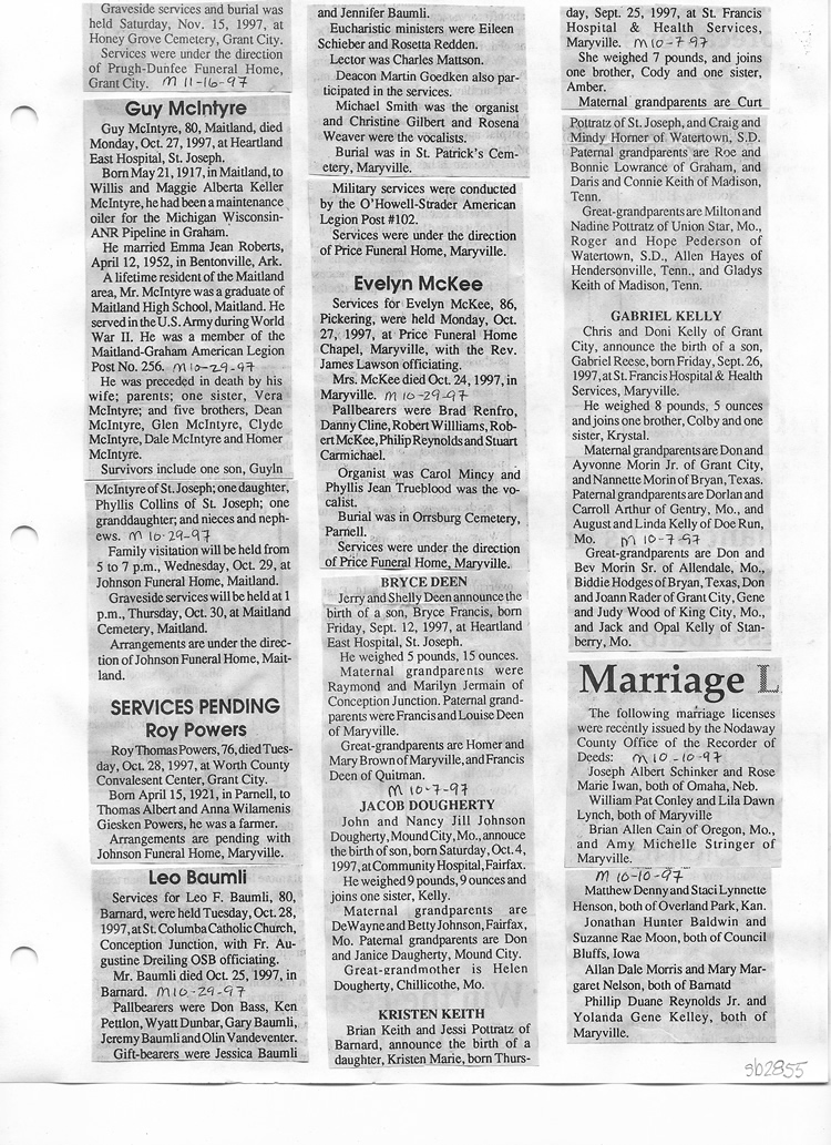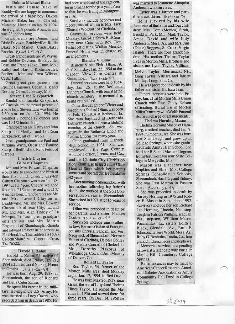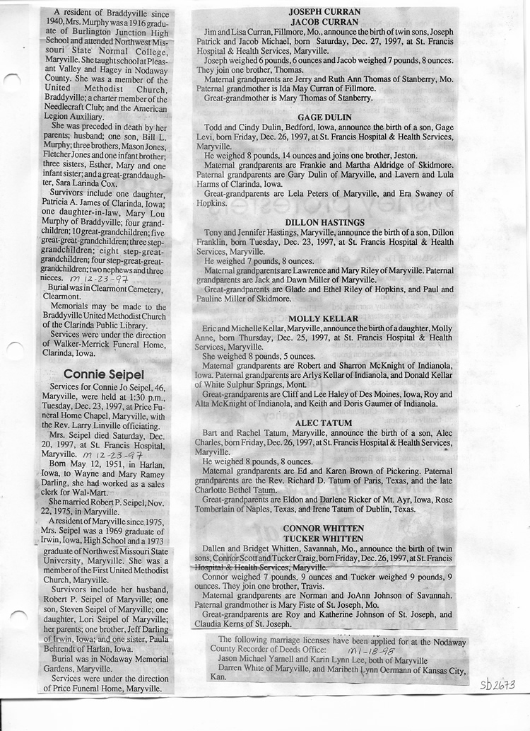 O'Dell's Abstracted Newspaper Index Clippings pages sb6000's