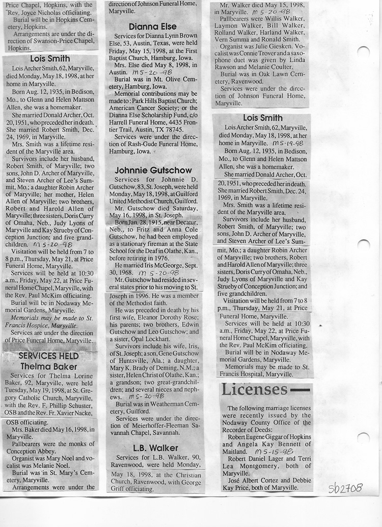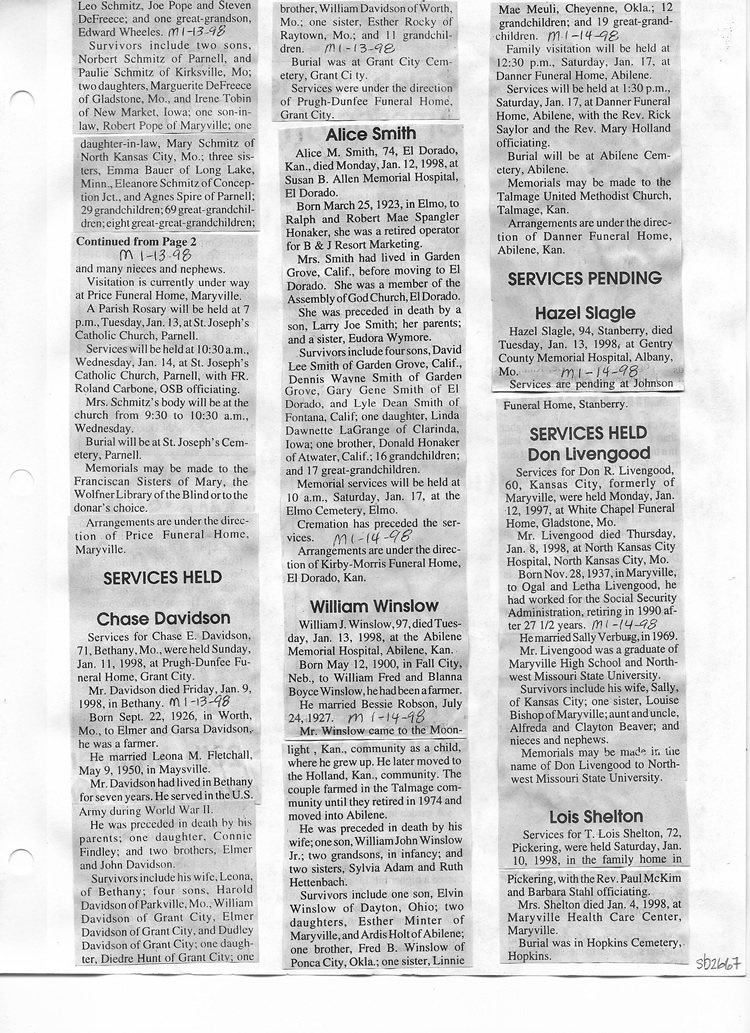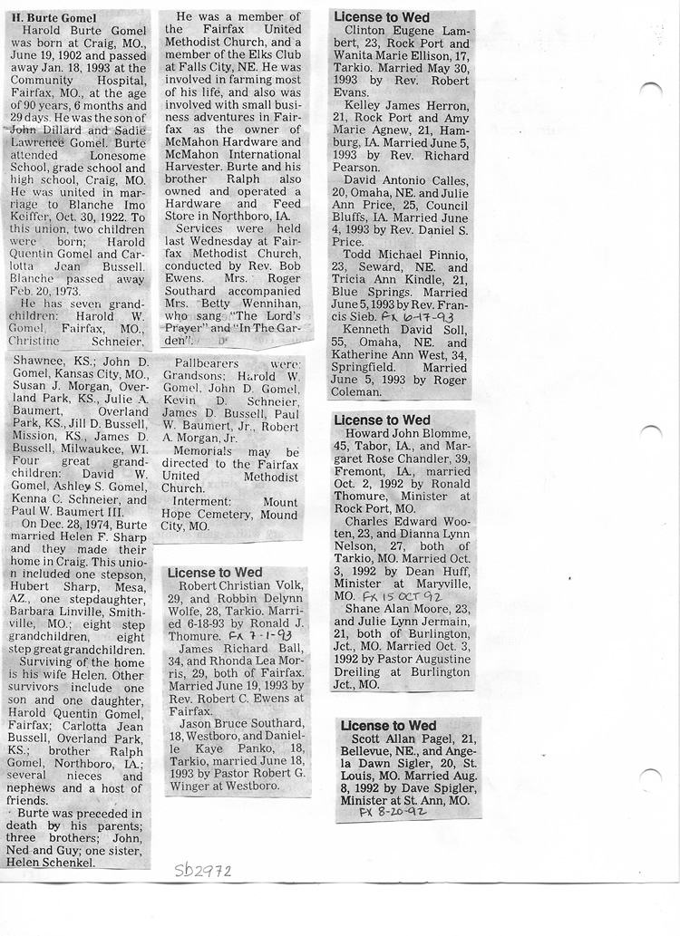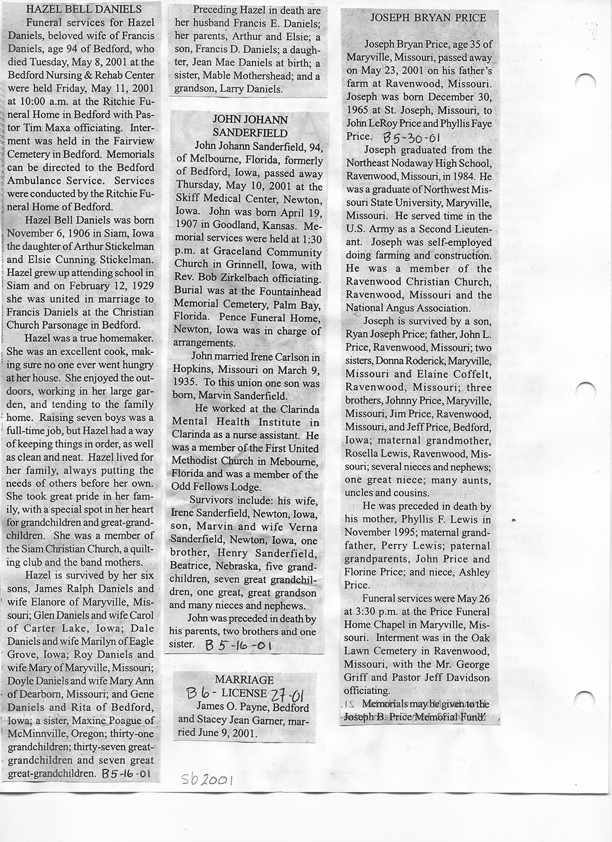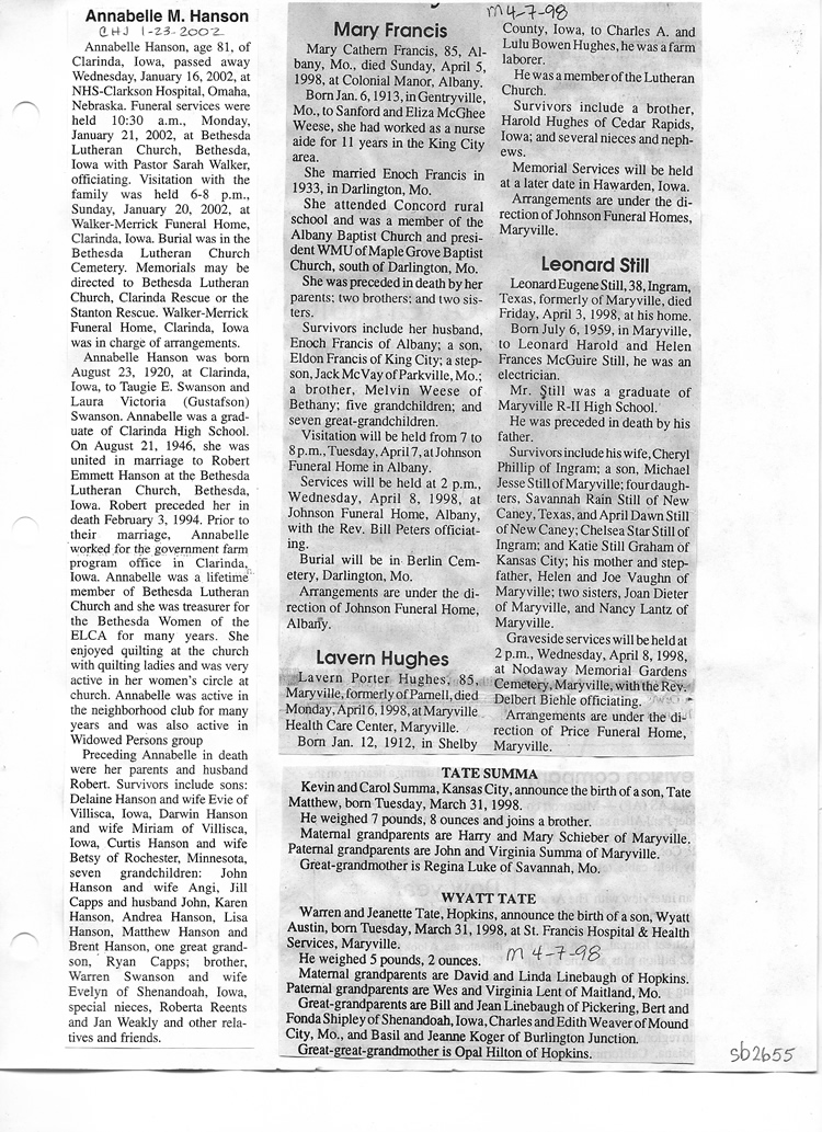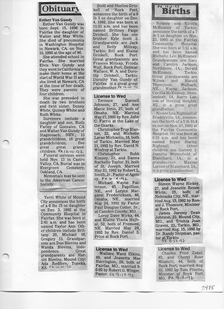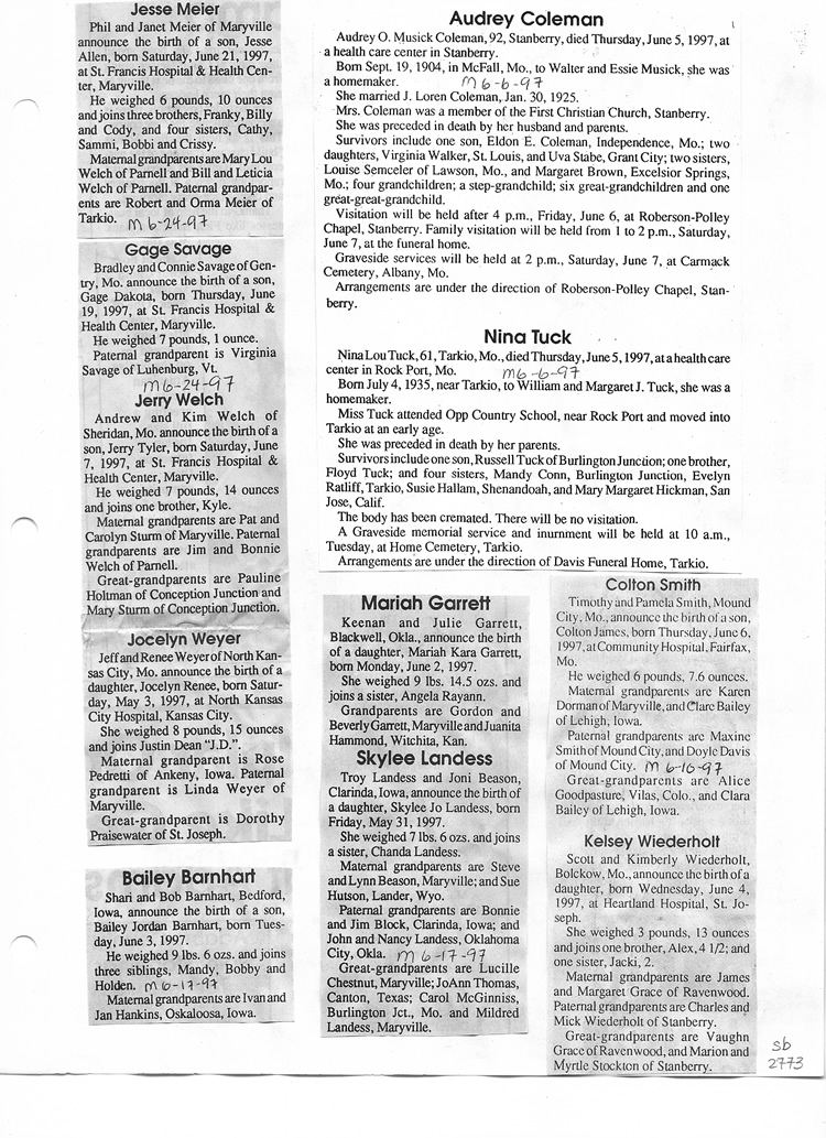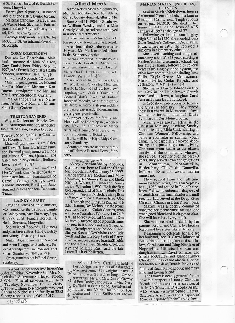 O'Dell's Abstracted Newspaper Index Clippings pages sb6000's