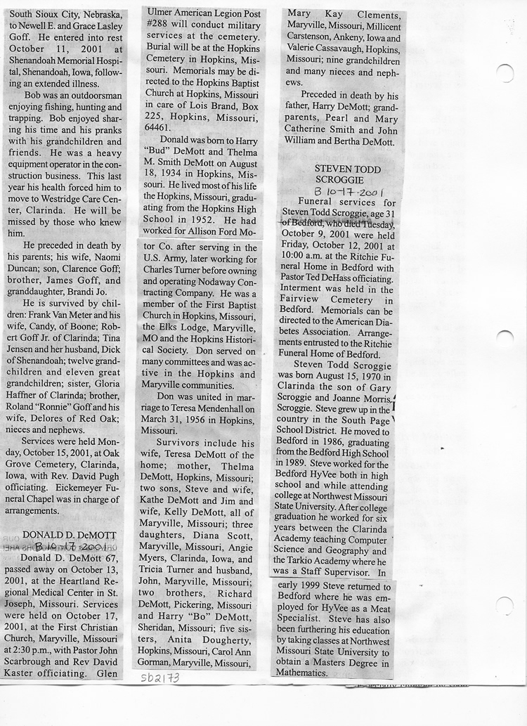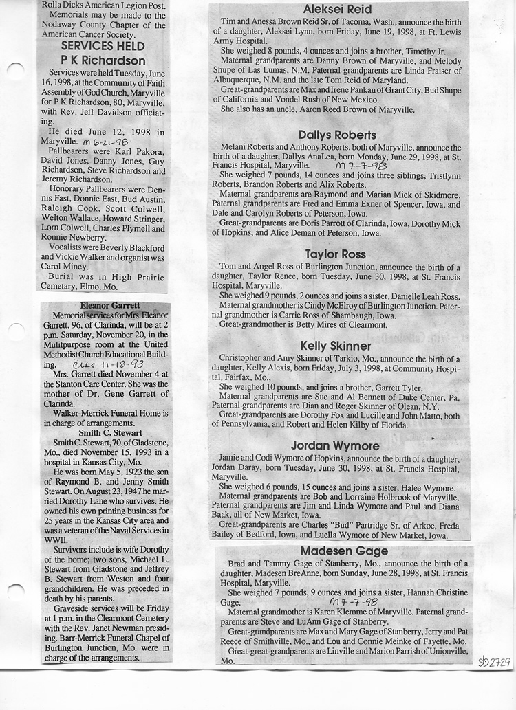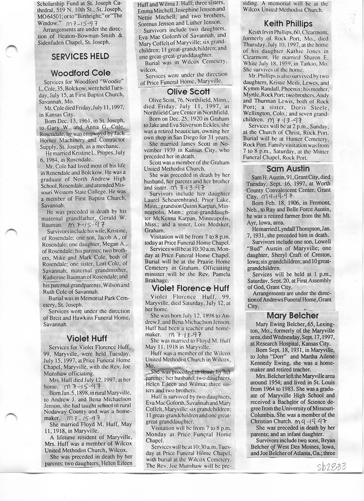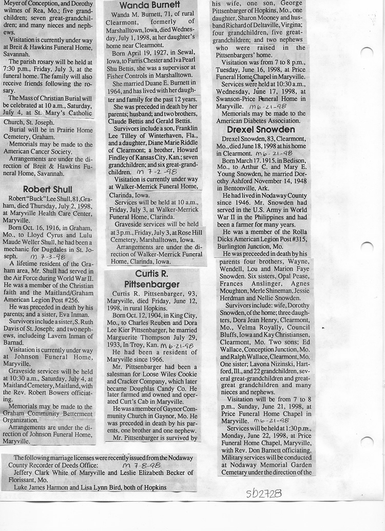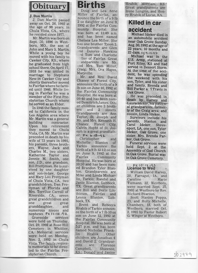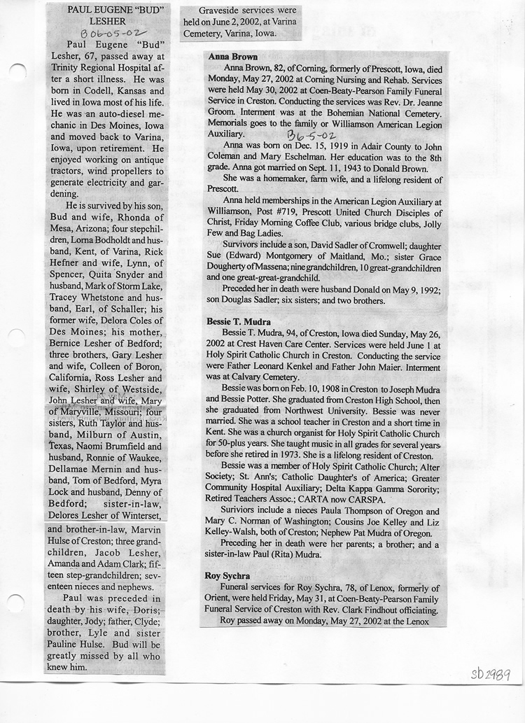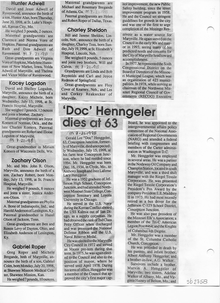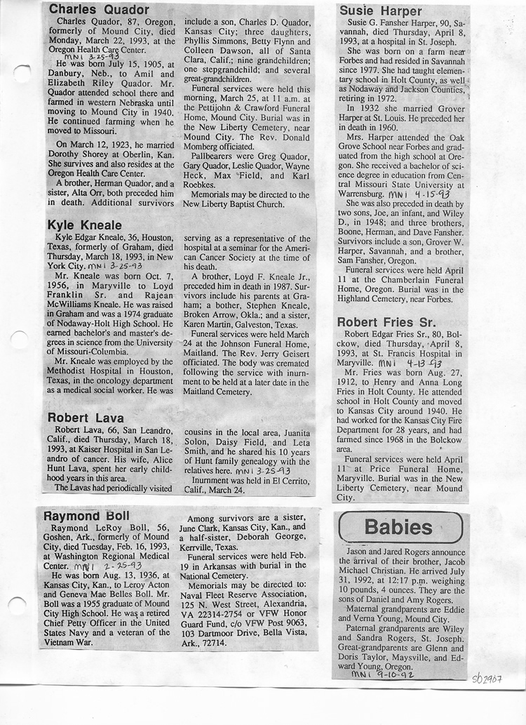 O'Dell's Abstracted Newspaper Index Clippings pages sb6000's