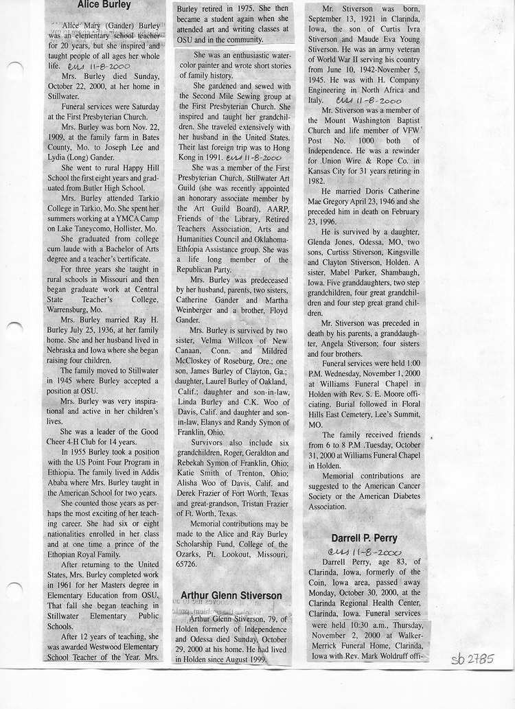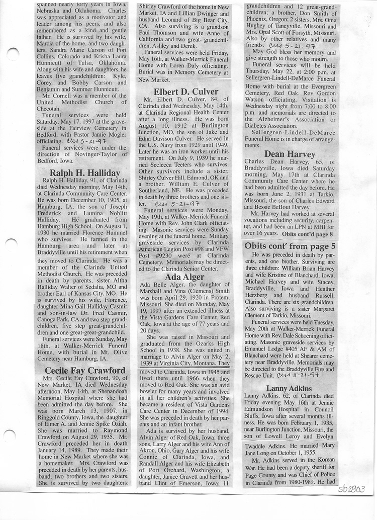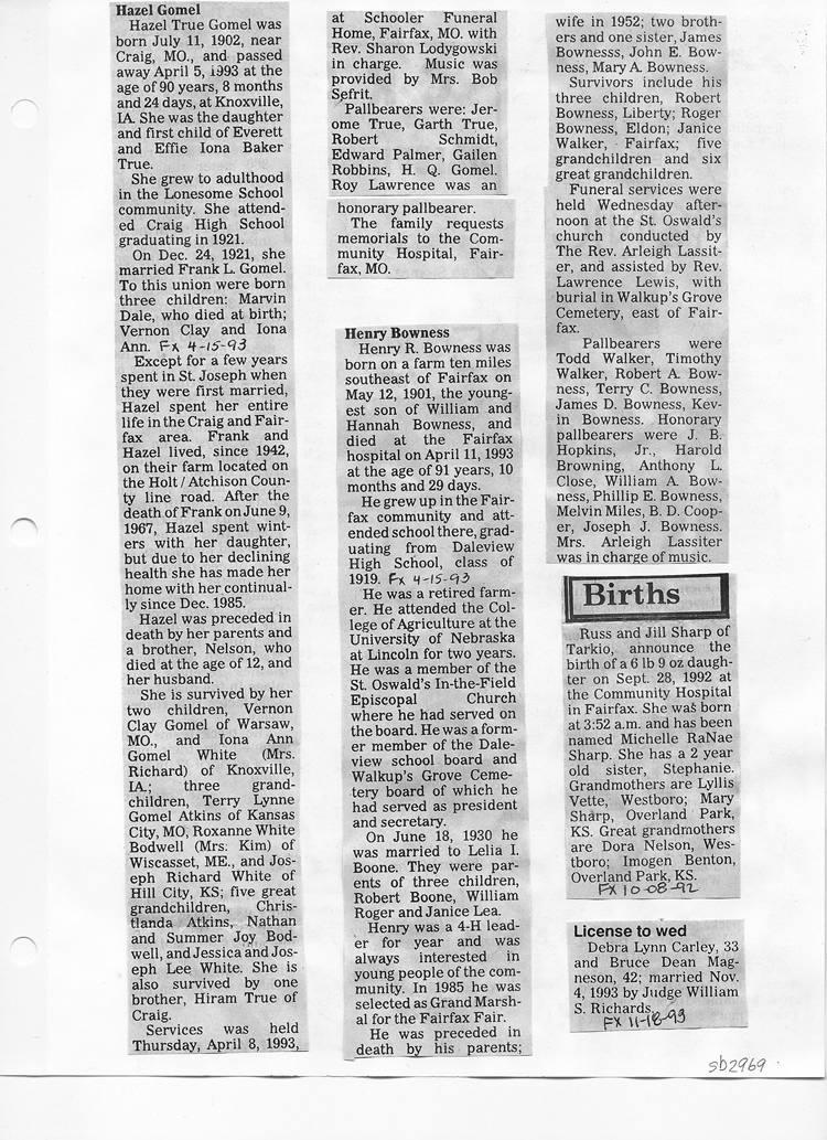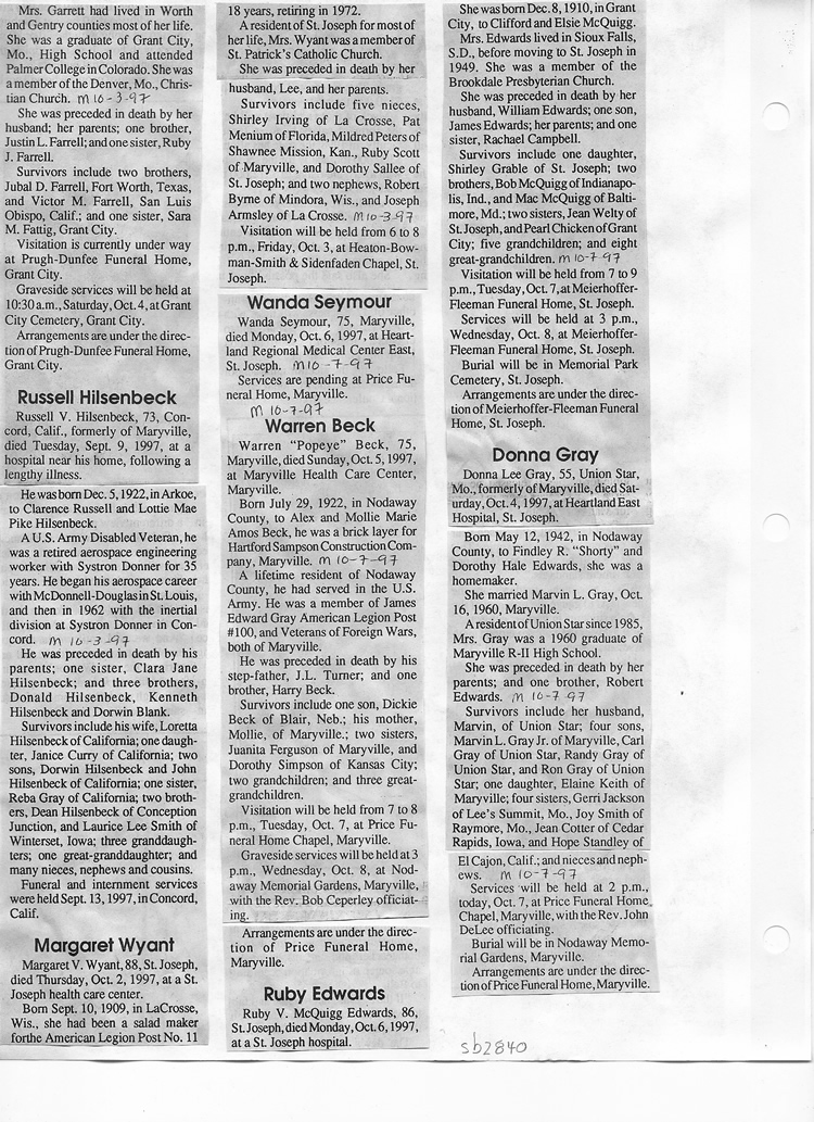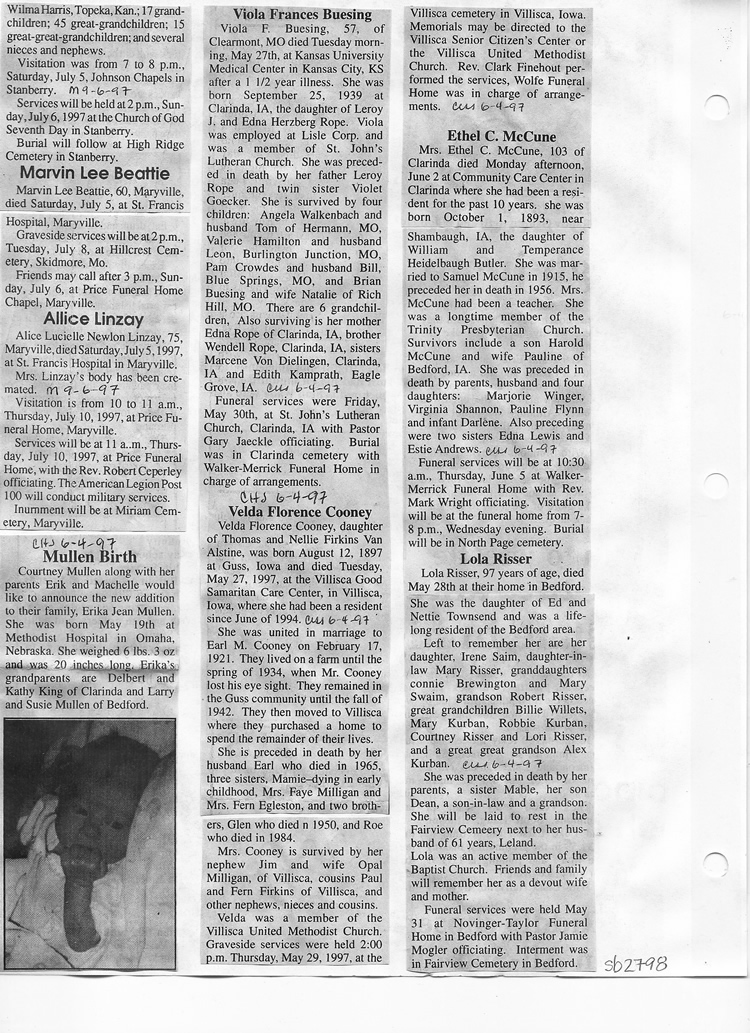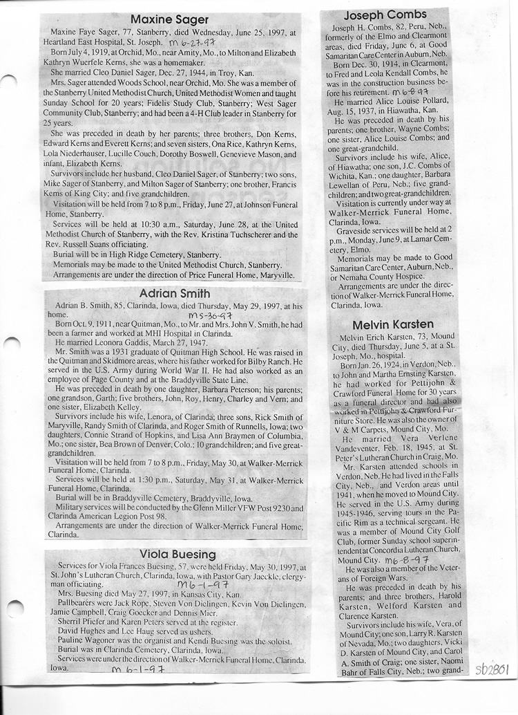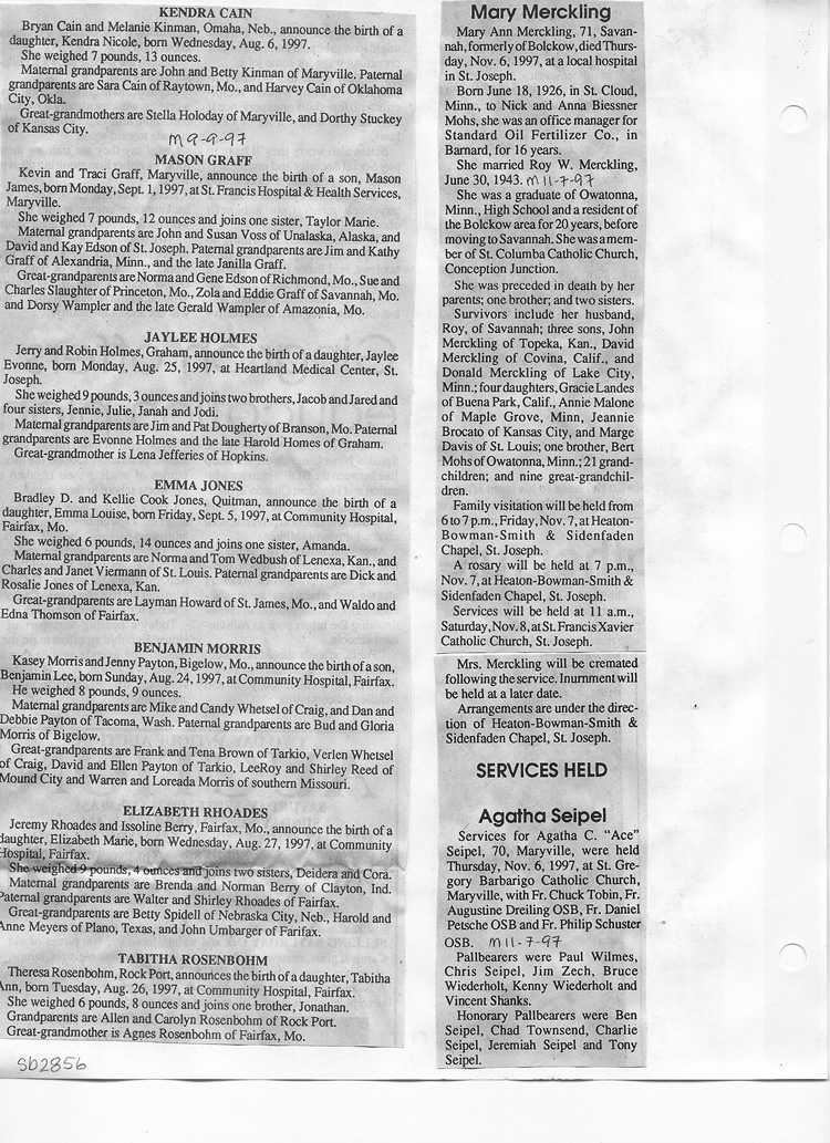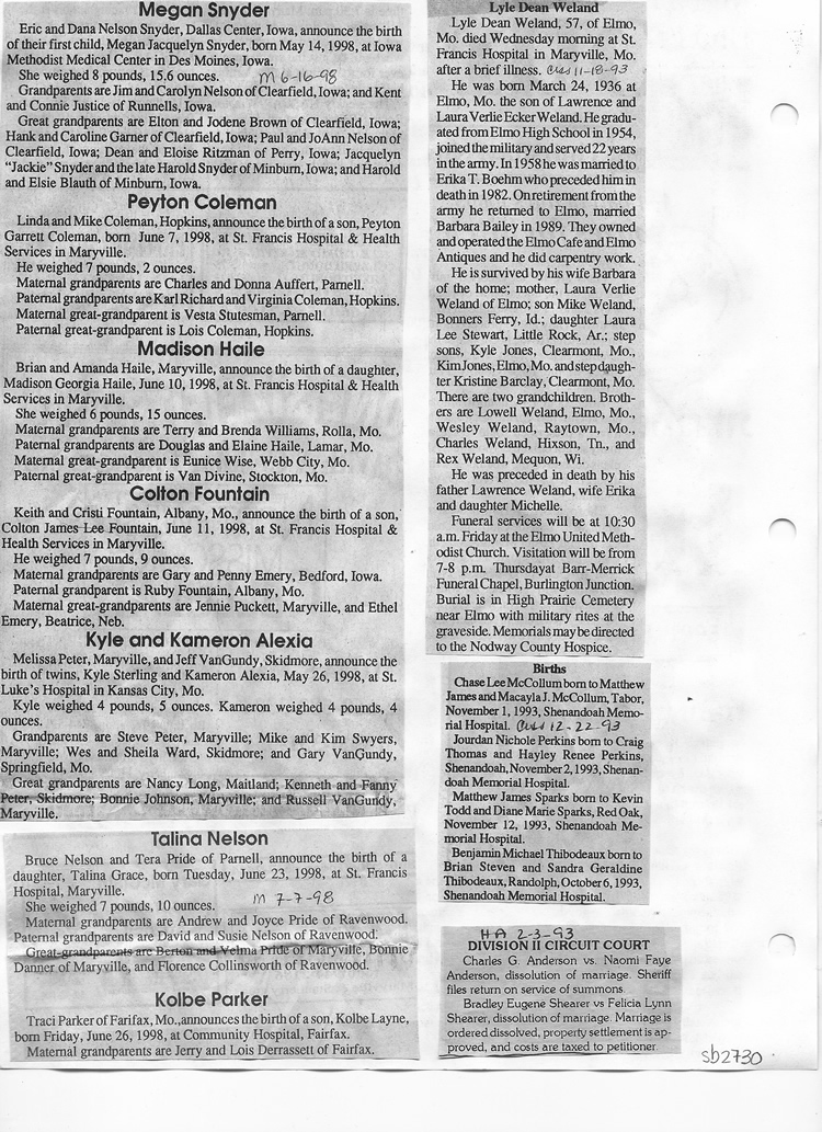 O'Dell's Abstracted Newspaper Index Clippings pages sb6000's