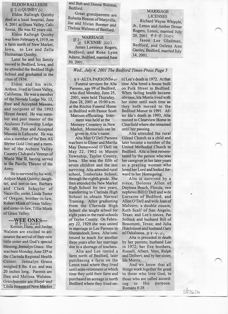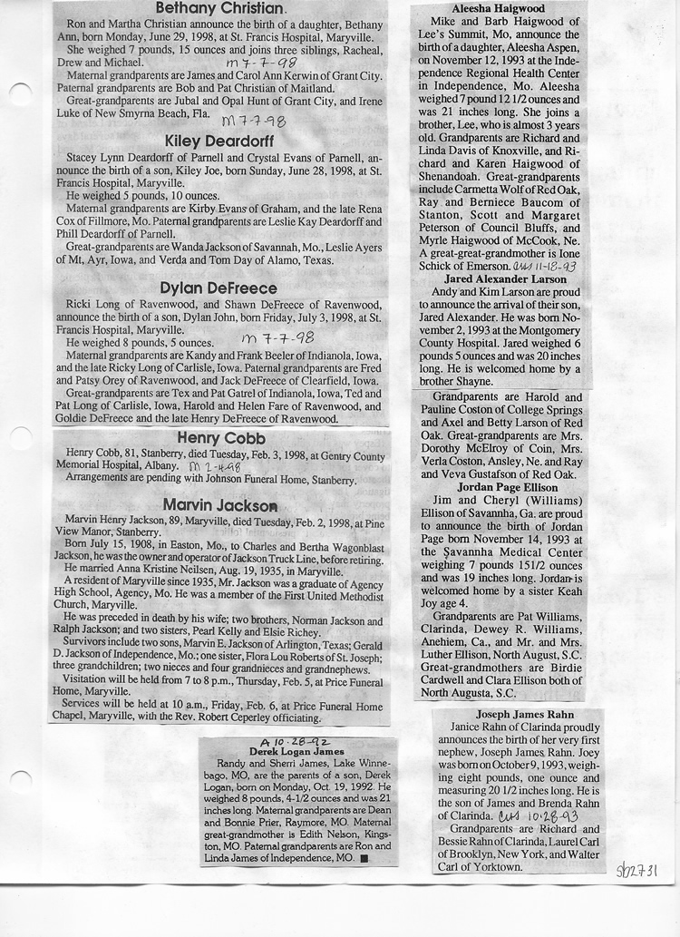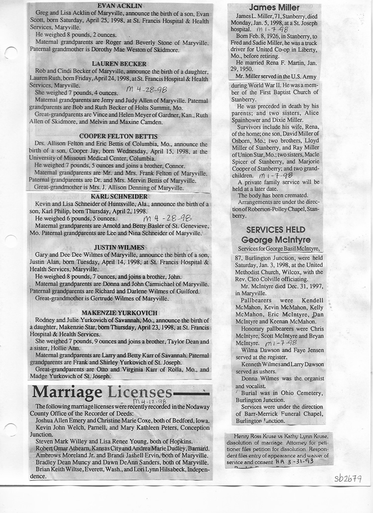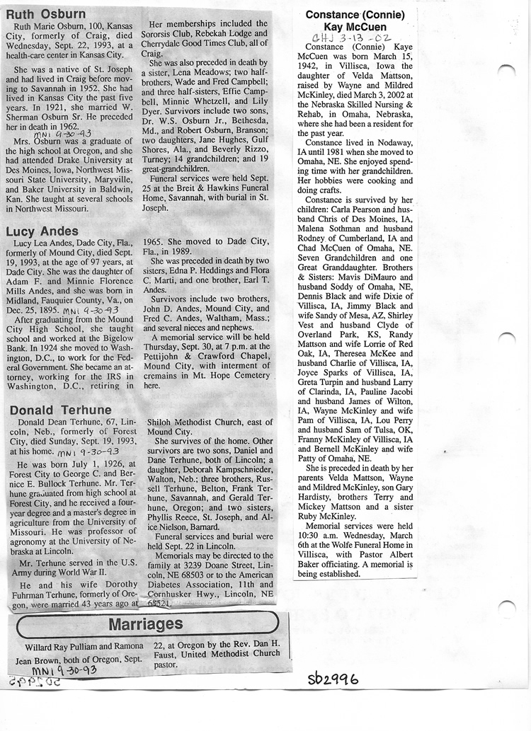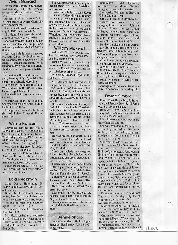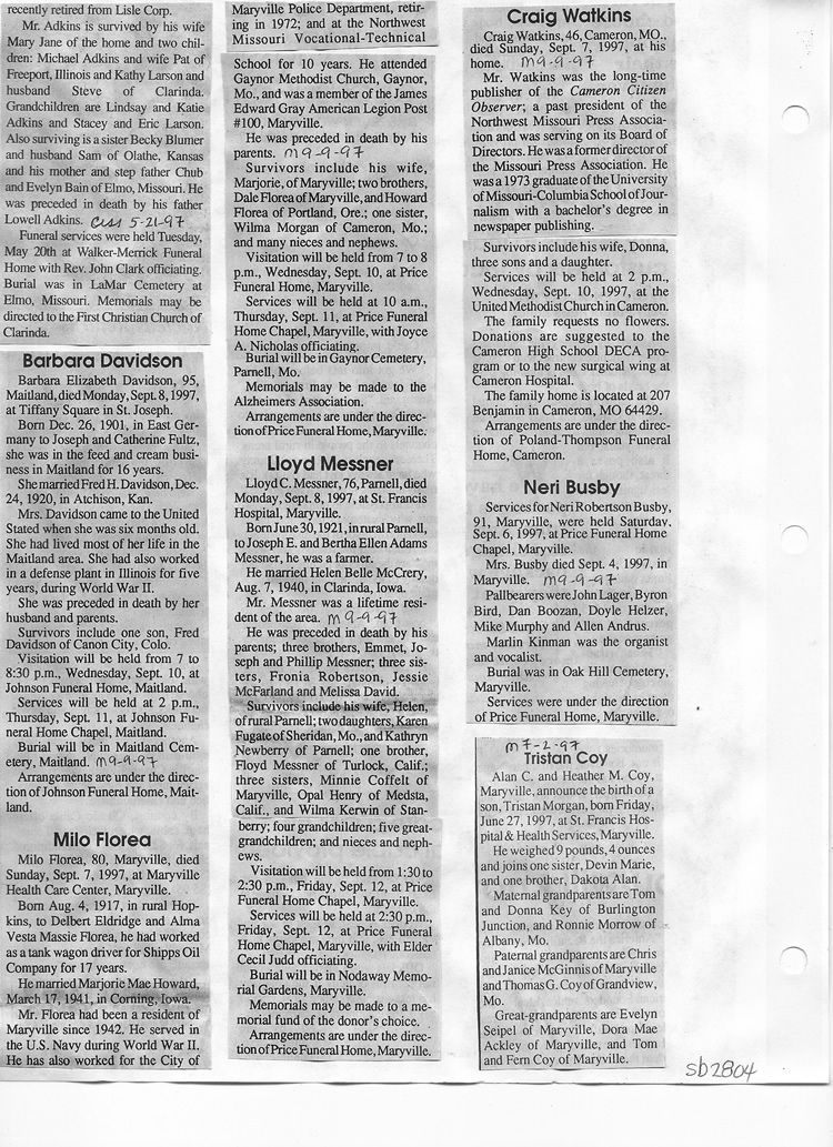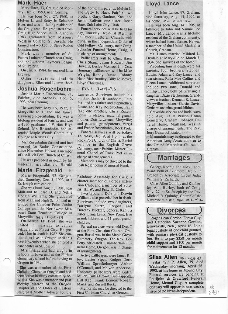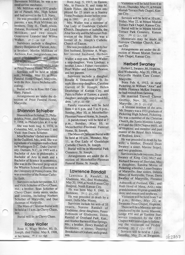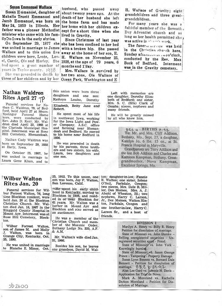 O'Dell's Abstracted Newspaper Index Clippings pages sb6000's