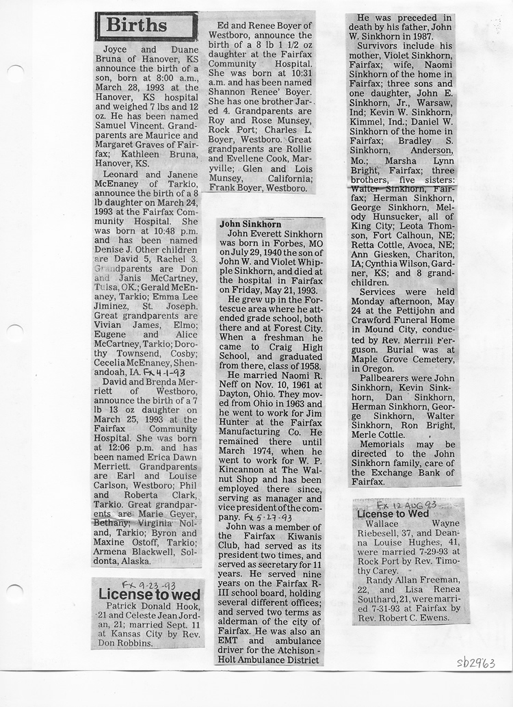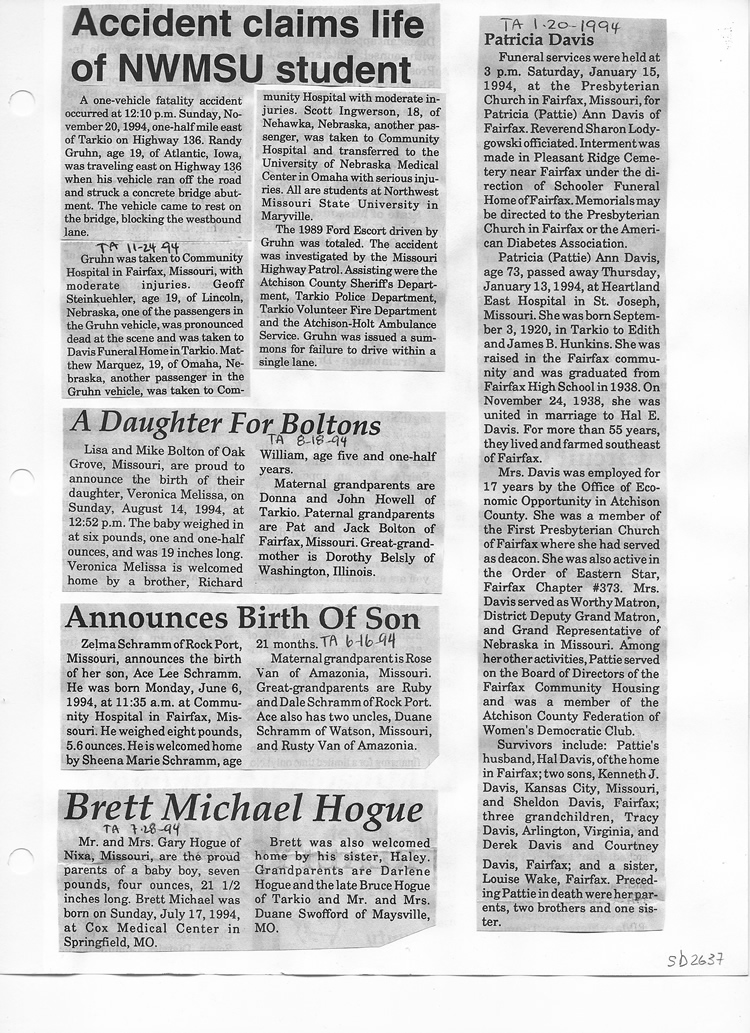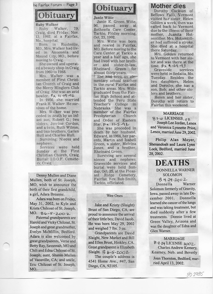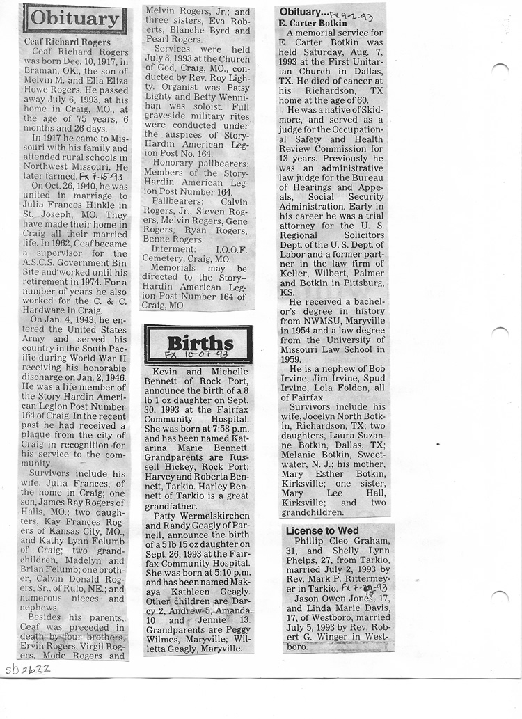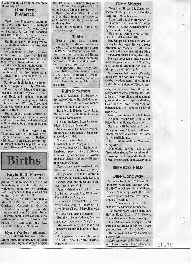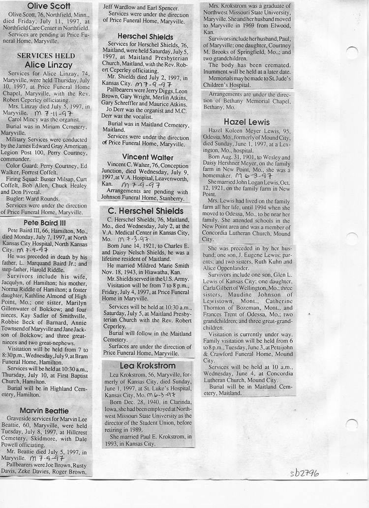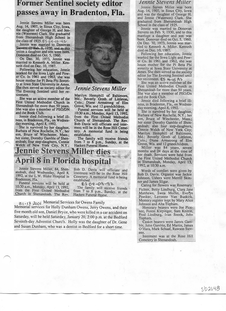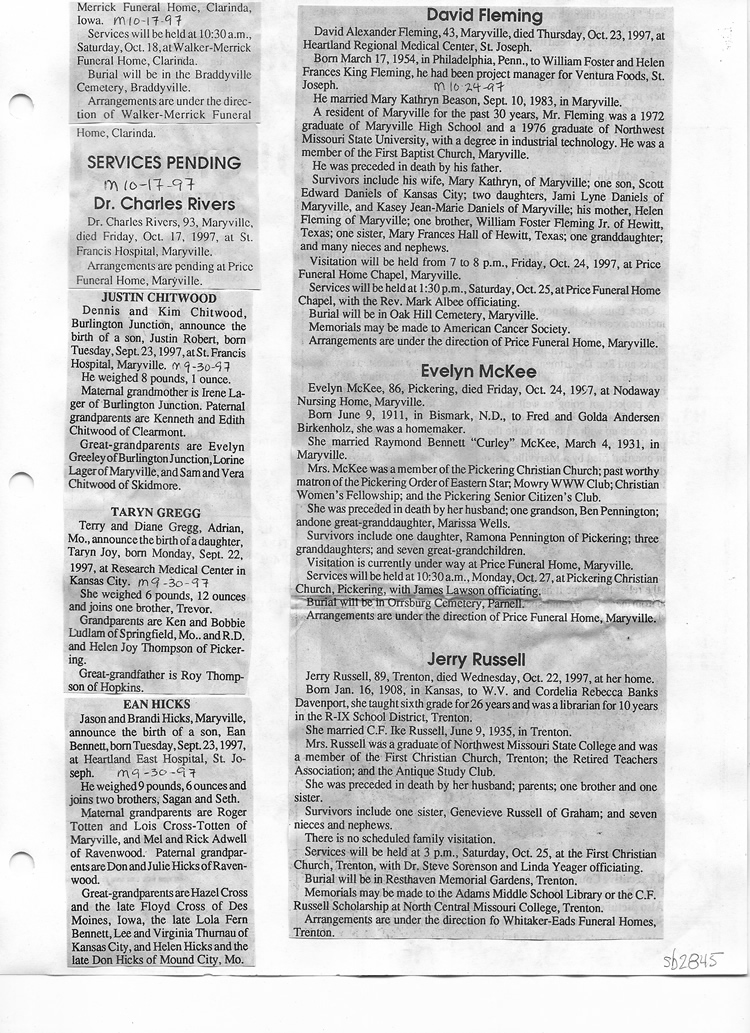 O'Dell's Abstracted Newspaper Index Clippings pages sb6000's