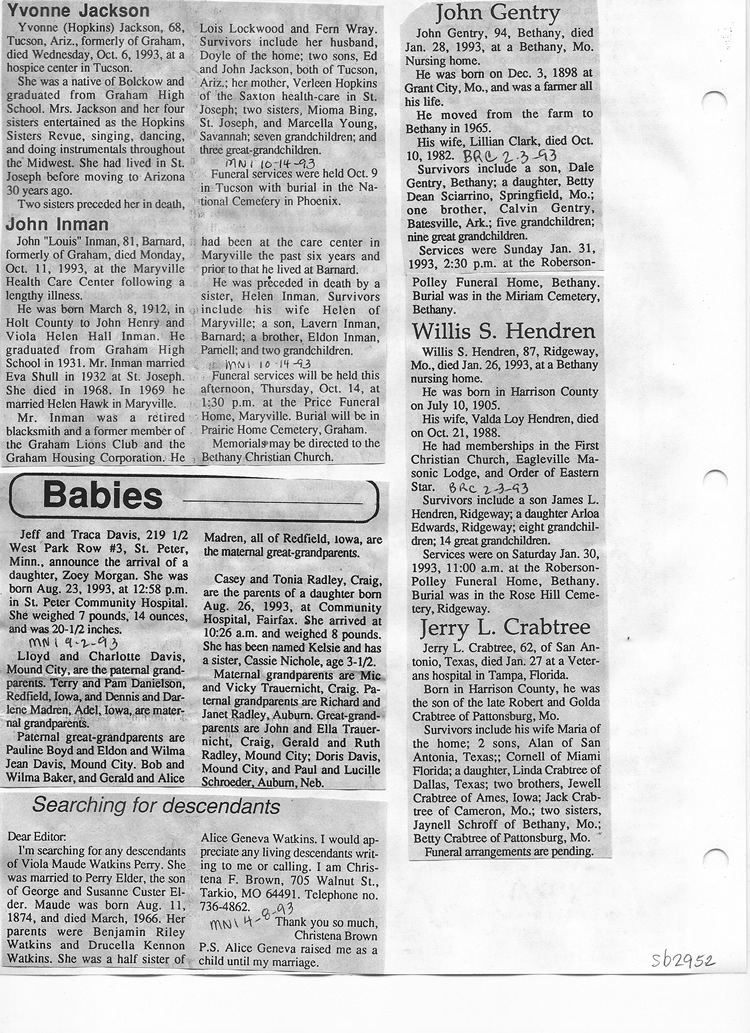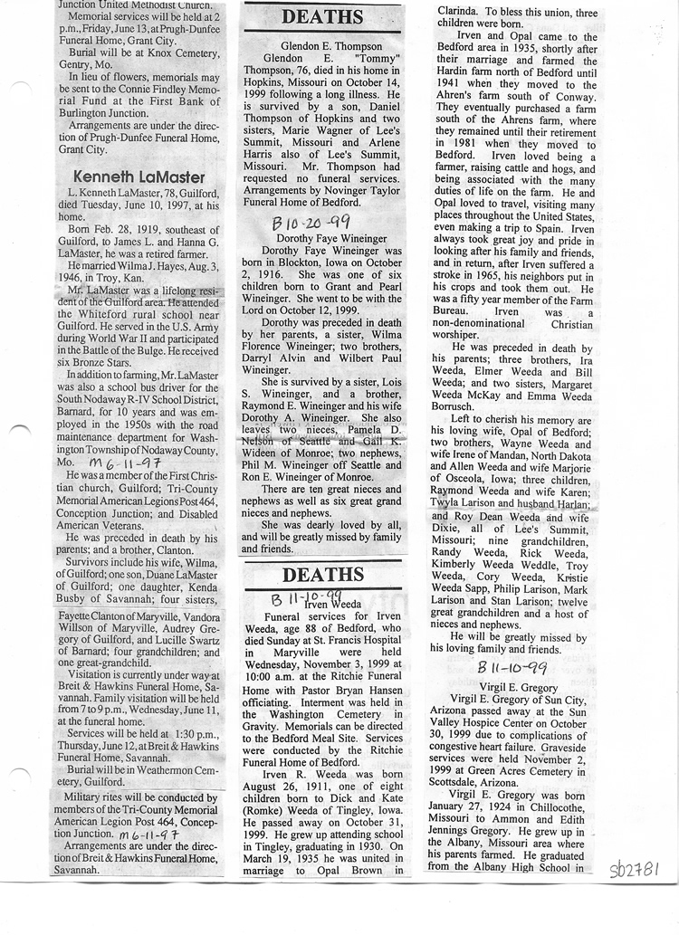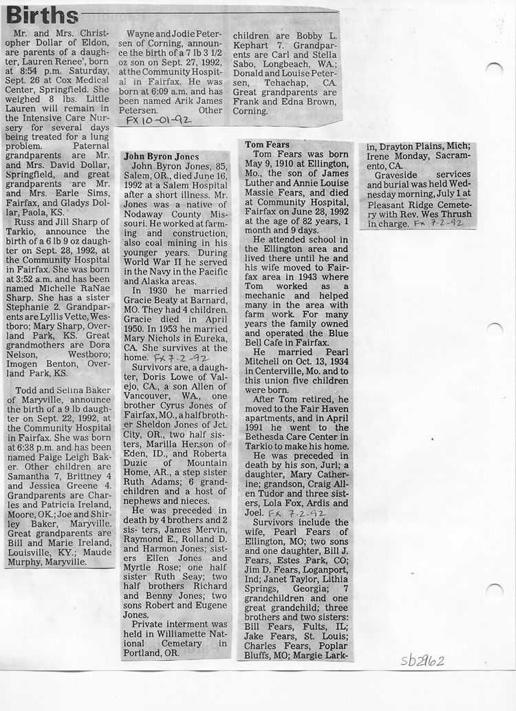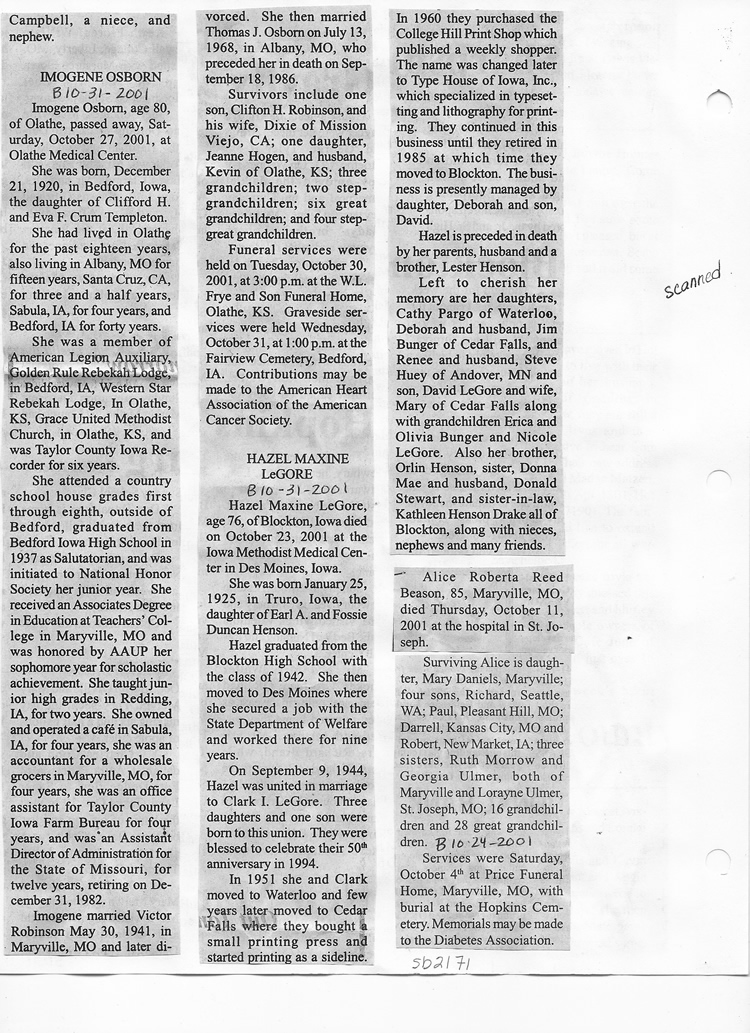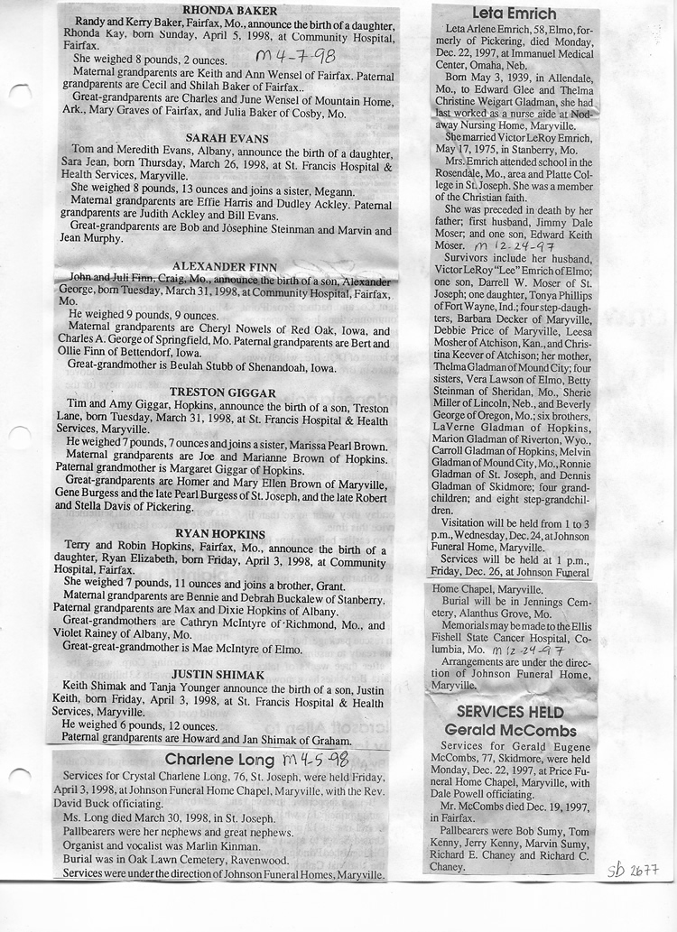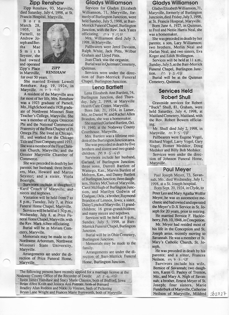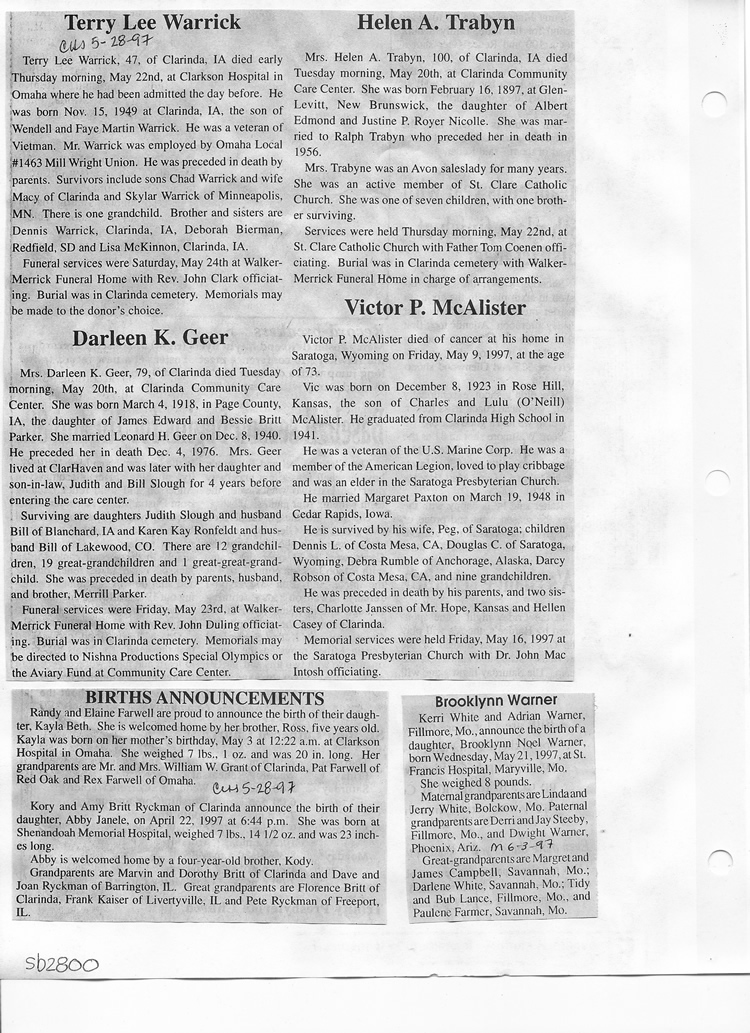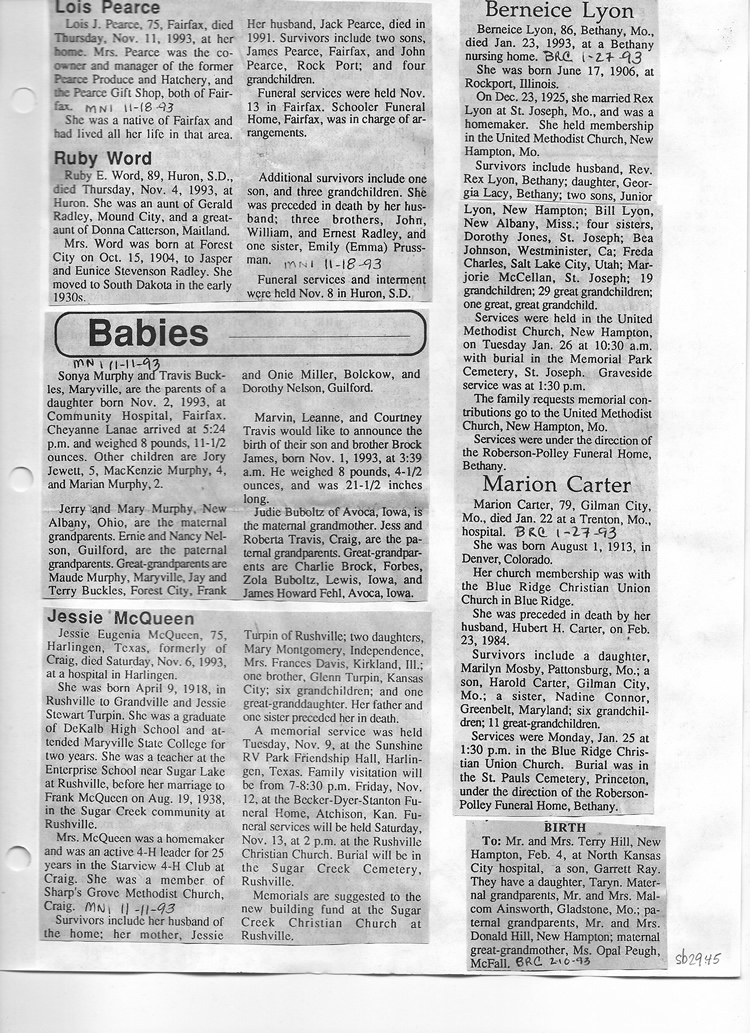 O'Dell's Abstracted Newspaper Index Clippings pages sb6000's