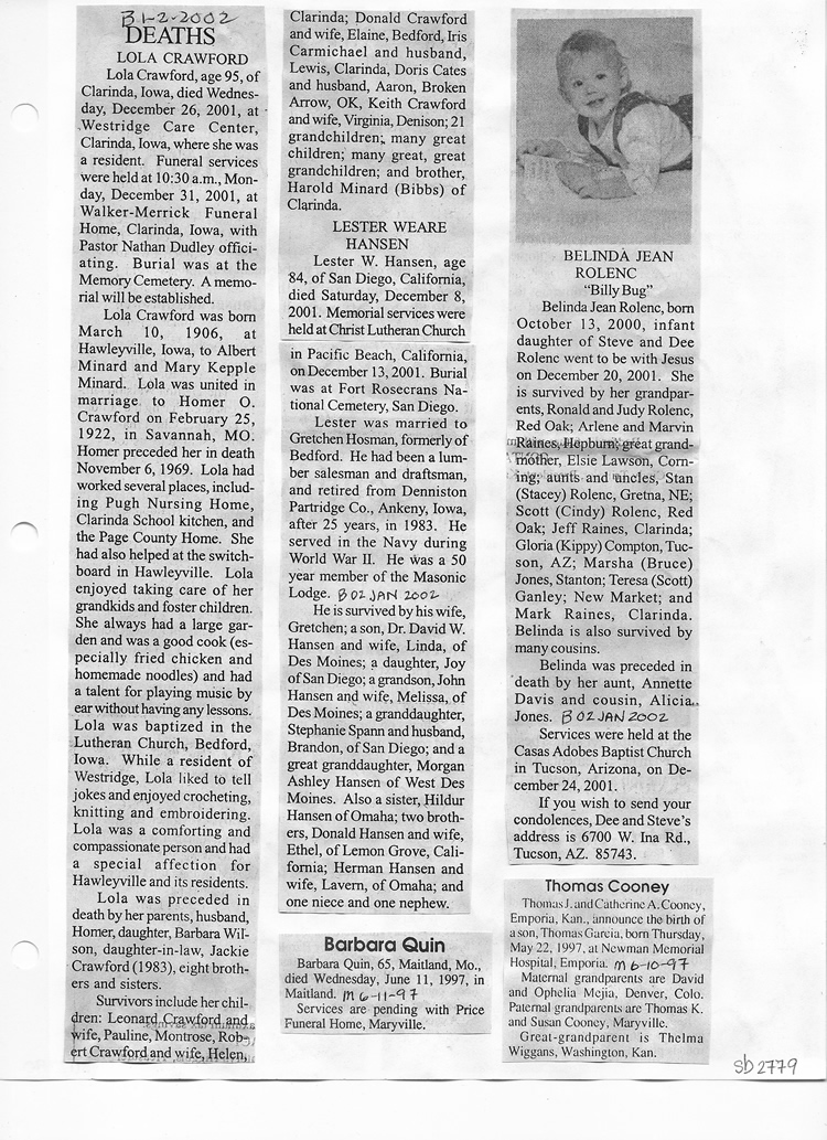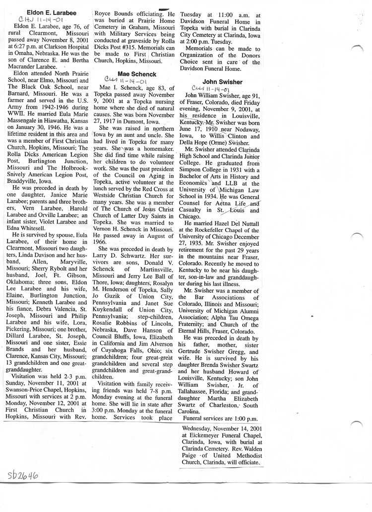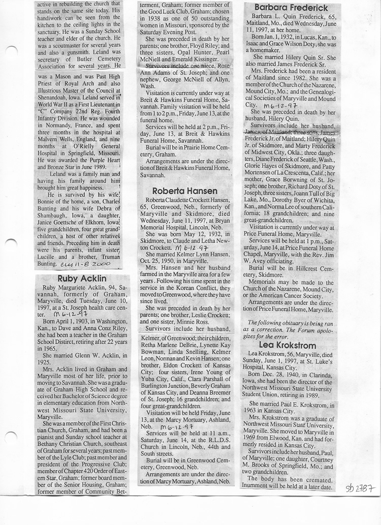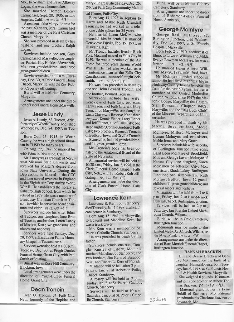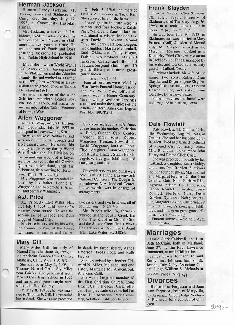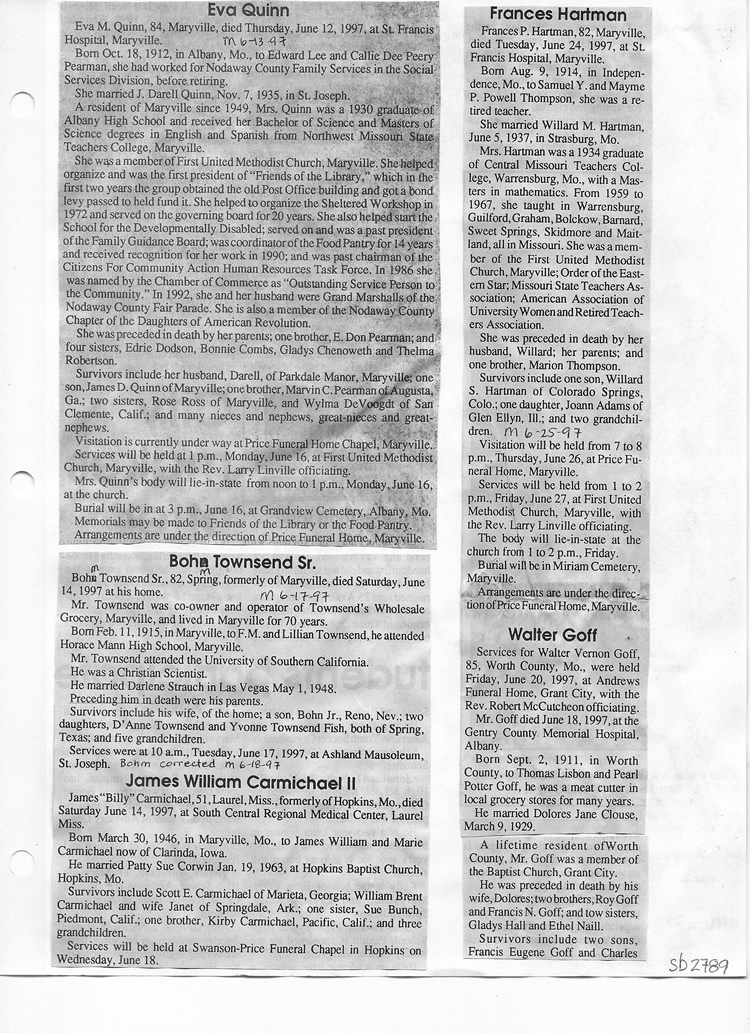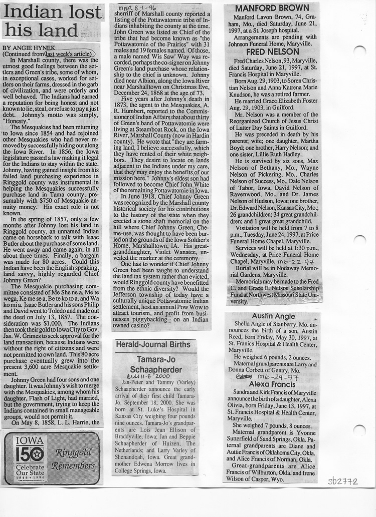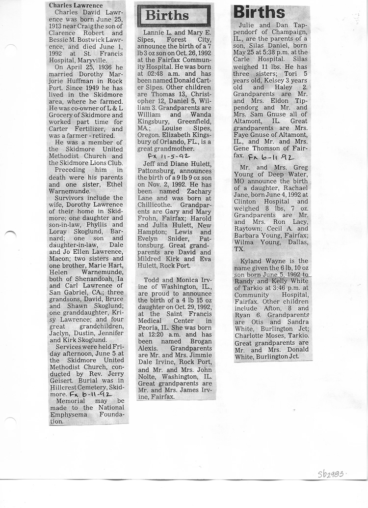 O'Dell's Abstracted Newspaper Index Clippings pages sb6000's