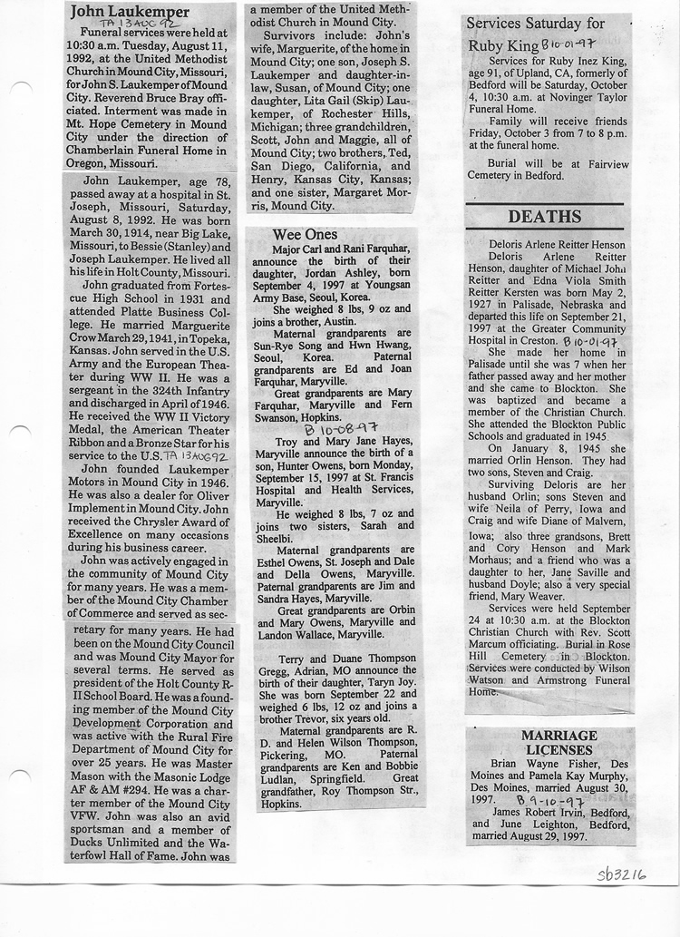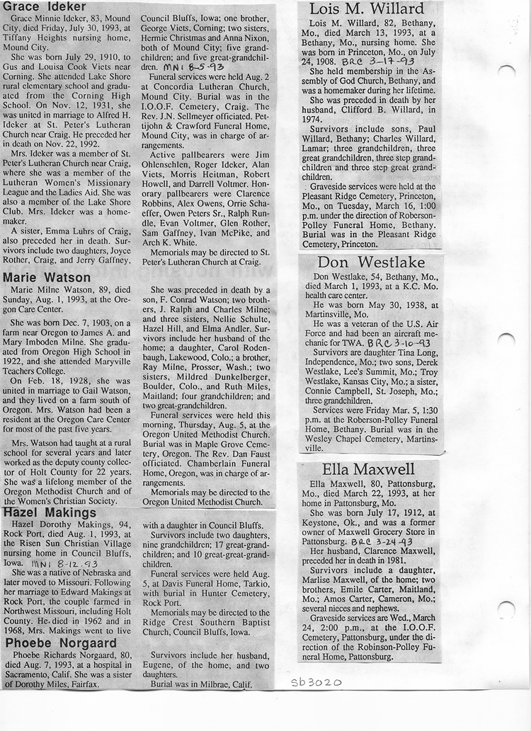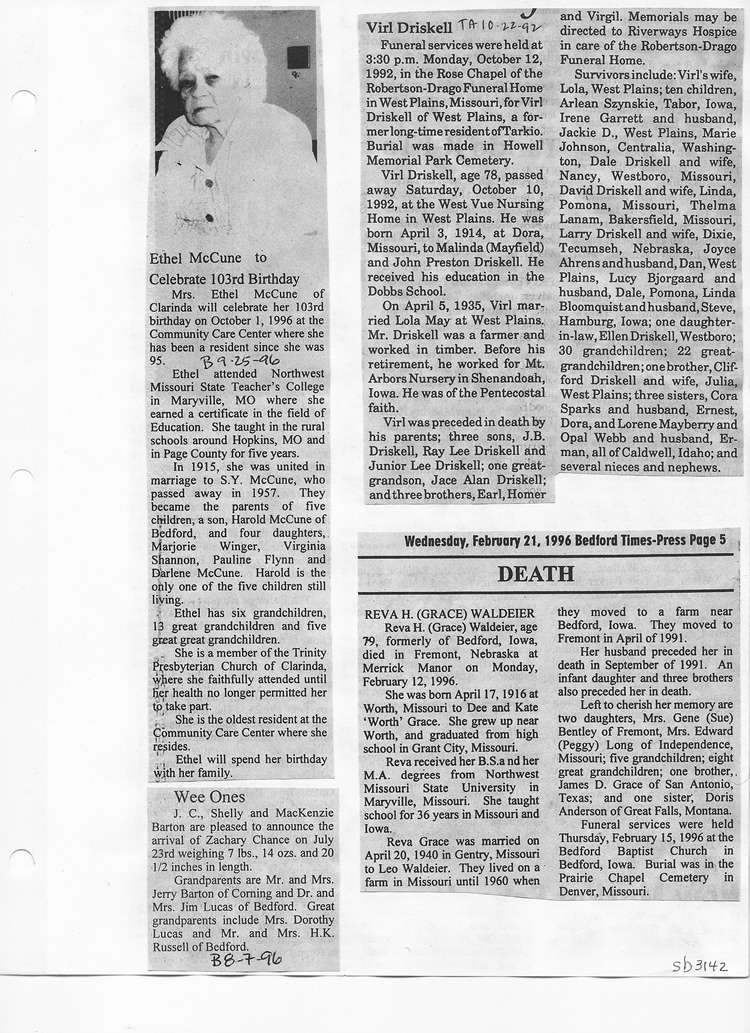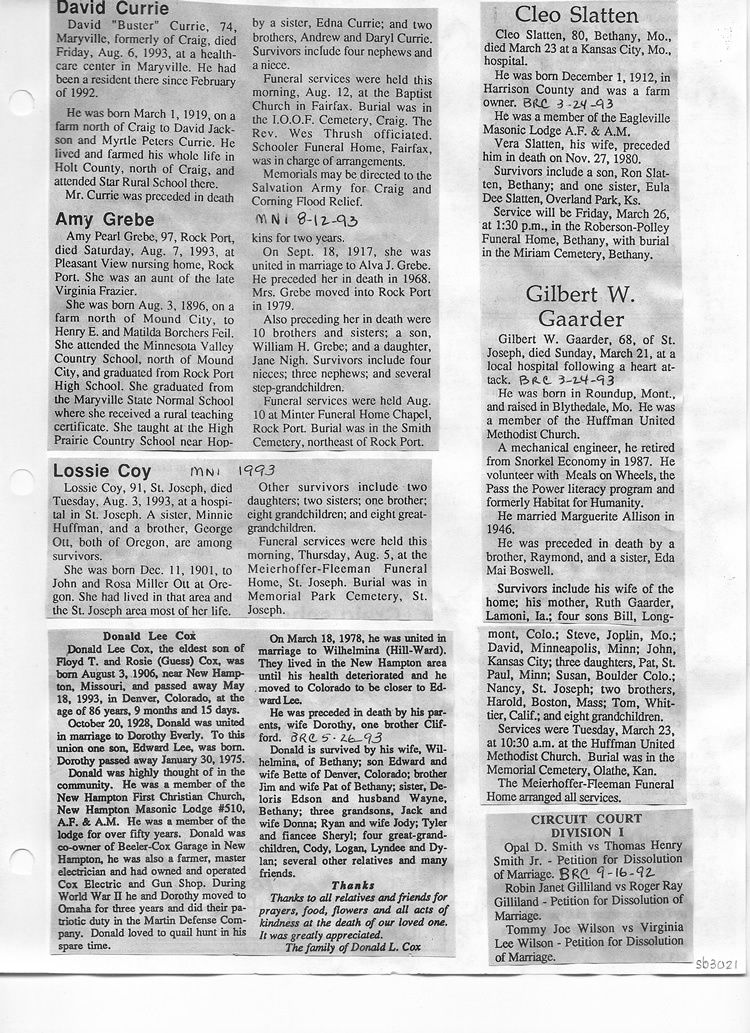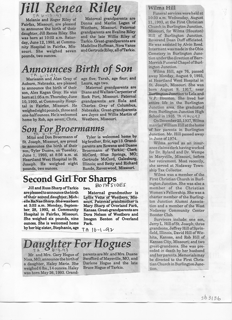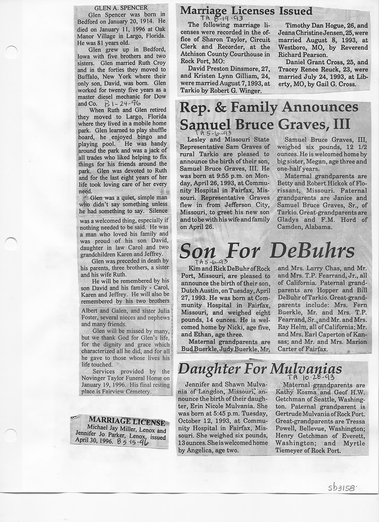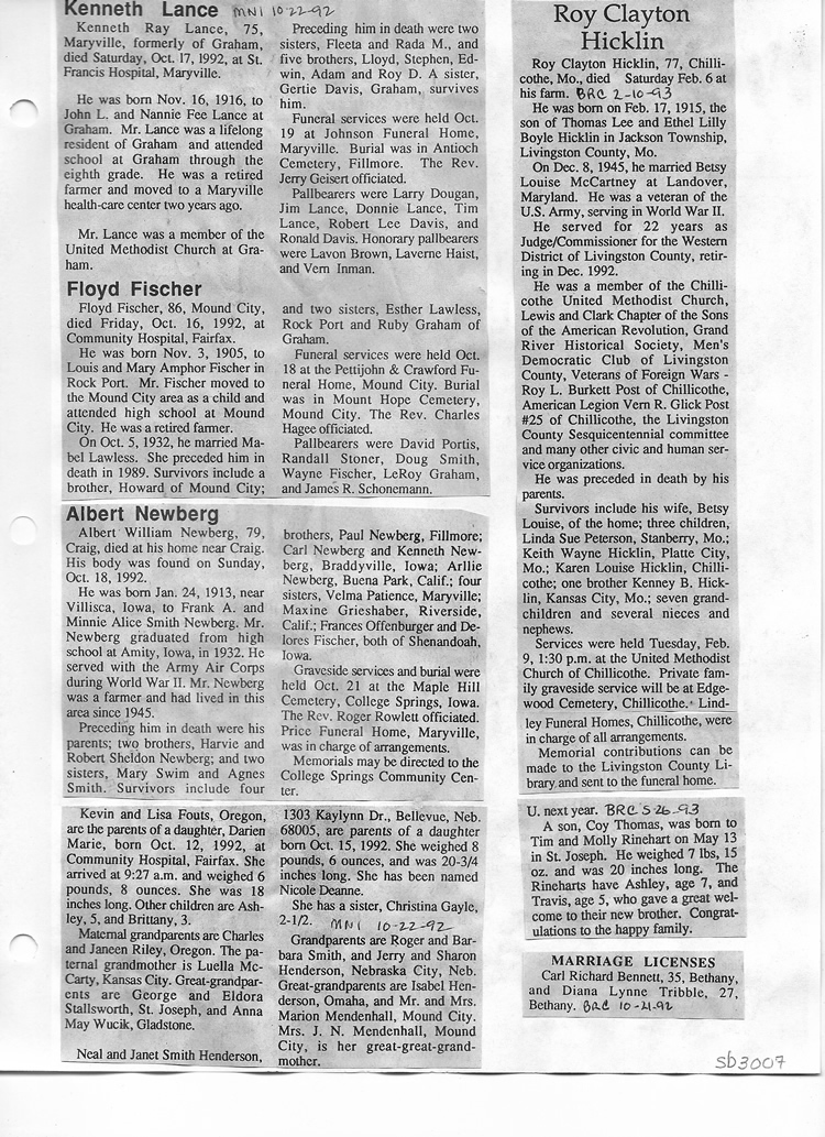 O'Dell's Abstracted Newspaper Index Clippings pages sb3000's