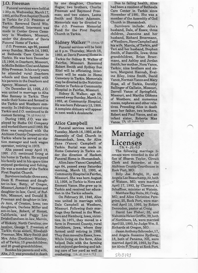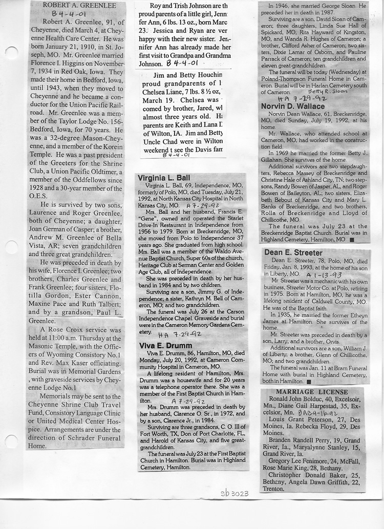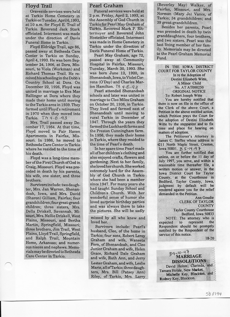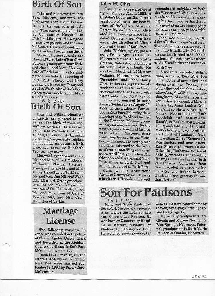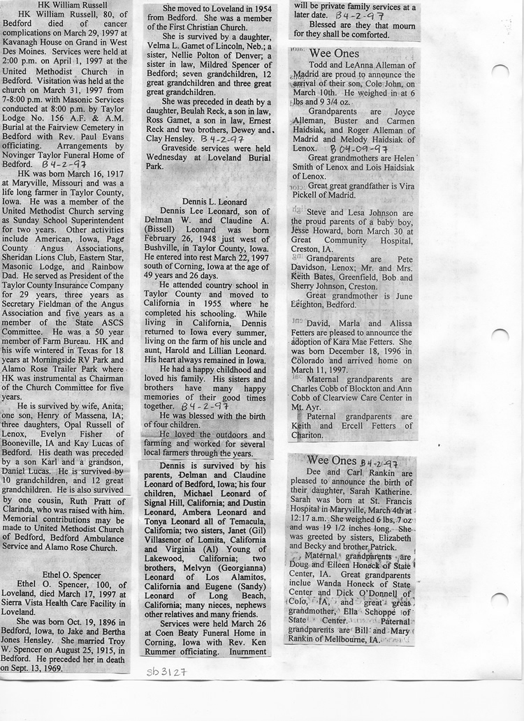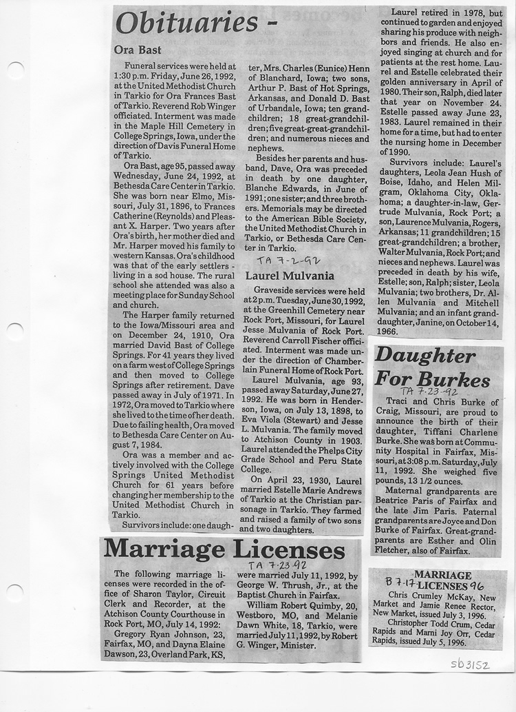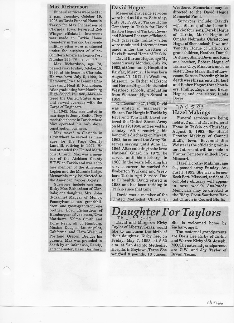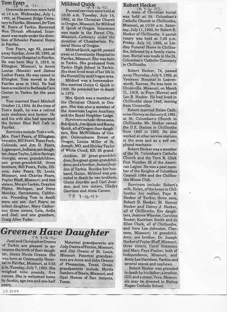 O'Dell's Abstracted Newspaper Index Clippings pages sb3000's