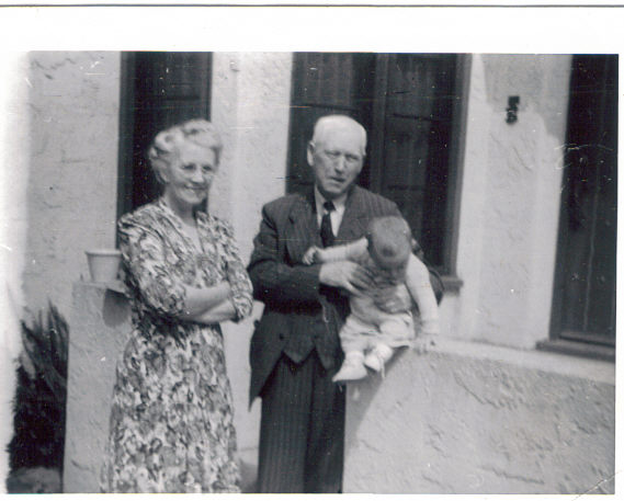 Ulysses Simeon Wright holding great-grandson, William Lloyd Norton, and Alma Efferton Wright Conklin, taken in El Monte, California, 1943