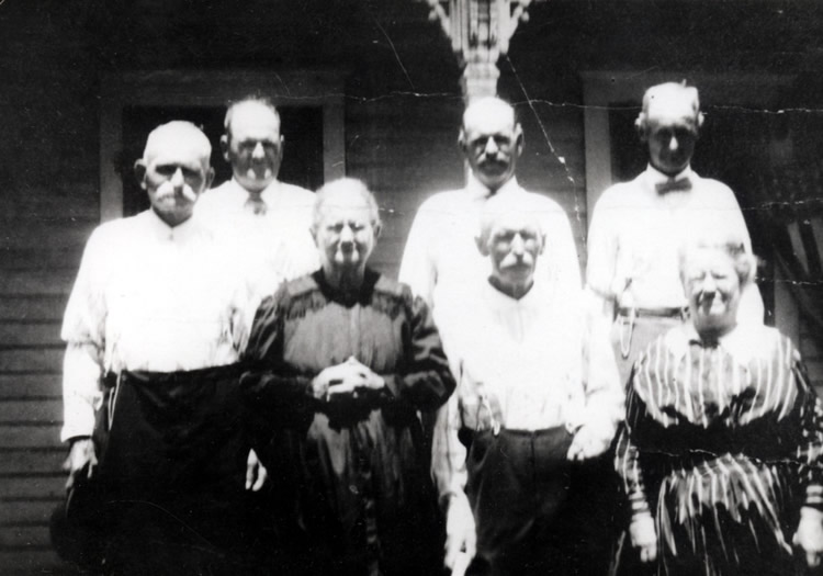 "Joseph P. Thompson Family." In the 1880 US Census they were living in Washington, Nodaway County, Missouri. In the household were the following persons: wife Margaret, Joseph O., age 17; Jacob L., age 16; Carnelus, age 13; Sarah J Noland, age 18; and Vizona H. Noland, age 12. He listed his occupation as a farmer. He was living at the same location in the 1870 Census, but had additional children: Alexander, age 21; John J., age 14, Margaret, age 12; and Ellen, age 10. However the wife's name was Lutetia (Lower) Thompson. Lutetia Lower Thompson died 19 February 1879, Guilford, Nodaway County. It appears he remarries to a Margaret, maybe they would account for Sarah and Vizona Noland. Joseph died 12 September 1885 in Guilford, Nodaway County. Anthony Graves (Guilford) married 2nd, Martha Lower, who appears to be the sister of Lutetia, the wife of Joseph Thompson. |