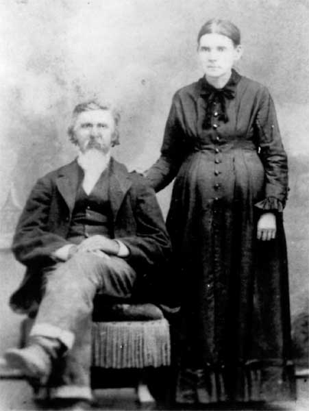 Martin V. Grindstaff and wife Armilda (Spoonemore) Grindstaff; daughter of David and Nancy (Clifton) Spoonemore was born Feb 16, 1834 Putnam Co, Ind and died Dec 25, 1902 Pawnee, Pawnee Co, Ok; buried Highland Cemetery, Pawnee, Okla Grindstaff families are buried in Sweet Home and Lucas Cemeteries in Nodaway County, Mo. photo sent by: Betty Moses |