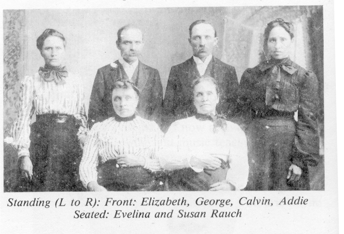 Standing (L to R): Front: Elizabeth, George, Calvin, Addie - Seated: Evelina and Susan Rauch