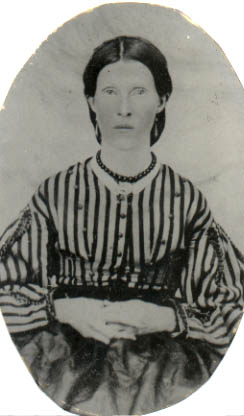 | who: 'Sarilda' is a photo of Simeon Wright's wife, Sarilda Jane Swinford Wright. (I love this photo - the jewelry and the elegance of her dress are noteworthy. My mother thinks the necklace and earrings are probably black jet and the dress was probably black with another bold color in the stripes - green, blue or yellow.) I also have a photo of her sister Sarah Ellen Swinford who married Simeon Wright's brother, Perry Wright. Perry and Sarah's daughter, Myrtle Vance Wright, married my great-grandfather Wesley Alexander Blagg - I am thus doubly descended from the Wrights and Swinfords! | |