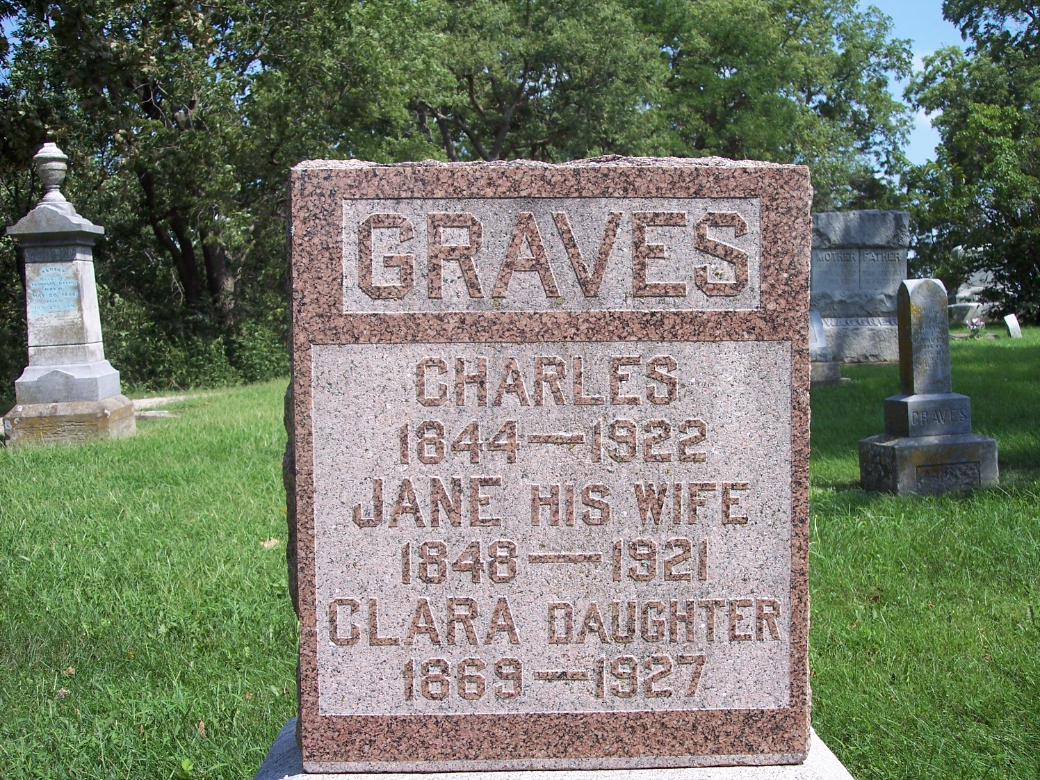 | Graham, Ella wife of I.G., died Jul 17, 1878 aged 23y 7m 14d Prairie Home |