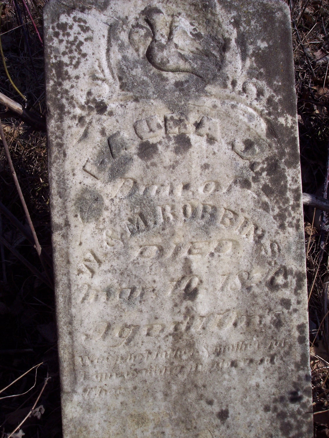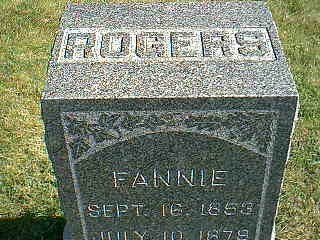 | Roberts, Frances J., wife of Nathan, died Jun 28, 1874 aged 32y 9m 11d Groves |