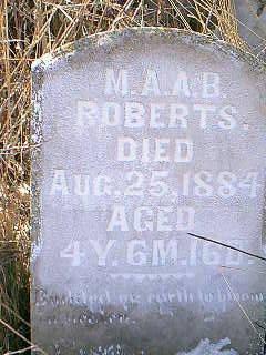 | Roberts, Chas' DAU, 4 mos, died, buried Oak Hill. ND 07 Jan 1892 |