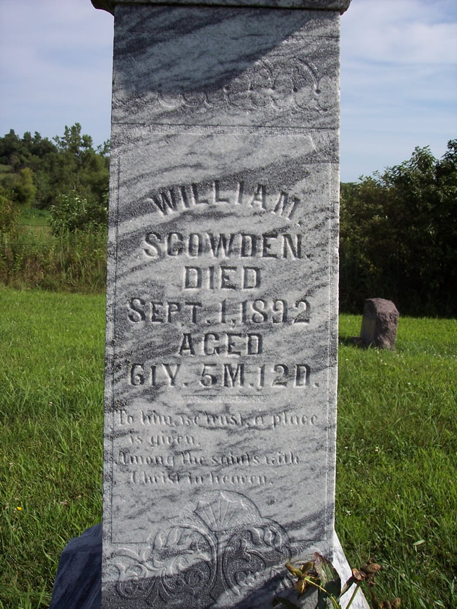 | Scowden, William, died Sep 1, 1892 aged 61y 5m 12d New Hope |