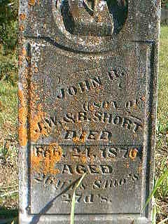 | Short, John , son of J.W. & B., died Feb 24, 1876 aged 26y 8m 27d Lamar Cem |