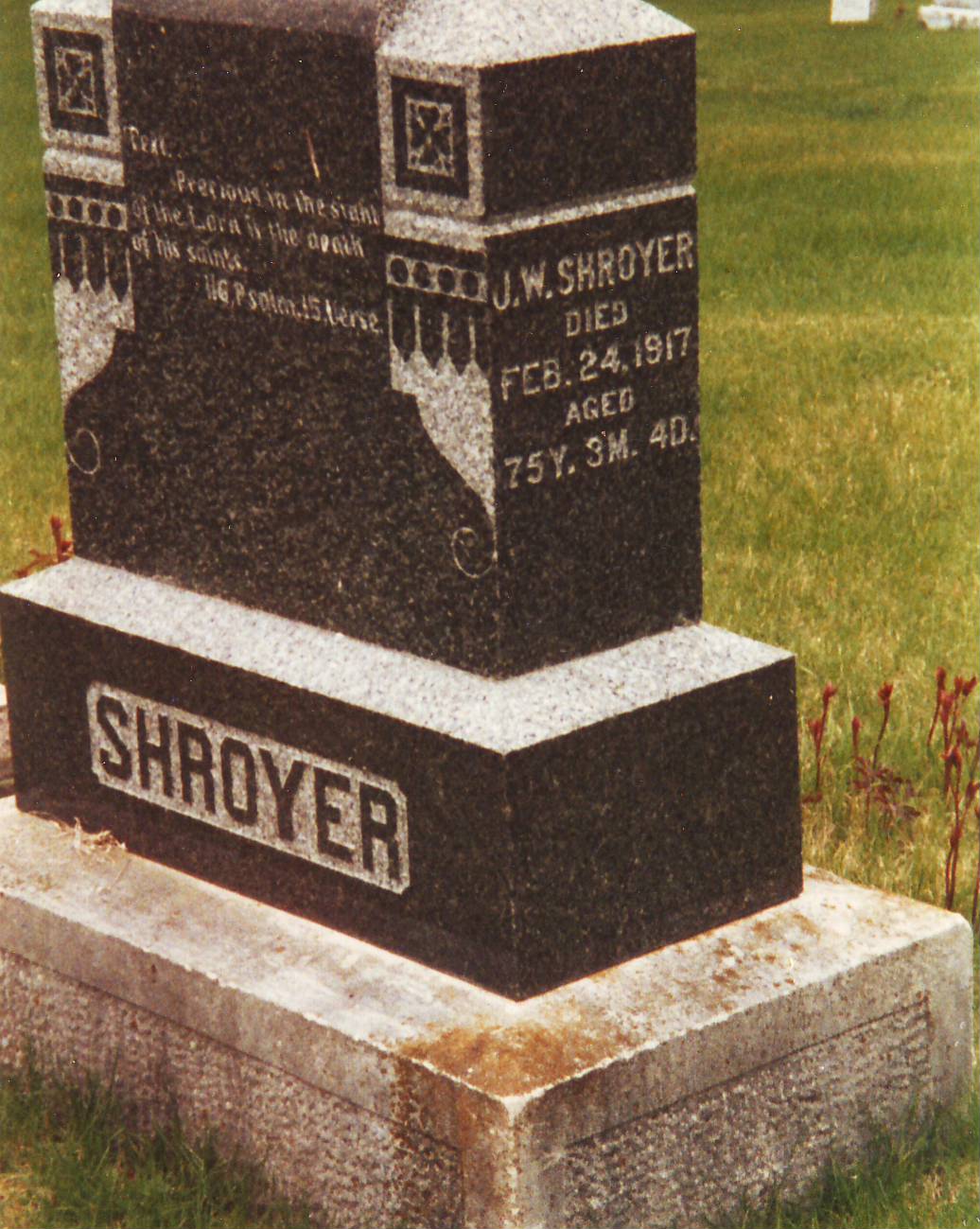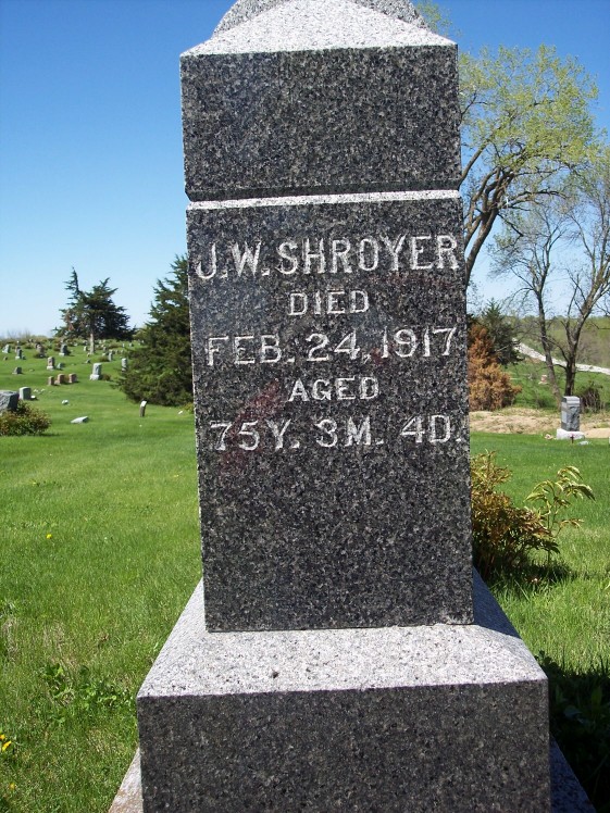 | Shroyer, Lewis A., died Jun 27, 1890 age 63y 9m 20d |