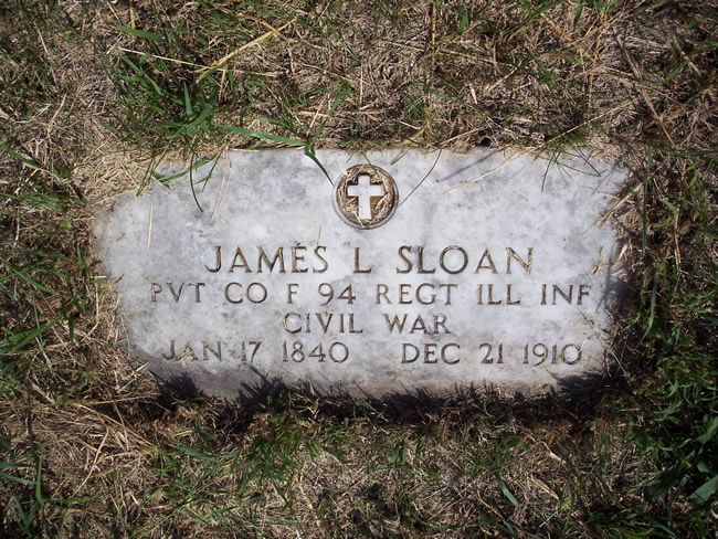 | Sloan, James L., Jan 17, 1840 - Dec 21, 1910 Union Cem [death certificate]; military stone |