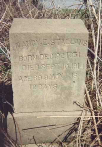 Stallans, Nancy E. Dec 22, 1851-Sep 10, 1914, age 69 yrs 9 mo 12 days