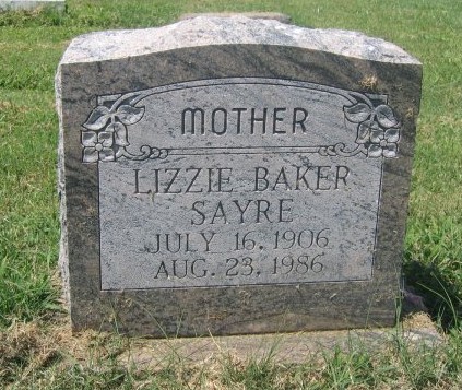 Sayer, Lizzie Baker Jul 16, 1908 - Aug 23, 1986 Picture by Elmer Langston