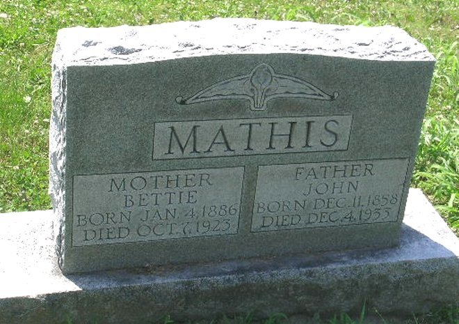 Mathis, John Dec 11, 1858 - Dec 4, 1933, shares stone with Bettie