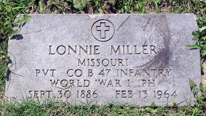 Miller, Lonnie Sep 30, 1886 - Feb 13, 1964, Pvt., Co B, 47th Inf., WW1 PH