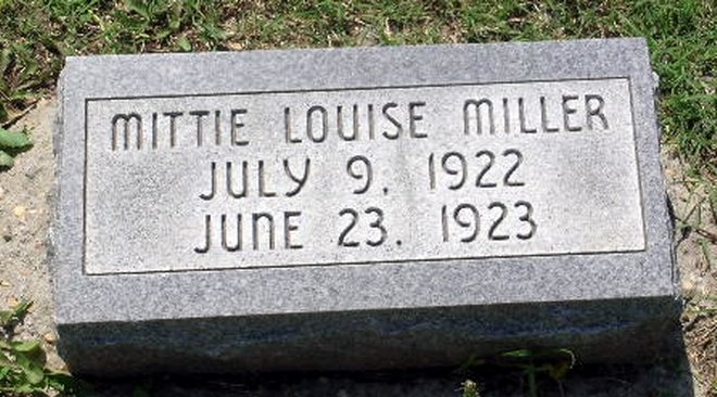 Miller, Mittie Louise Jul 9, 1922 - Jun 23, 1923