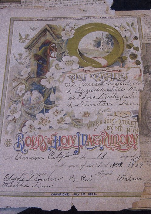 Bible record of the marriage of Carroll Doyle Fields and Edna Kathryn