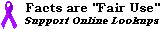 The Fair Use copyright policy allows our lookup volunteers to do minimal lookups on copyrighted publications. Please don't abuse this privilege by asking for more. If you find that a publication has a lot more information than a Look-up can provide, your local bookstore should be able to order the book for you.