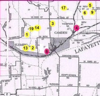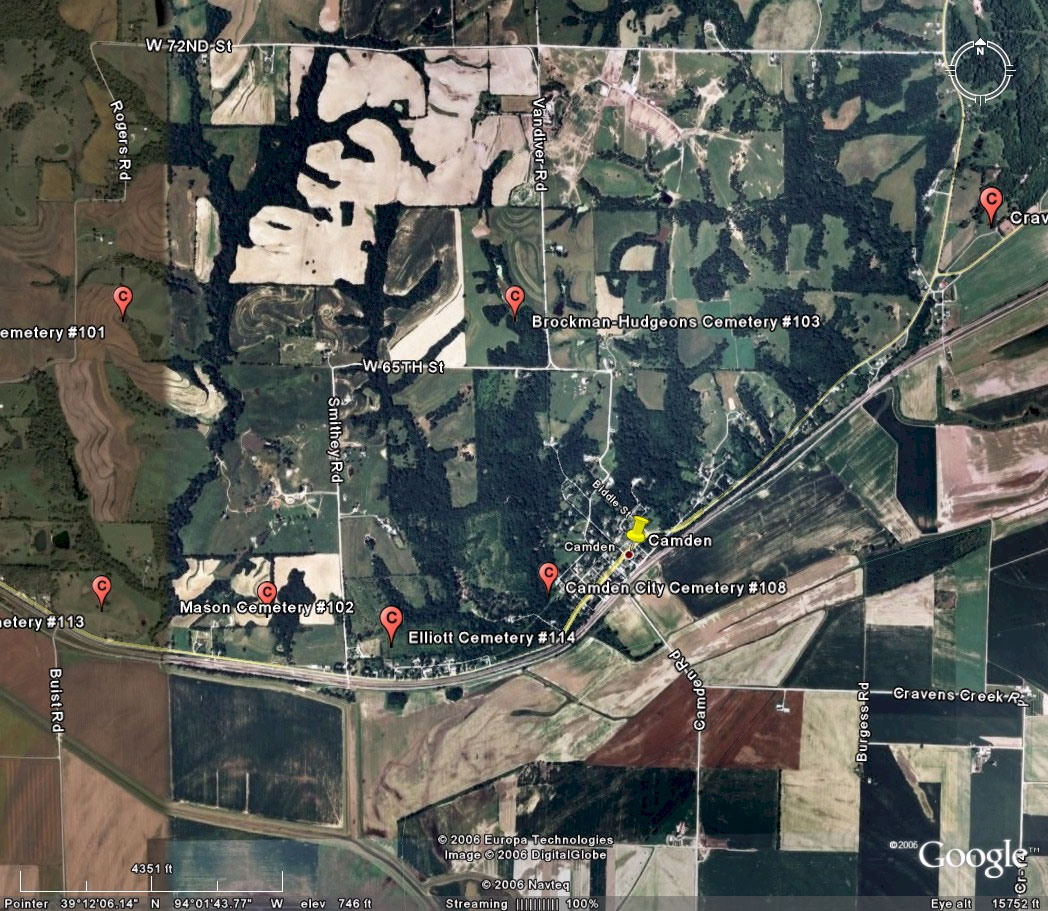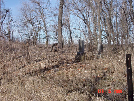 | Most recent directions | From downtown Camden, travel west on Hwy "T" to the last right (north) turn before the curve. This street (Mill Street) is not marked but the post for a stop sign is still there. Turn north on that road and then look for a gravel road on the west side that bends sharply up the hill. Take that road to the top of the hill and park by the shed. The cemetery is up on the hill behind the shed so you will have to hike up to it. The road to the cemetery is not very well maintained so it is best to visit this cemetery when it is dry or the ground is frozen. | |||||||