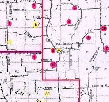 From junction of Hwys B and K, go 300 yards southwest of corner, 1 mile west of Millville |