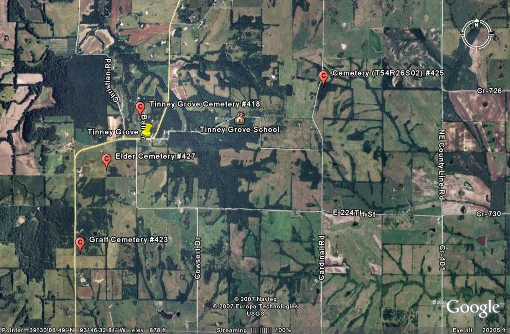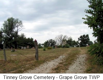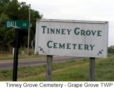 Located at Tinney Grove, Missouri, on Hwy 'A' 1.5 miles south of the Ray and Caldwell county line or 17.5 miles north of Hardin on 'A'. Cemetery is located at the end of Ball Lane on the north side of Hwy 'A'. about 254 marked graves (1993) Cemetery is well maintained. DAR Index: located on Route A, 1-1/2 miles south of the Caldwell/Ray County line. Cemetery is 1/2 mile north of the road. 1973 Ray County History: Tinney Grove Cemetery, located in the east part of the county on Route A, was established during the Civil War period. The land was donated by the Tinney family. Among the first families to be buried here are Tinneys and Divelbiss. In recent years the road leading to the cemetery was cleared of brush and graveled. The cemetery is maintained by a trust fund and donations. Gene Davis is president and Vern Leslie, secretary-treasurer. |