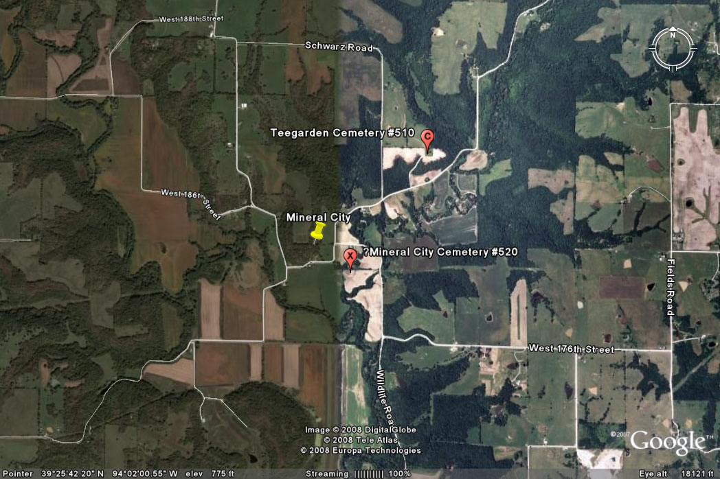 The 1976 & 1980 plat map say it is "Old Union Cemetery", but Old Union Cemetery is located in T53R29S11. The 1985 plat map just says "Cem". There might have been something there at one time because S. Mullin owned the land in that area. It is in the same section as Teegarden Cemetery death certificate for Nellie B. Mullins indicates she was buried in Mineral City Cemetery; date of death November 29, 1923 death certificate for Rosa Mullins indicates she was buried in Mineral City Cemetery; date of death October 19, 1923 |