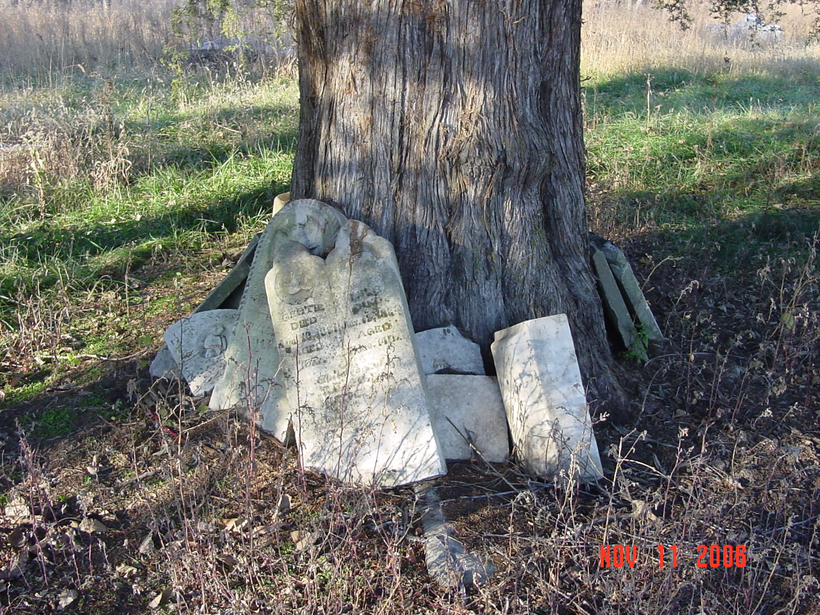 From 224th Street, turn south on Moberly Road. Cemetery is located at the end of Moberly Road on the west side of the dead end road. The cemetery is overgrown with weeds and many stones have been turned over and many are piled around a huge cedar tree in the middle of the cemetery. There are many new stones on old bases in memory of people who have died many years ago. Unfortunately, many of the these stones have been tipped over by vandals. DAR Index: located at the south end of Moberly Road Notes: NE1/4 NW1/4 Section 18. At end of CR66 2.2 miles south of CR108 (county line). Knoxville Twp |
