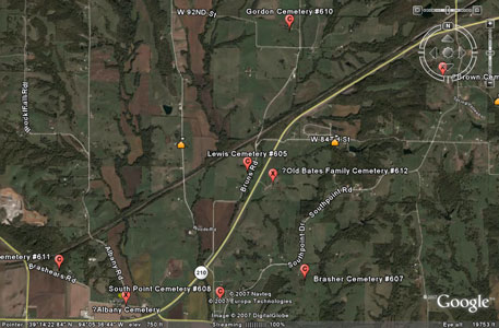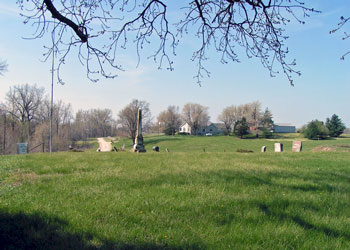 Ray County Library big black cemetery binder: Located just north of the home of Ronnie Bellis (in 1978) in SW1/4, 7-51-28. Cemetery is fenced and well kept. It's located right beside a gravel road, easily accessible from the road. (North of South Point Cemetery) same road. There are many part stones and broken ones sticking up in the rows, without any carving visible on them. Copied by Mrs. Roger McBee, Richmond, Missouri, May 18, 1978. | Ray REF 929.3 RAY |
