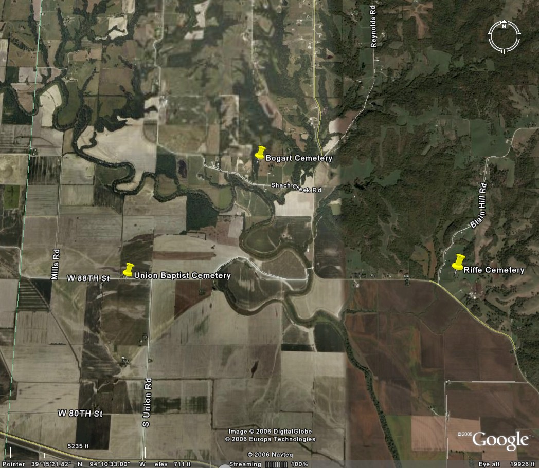 four miles north of Orrick on "O" Hwy, turn left at iron bridge. Go west to Union Road | Riffe & Union Baptist cemeteries; Joyce Anderson Swearingin; Also on title page: Riffe and Union Baptist cemeteries are both located north of Orrick; 48 leaves. | FHL 977.819 V3r