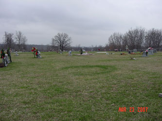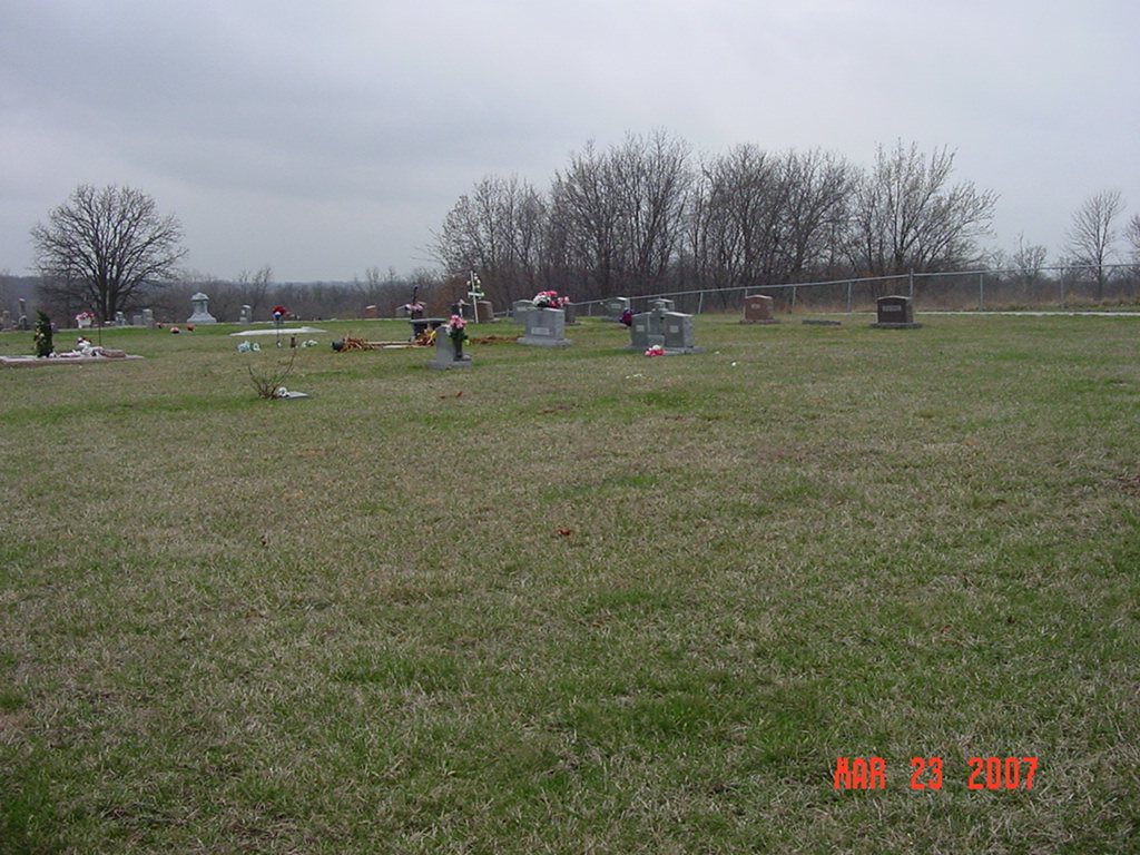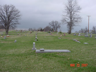 In the town of Elmira, from Harper Avenue, turn west onto James Street, turn north onto Roberts Avenue, turn west onto Cemetery Road. Cemetery is on the south side of the road. 1973 Ray County History: The first graves were those of Thomas Crowley, October 1, 1902 and W. H. Newton, Co. C. 44, Mo., Inf. (No date). In 1935 an addition was added, known as the Childress addition and another in 1973 known as the James addition, making the cemetery about one and one-half acres. The cemetery is well kept through a perpetual care fund. (1973) |