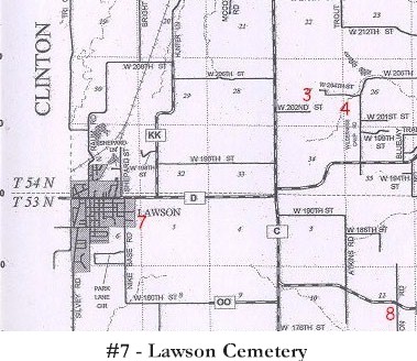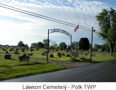| Lawson Cemetery | #7 on Polk Township Map | Latitude: 39°26'10.00"N Longitude: T53R29S06 |