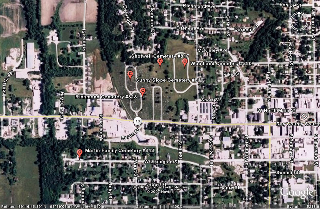 #43 on Richmond Twp map | T52R28S36? | . | Ray County History 1973, p. 232 Cemeteries Not Listed on Map #12: Captain Israel Hendley, Mexican War Hero, West Lexington Street | . |